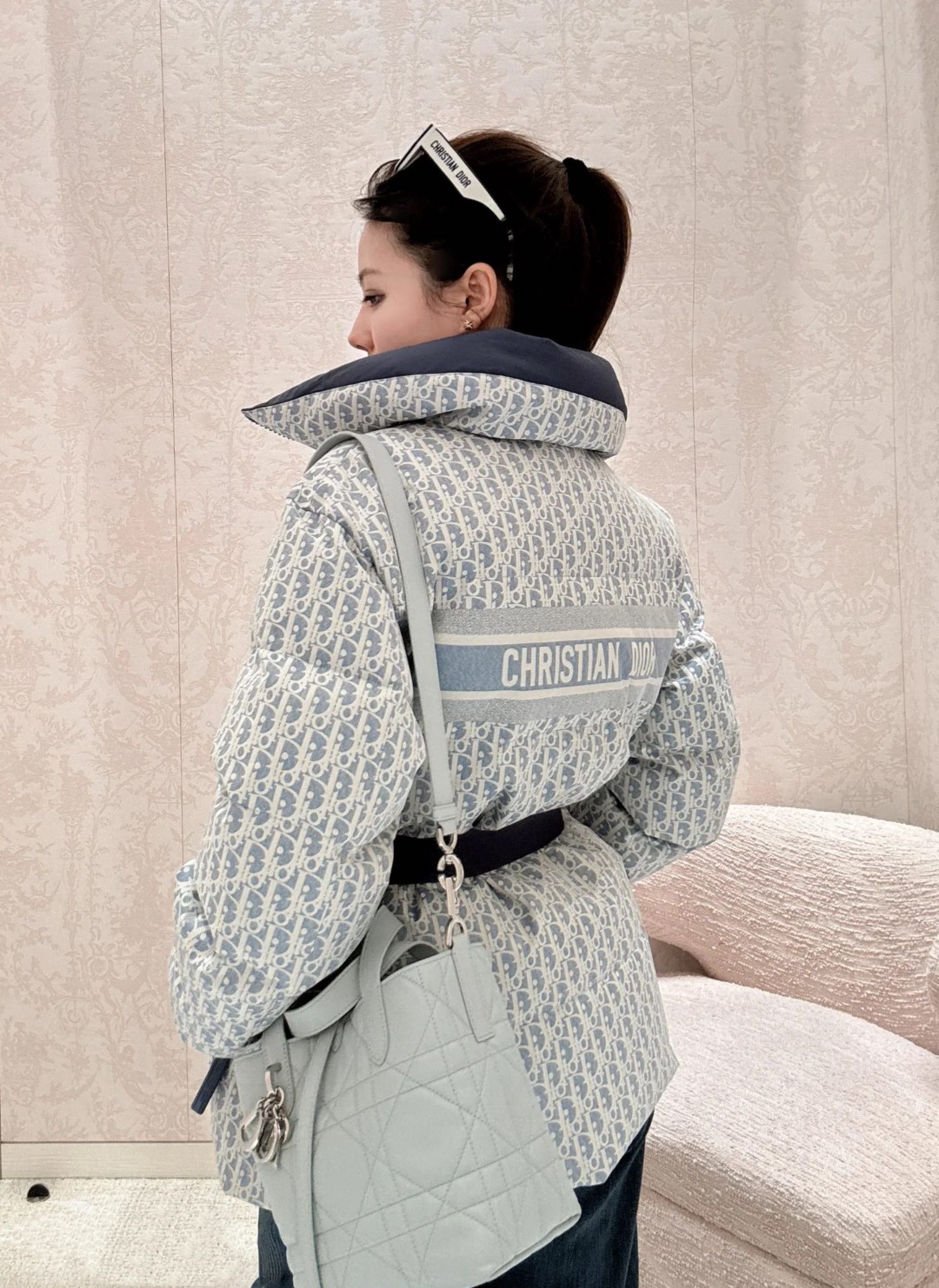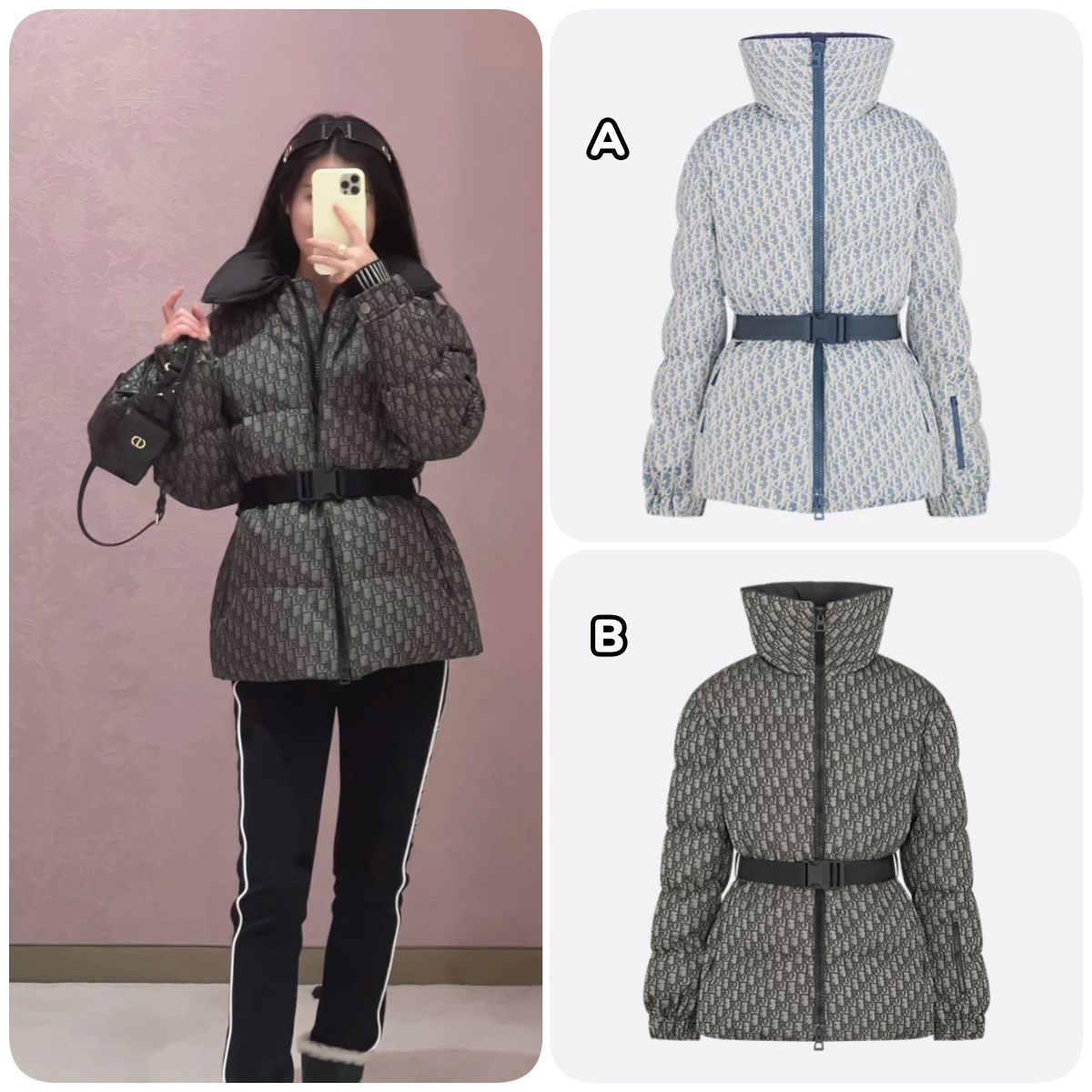 此款式以Dior Oblique 絎縫科技塔夫綢製作,設有企領、側面口袋及內部拉鏈口袋,以及 1 個可放置滑雪通行證的口袋。科技腰帶凸顯腰部線條,背面則綴以 Christian Dior 標誌。