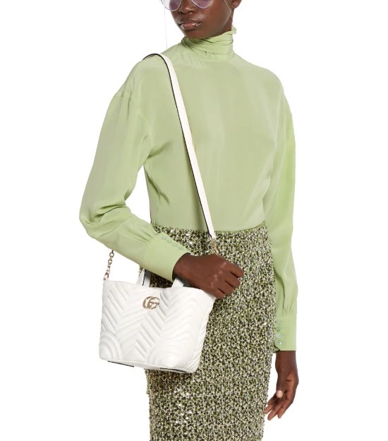 👜Gucci Betty手袋在精緻的設計中融入了一絲隨性😌氣息,可從硬挺的托特包輕鬆變換為柔軟的水桶包造型。這款手袋配有頂部提把和鏈條🔗肩帶,提供多種搭配選擇,打造始終無可挑剔的時尚風格✨