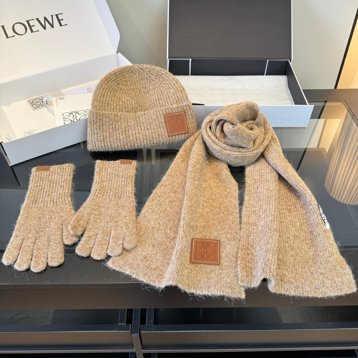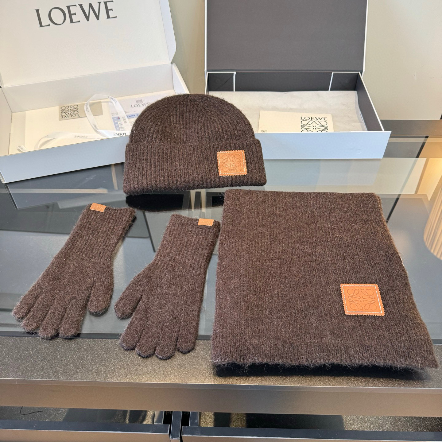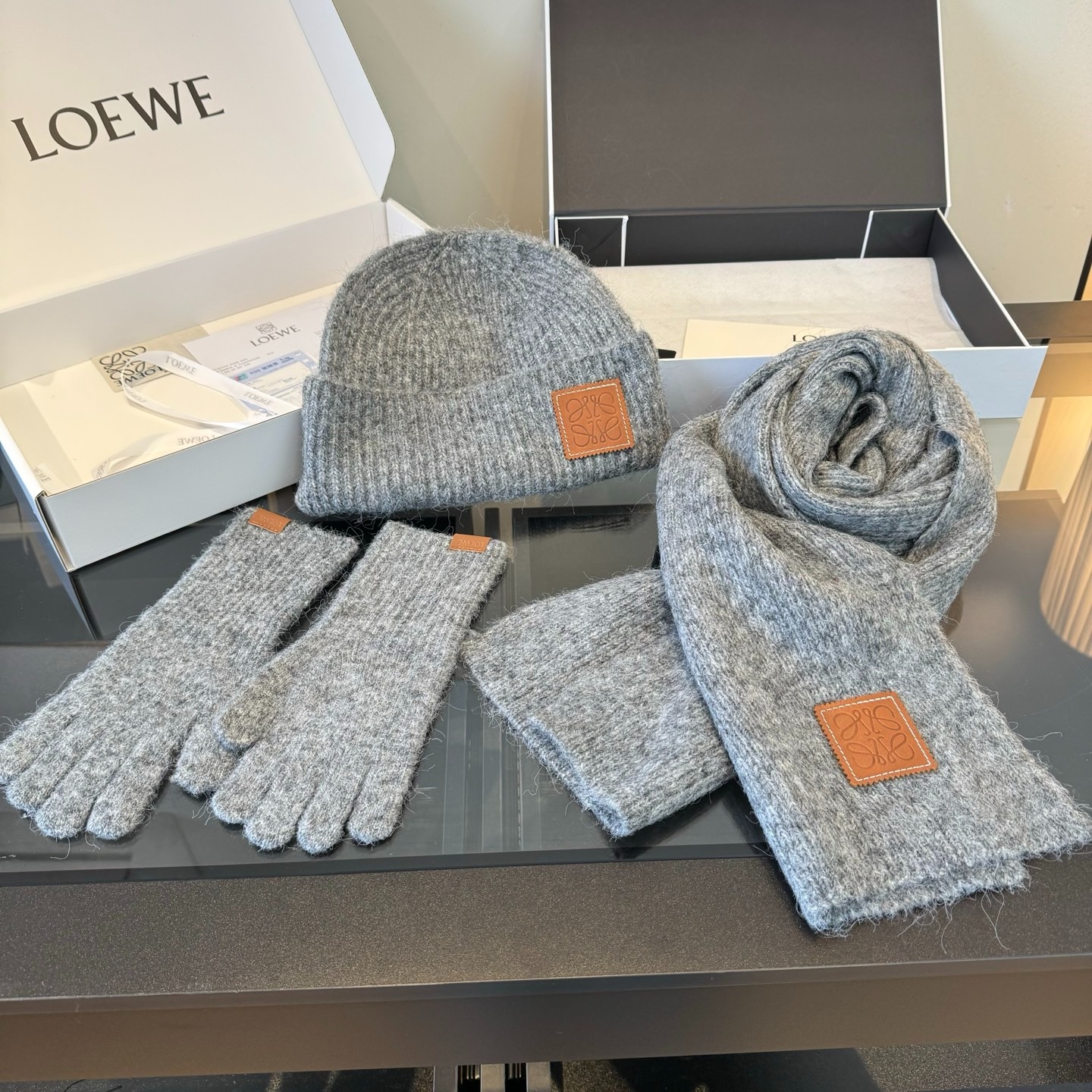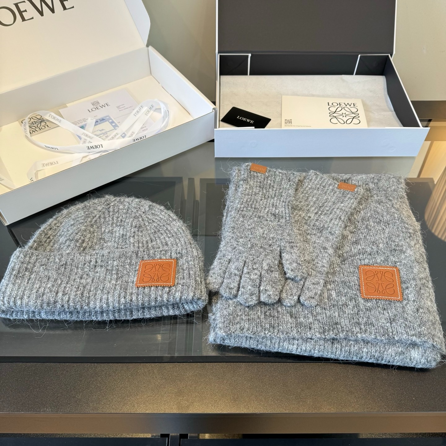 LOEWE 羊毛兔毛混紡冷帽➕頸巾➕手套套裝