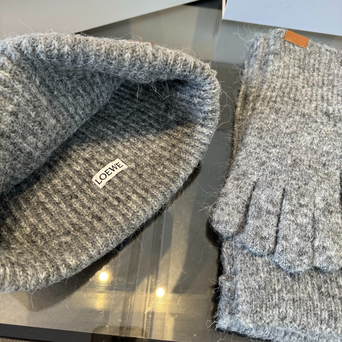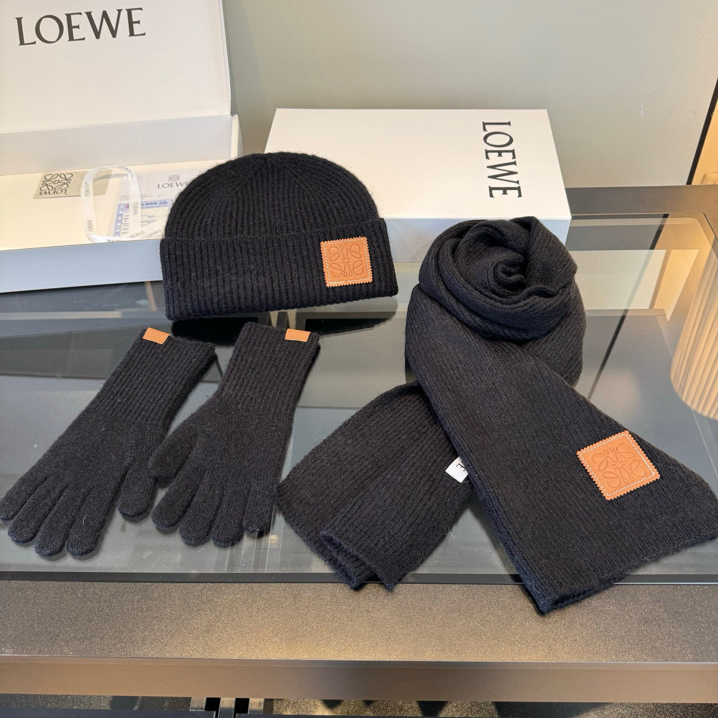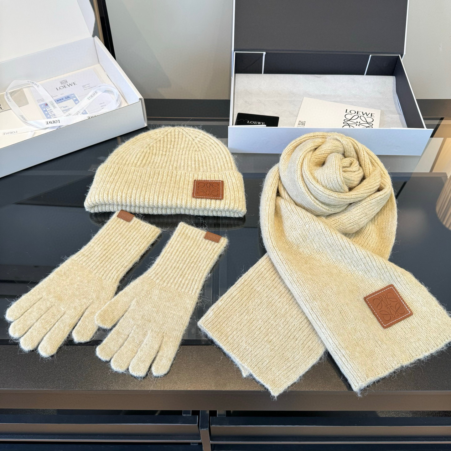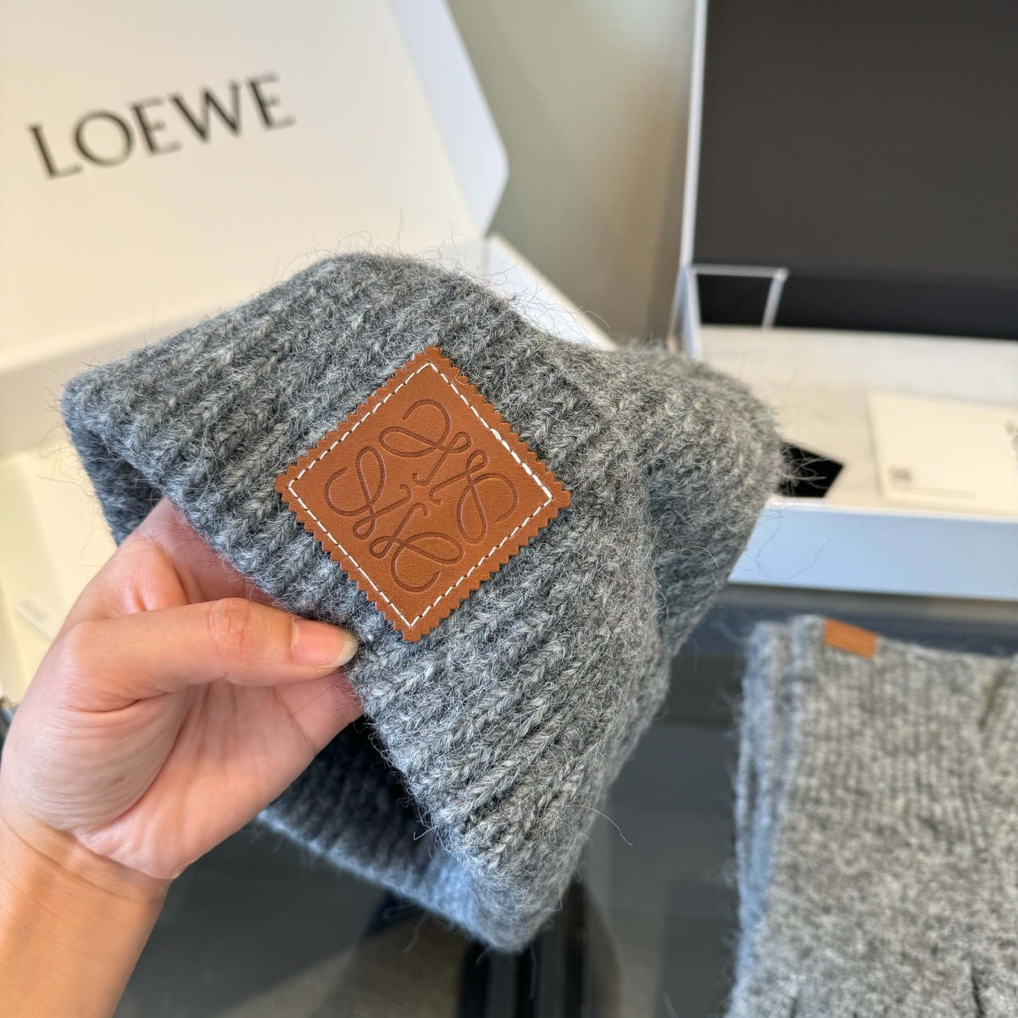 LOEWE 羊毛兔毛混紡冷帽➕頸巾➕手套套裝