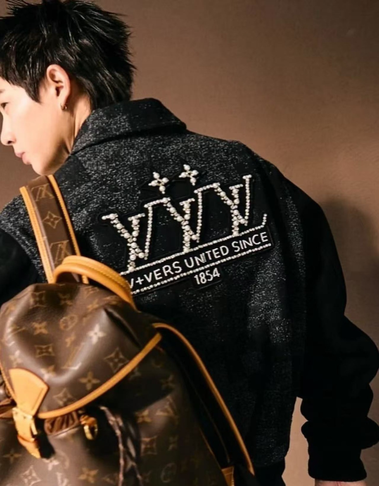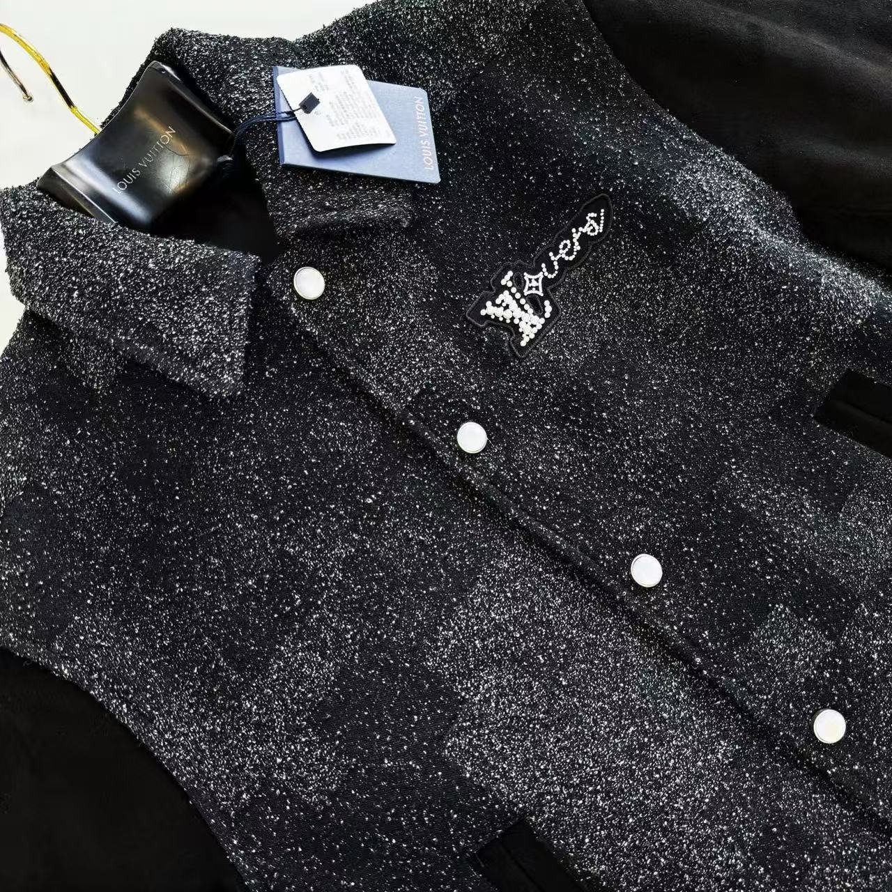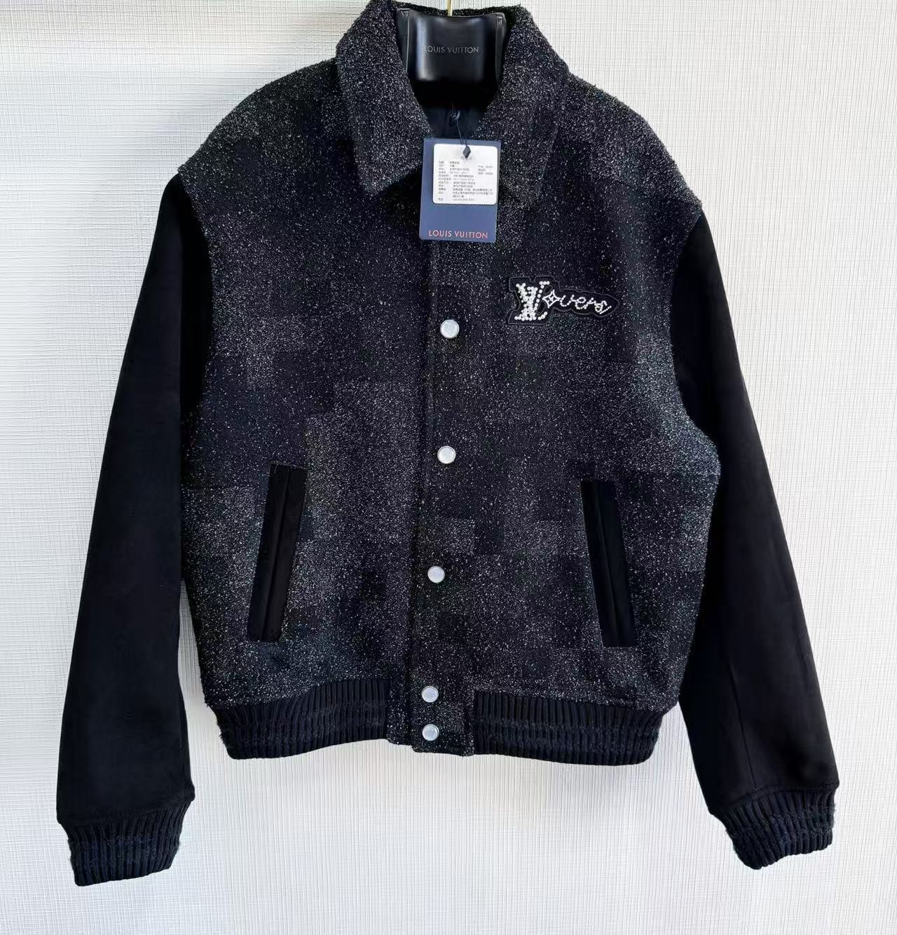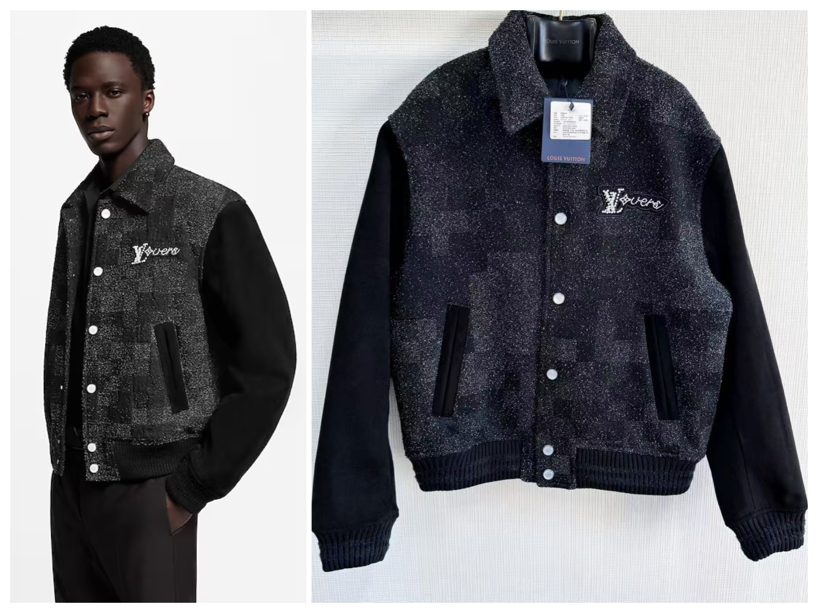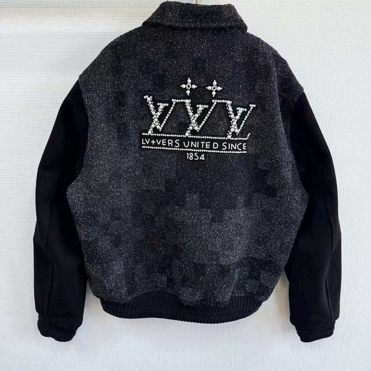 LV Mix Leather Varsity Blouson 手工釘珠真皮棋盤格棒球服外套