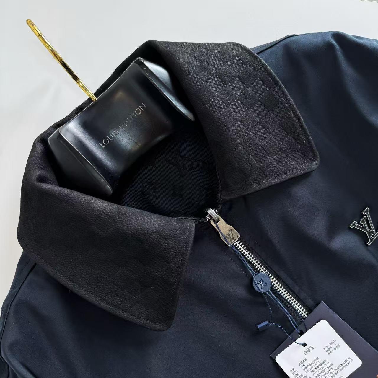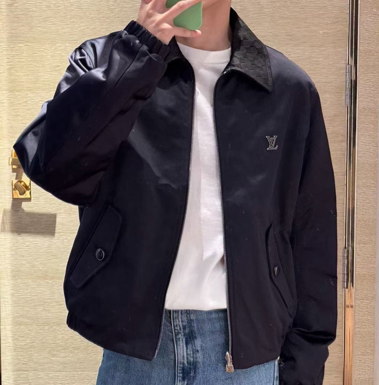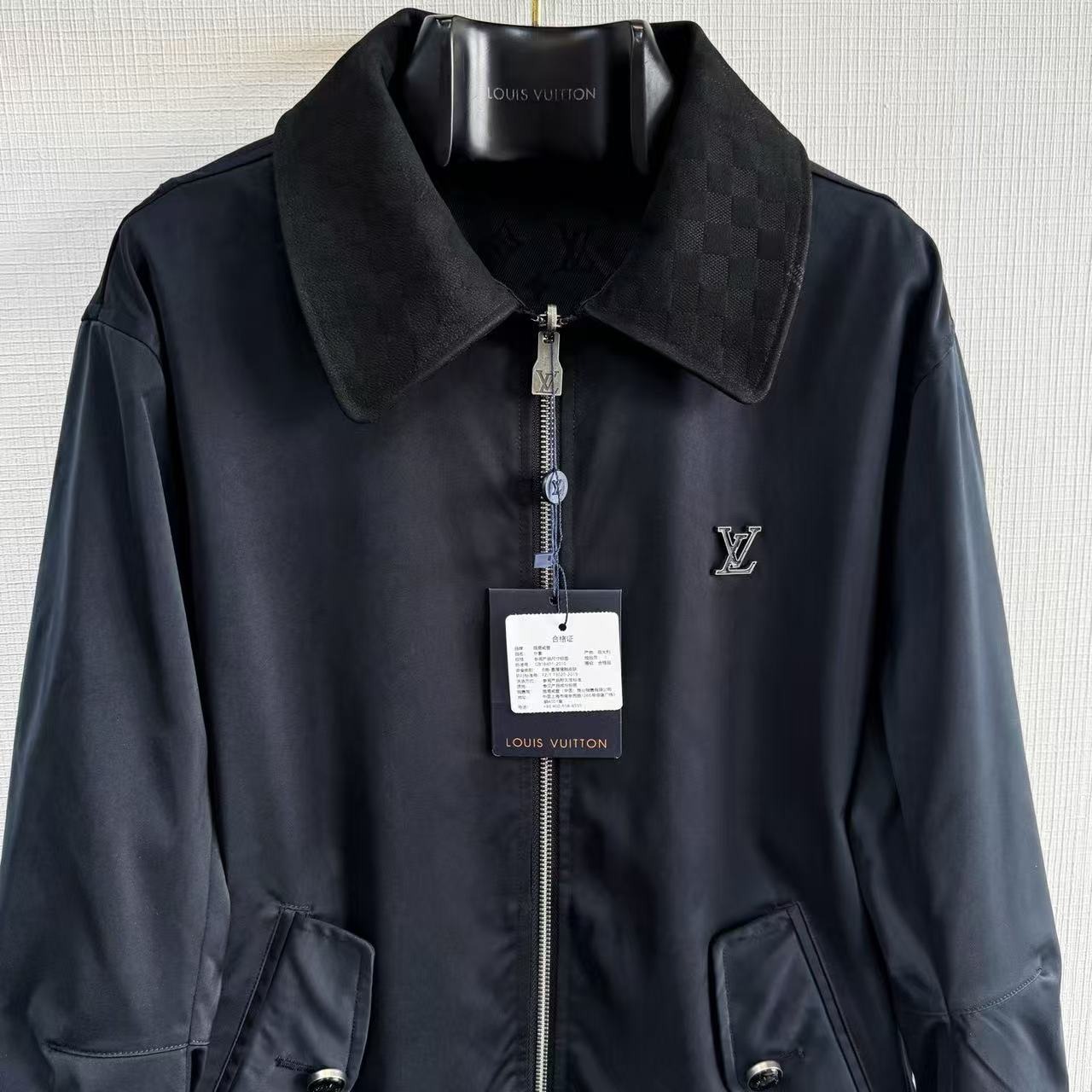 這款時尚的黑色雙面外套將兩種造型合而為一,締造百搭多變的大衣💪外套一面綴以同色調Monogram提花圖案,柔和紋理飾面可為日常造型增添時尚標誌點綴🎨另一面則採用純色緞布打造,並設有同色調Damier皮革衣領,襟前綴以LV金屬裝飾,是日夜皆宜的完美款式💯