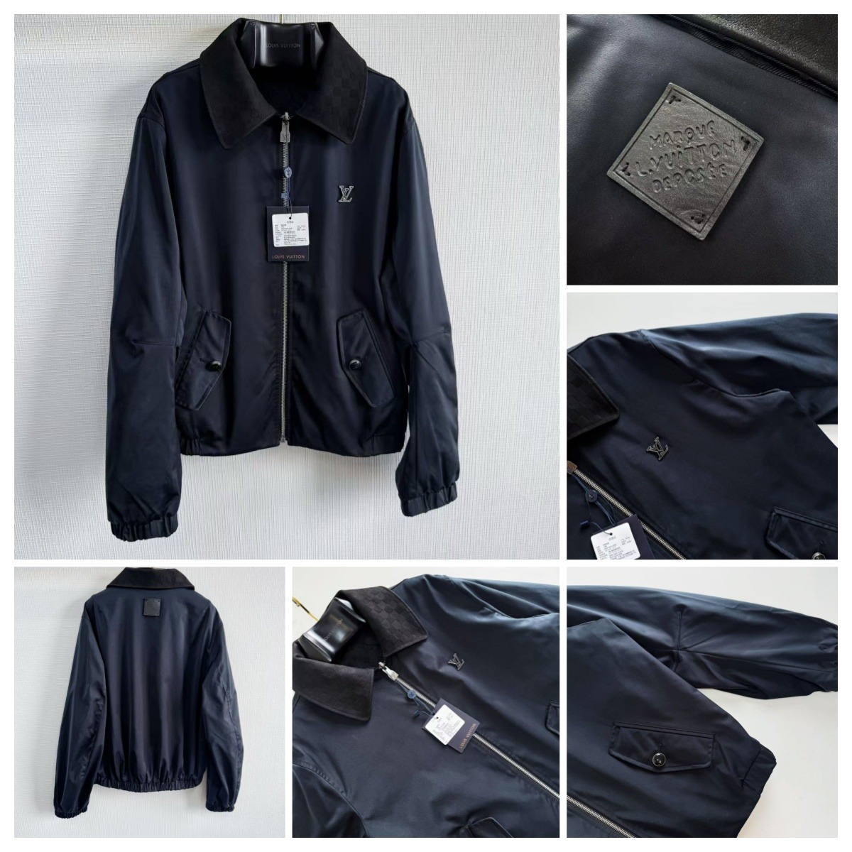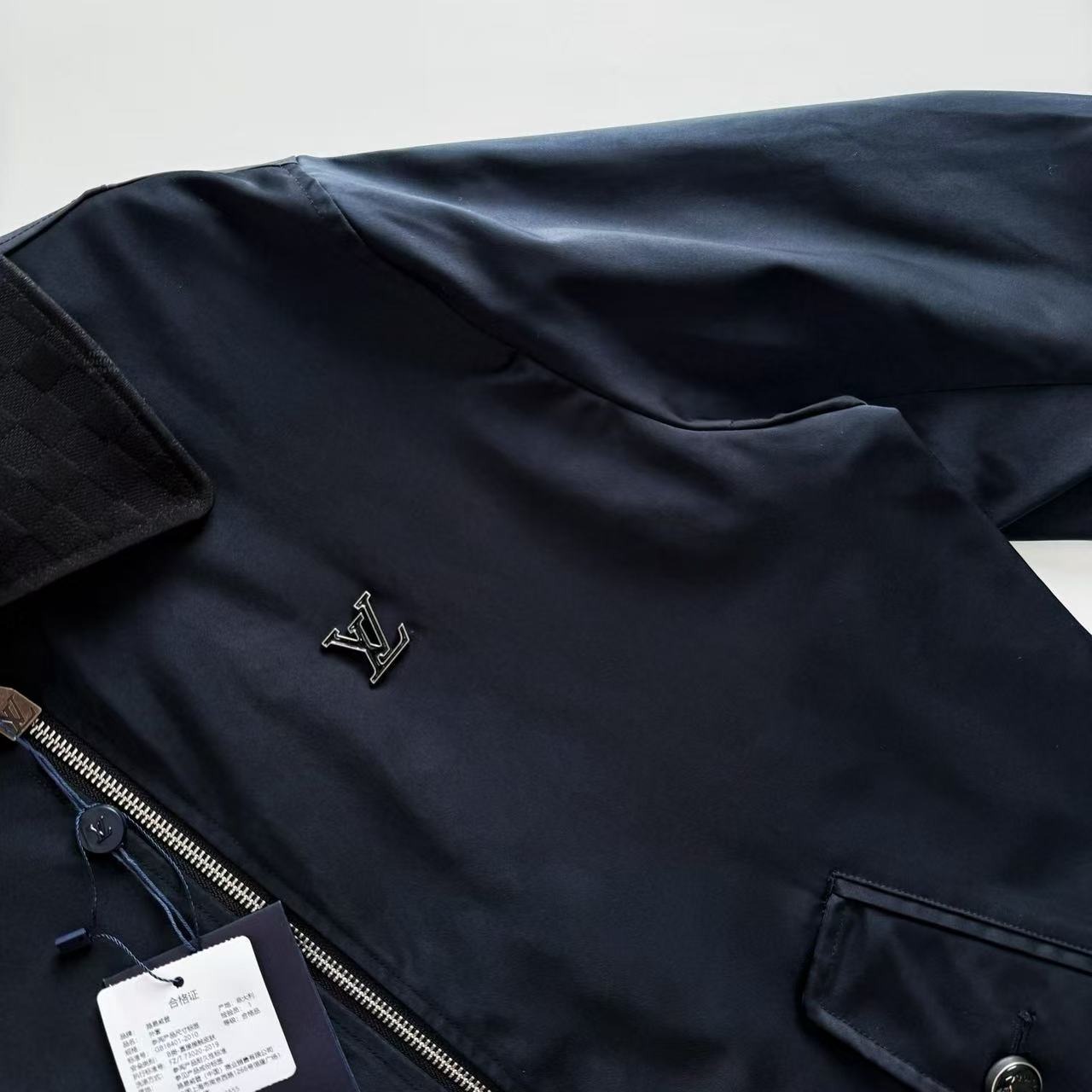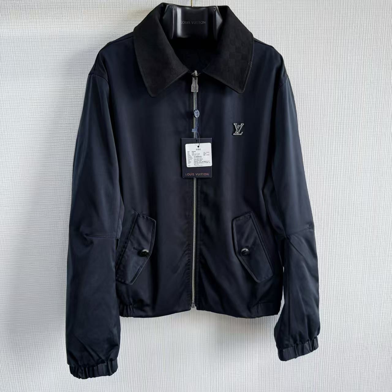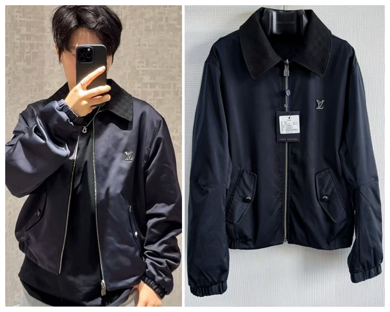 這款時尚的黑色雙面外套將兩種造型合而為一,締造百搭多變的大衣💪外套一面綴以同色調Monogram提花圖案,柔和紋理飾面可為日常造型增添時尚標誌點綴🎨另一面則採用純色緞布打造,並設有同色調Damier皮革衣領,襟前綴以LV金屬裝飾,是日夜皆宜的完美款式💯