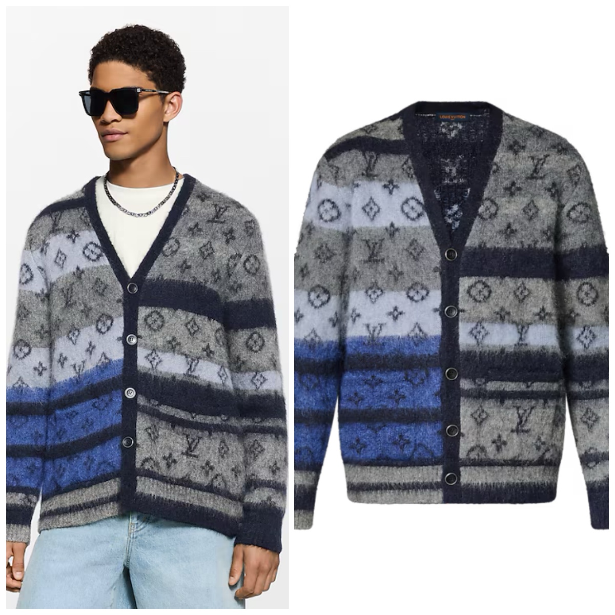LV Monogram 馬海毛 V 領開襟冷衫