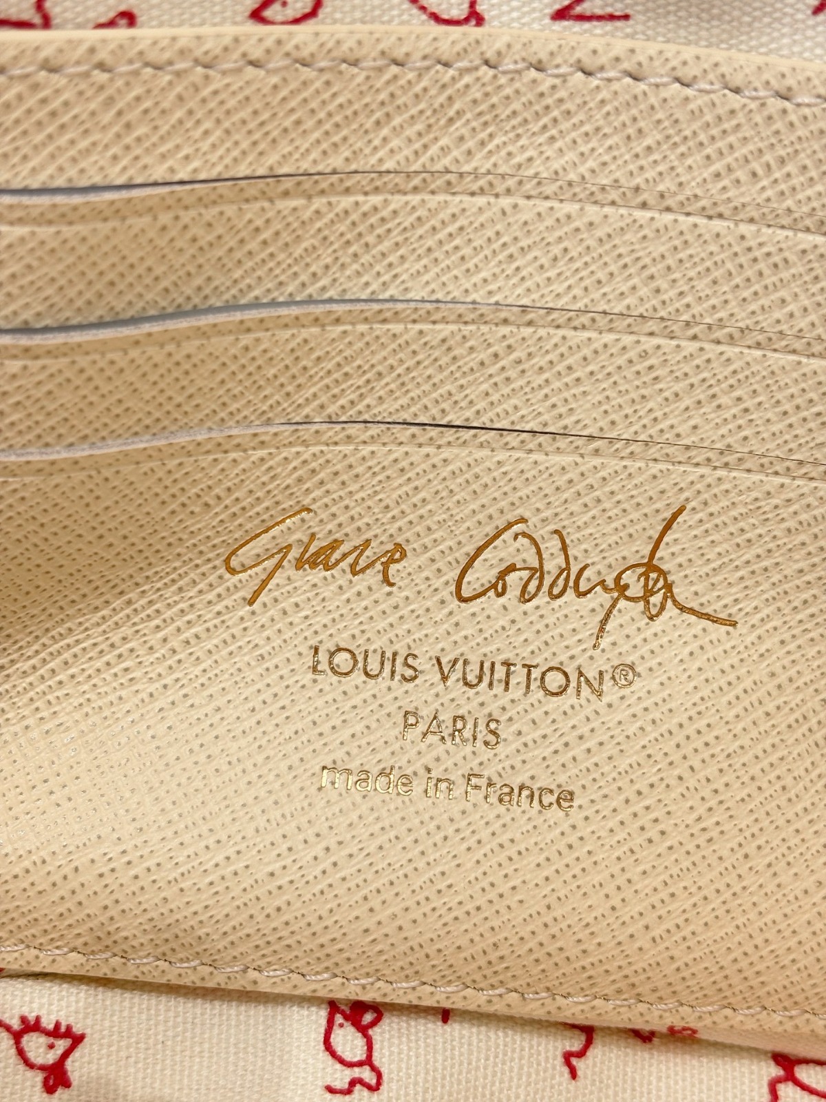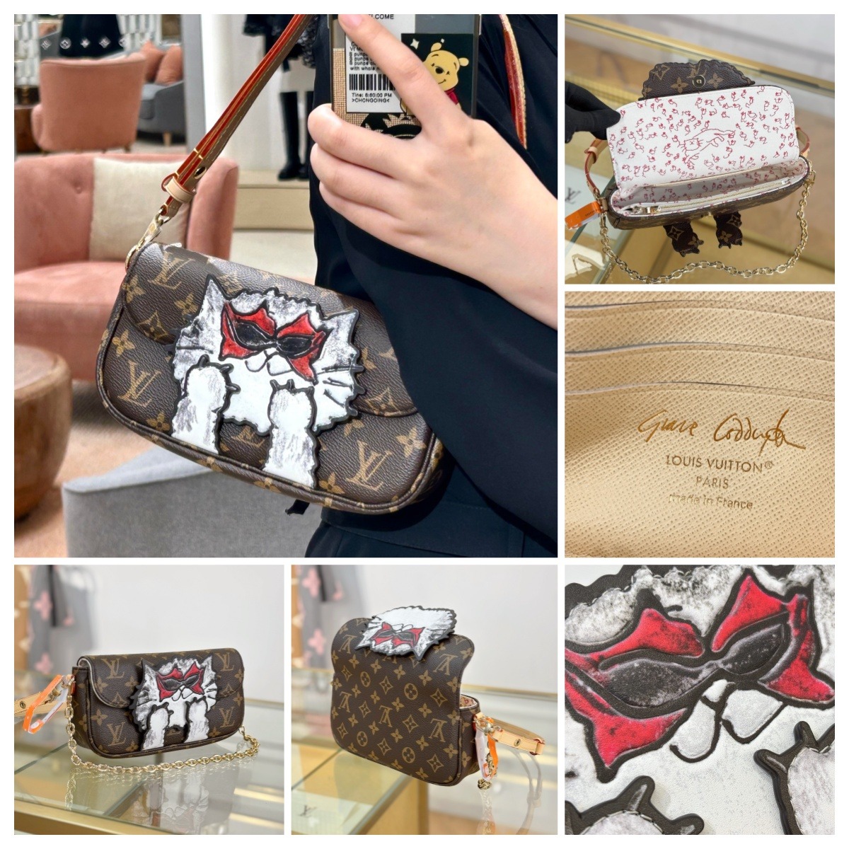 👜LV 獨家 Travels With Grace Coddington 系列推出這款迷人的 Ivy 鏈條皮夾。皮夾正面俏皮的手繪插畫由 Coddington 創作,致敬她對😺貓咪的熱愛。這款皮夾採用標誌性 🎨Monogram 帆布製成,飾有金色金屬配件,並配有一條時尚的可拆卸🔗鏈條,提供多種攜帶方式。錢包內部設有一個拉鍊口袋和一個扁平口袋,以及三個💳卡位。