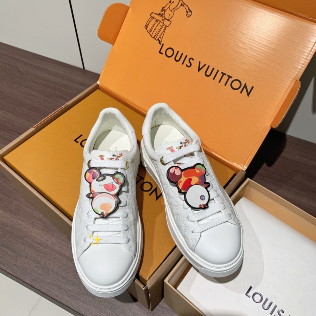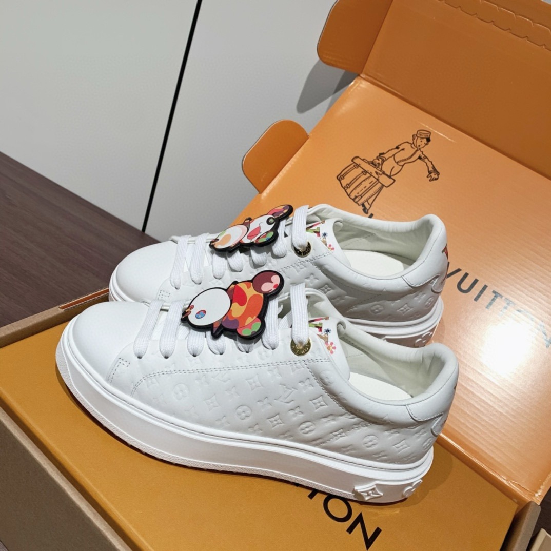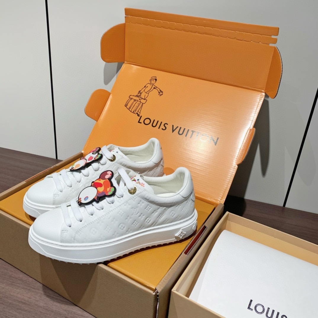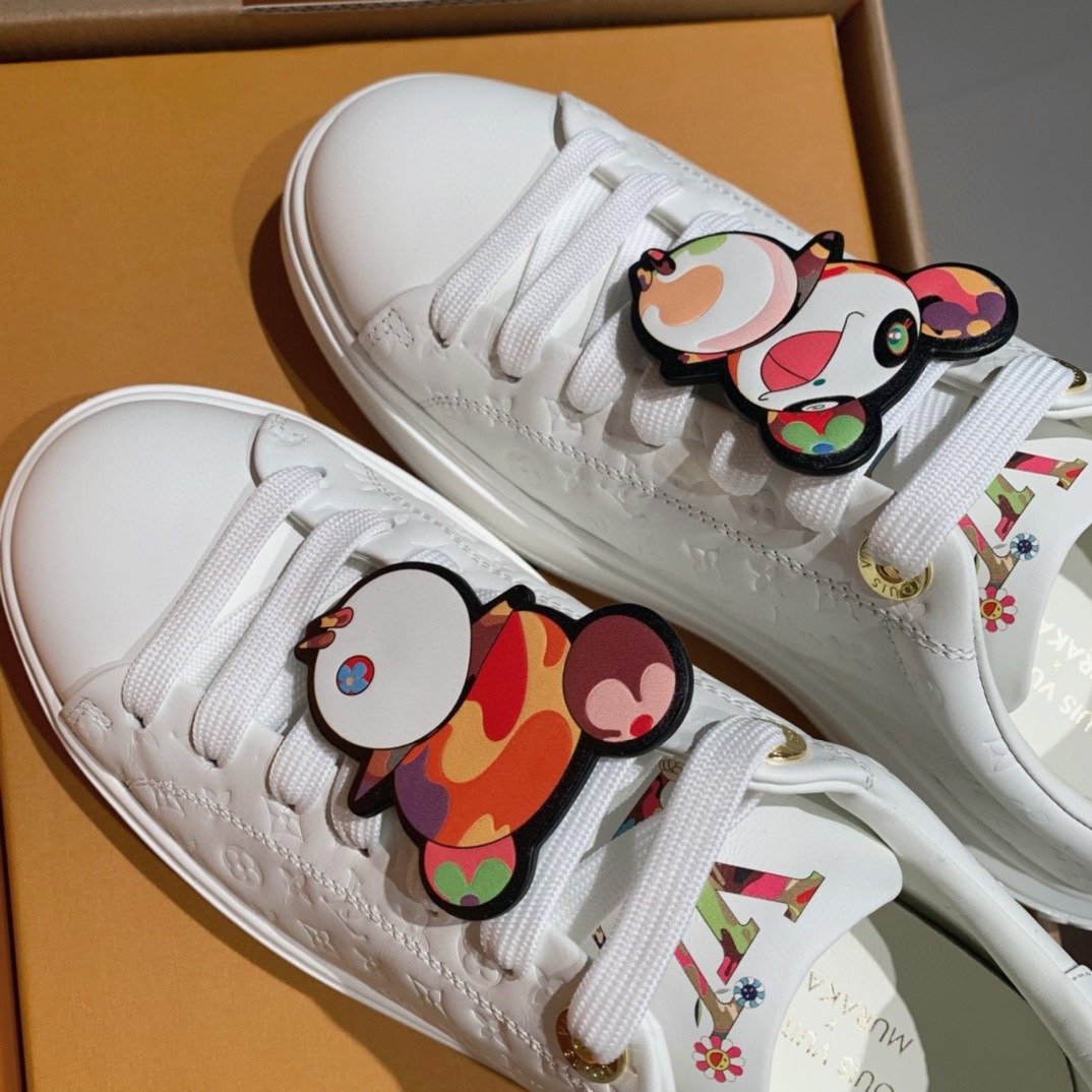 這款經典Time Out運動鞋以復刻版Louis Vuitton x Murakami系列的主打設計元素重新演繹,洋溢清新活力氣息。鞋面綴滿細緻的標誌性Monogram浮雕圖案,鞋舌和鞋跟均飾有彩色LV Initials標誌,並以舉世知名藝術家村上隆的超扁平風格重新詮釋,加上鞋帶的可拆式皮革貼章,極具玩味個性。