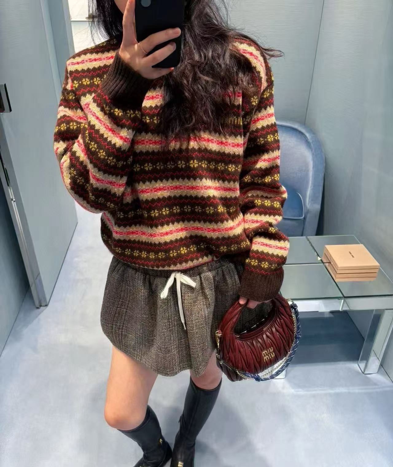 細緻的小花🌸紋低調又講究,再加上小🏷️miu標,精緻✨感和質感瞬間提升。搭配半身裙,文藝氣息滿滿,走在街上回頭率保證超高😍