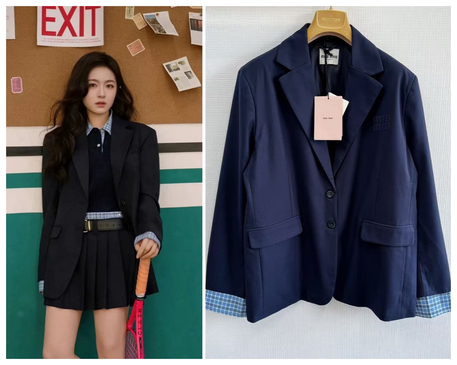 MiuMiu這款西裝外套採用超高支數精紡羊毛🐑 上身輕盈又保暖🔥 剪裁為堅挺的肩線📐 衣身拉長的小細節🔍 不但能修飾女性的身型💃 更能讓人看起來俐落👌