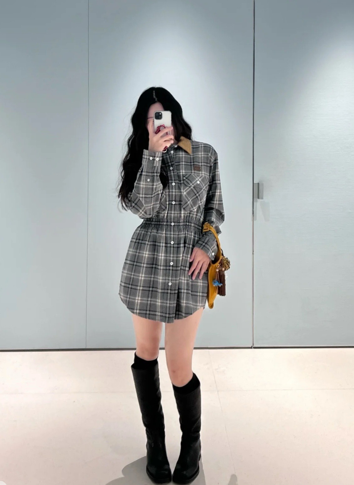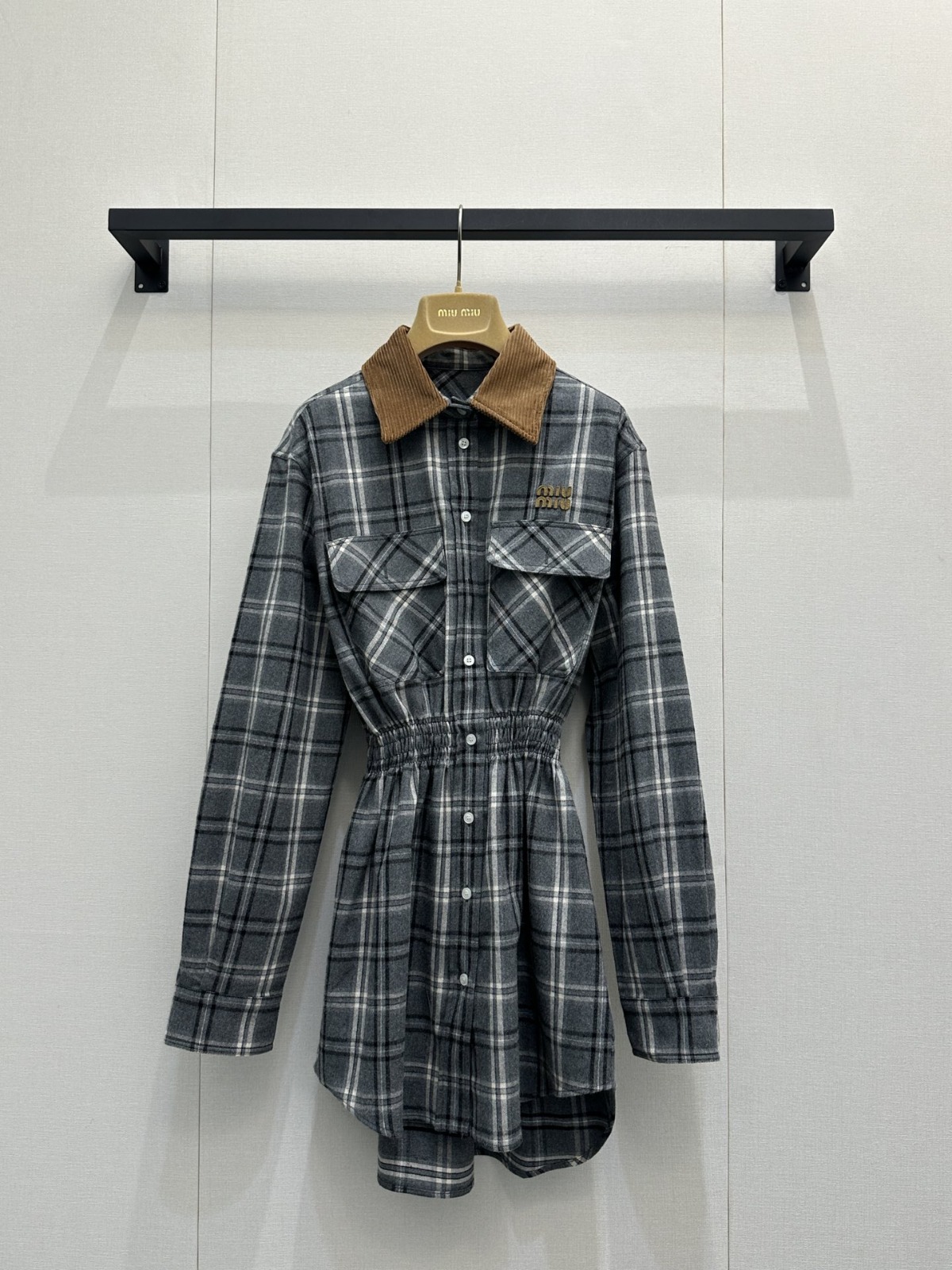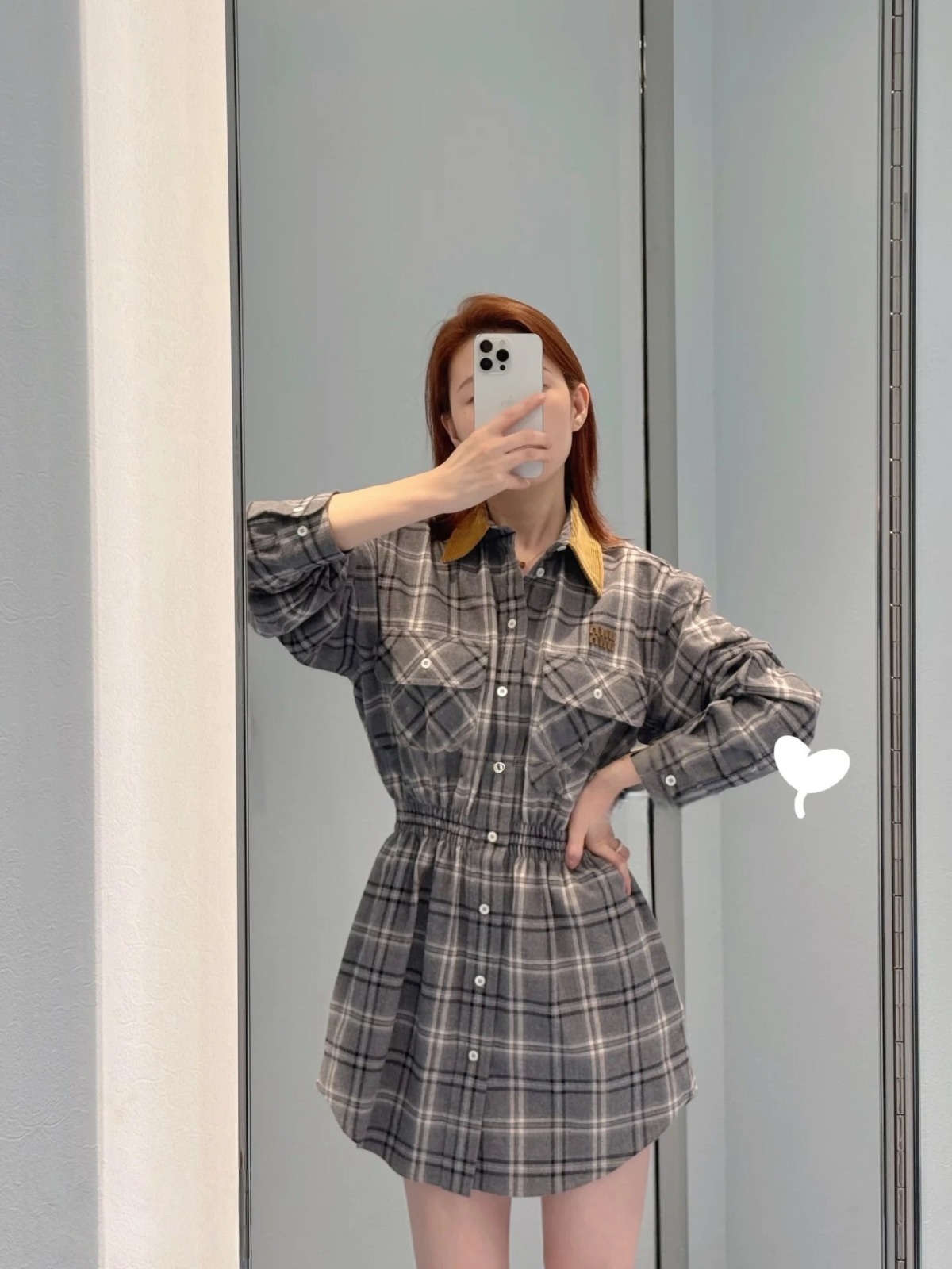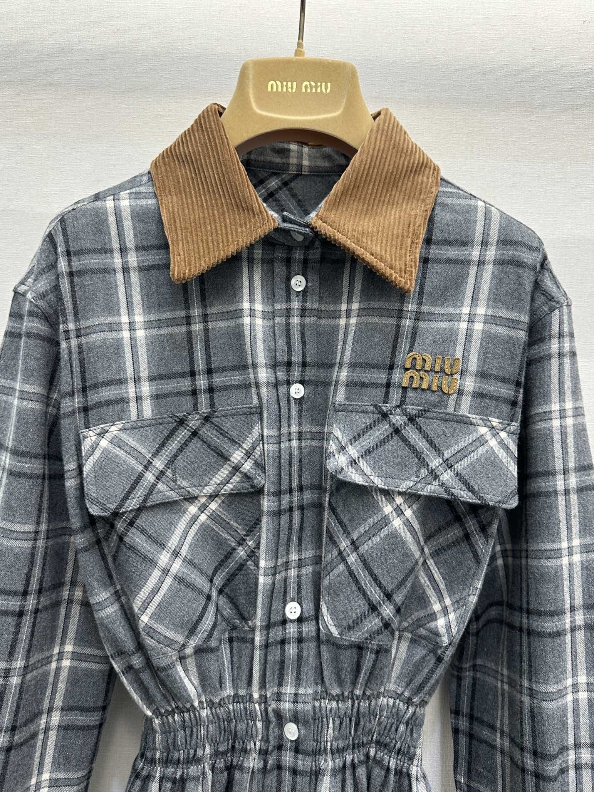 Miu Miu 格紋法蘭絨羊毛收腰恤衫裙