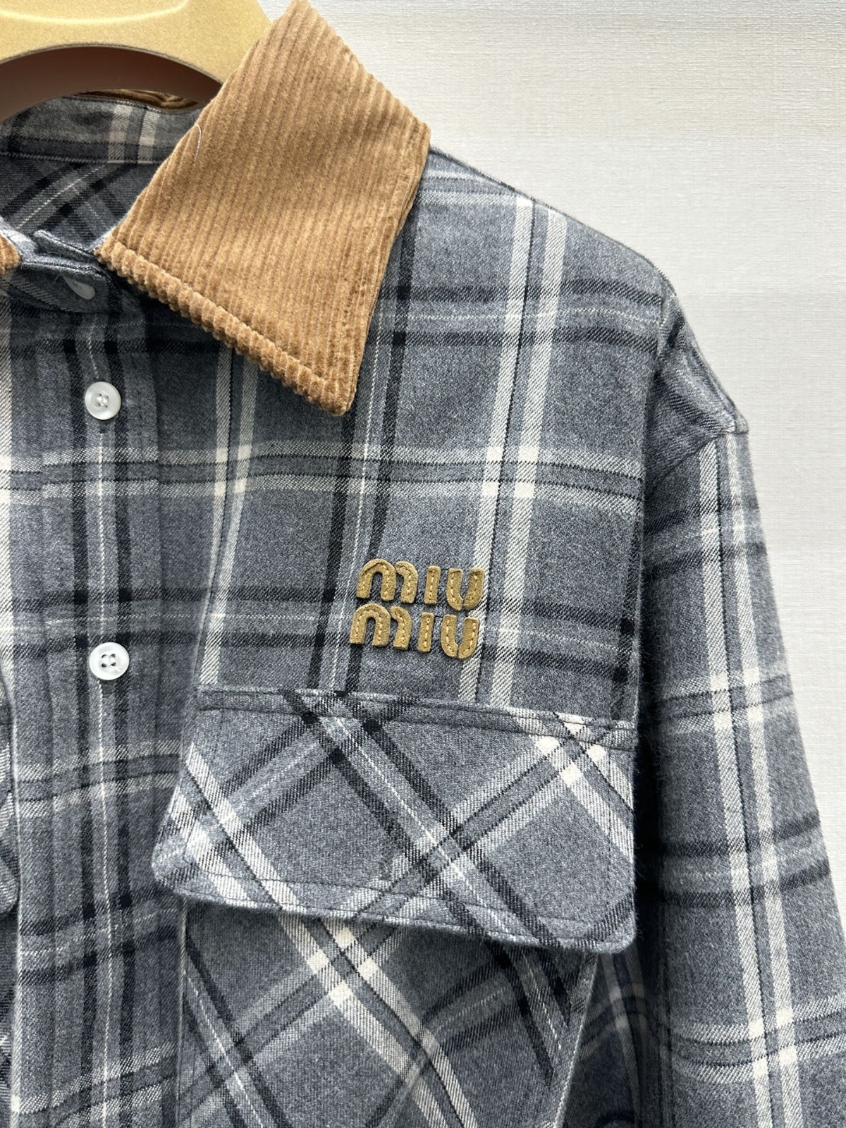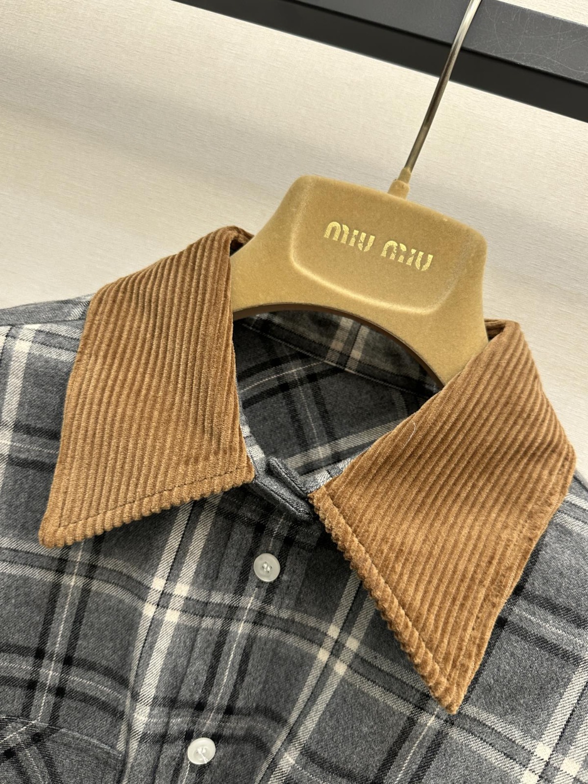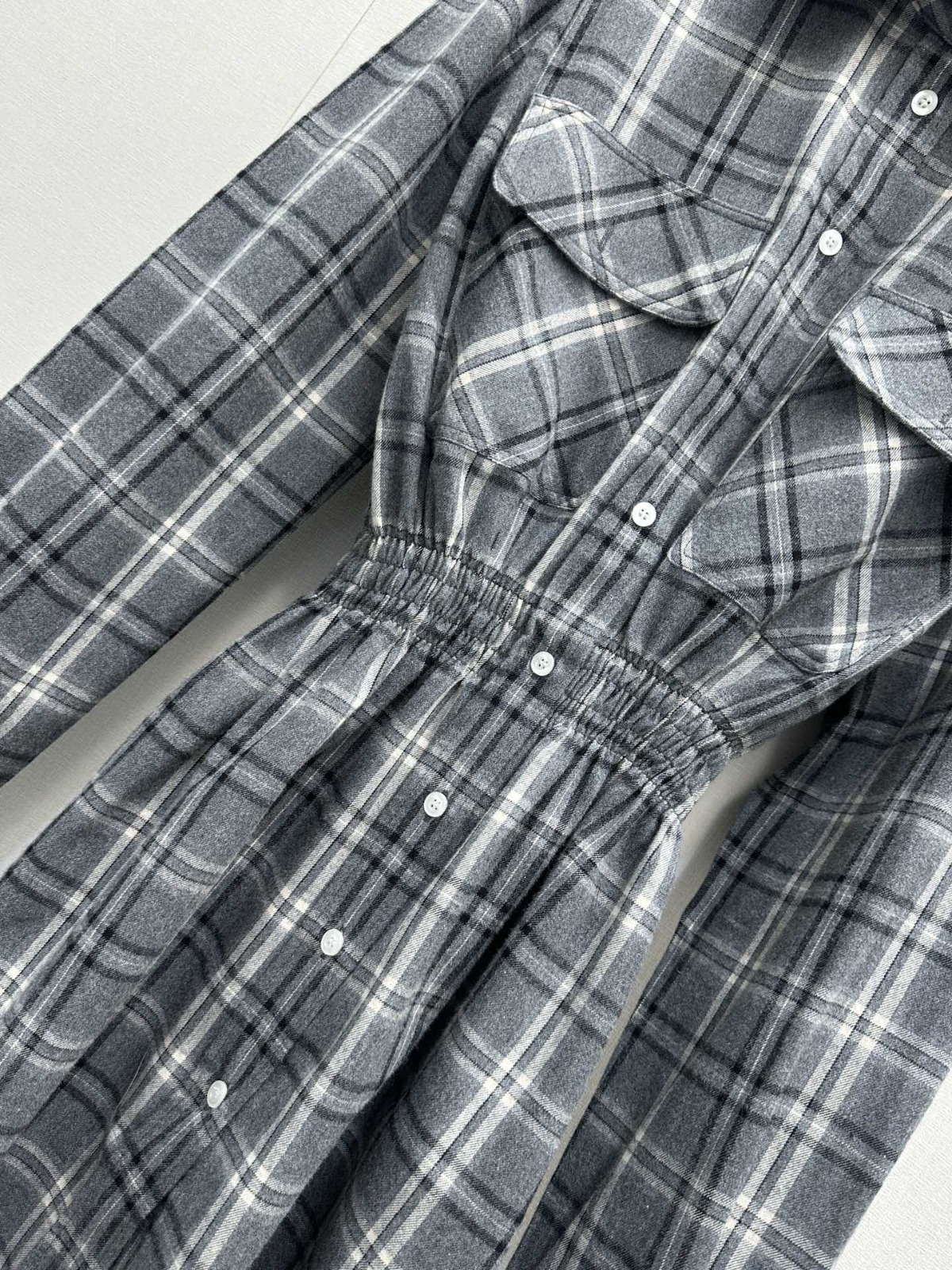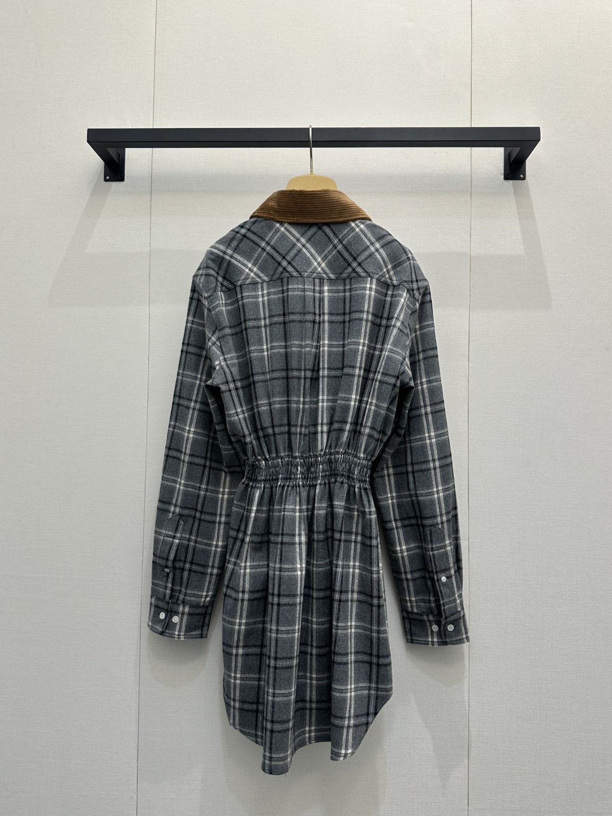 Miu Miu 格紋法蘭絨羊毛收腰恤衫裙
