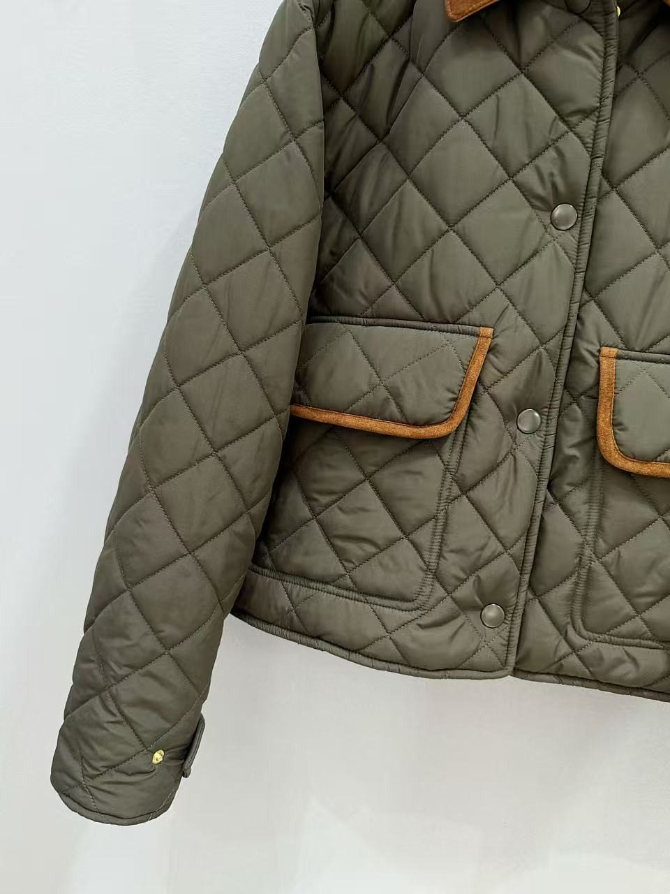 🎨 後領飾有品牌標誌刺繡,袖口與下擺拼接麂皮飾邊,側邊開衩搭配按扣設計 🔗