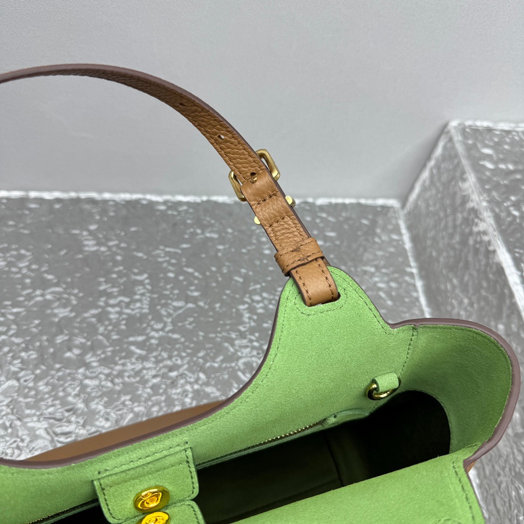 這款精緻百搭的手提包以其可調節手柄脫穎而出,提供多種使用方式。柔軟的納帕皮革與絨面革在色彩和質感上的對比,營造出精湛的工藝和優雅的氣質。包身還飾有精美的吊墜,更添精緻之感。