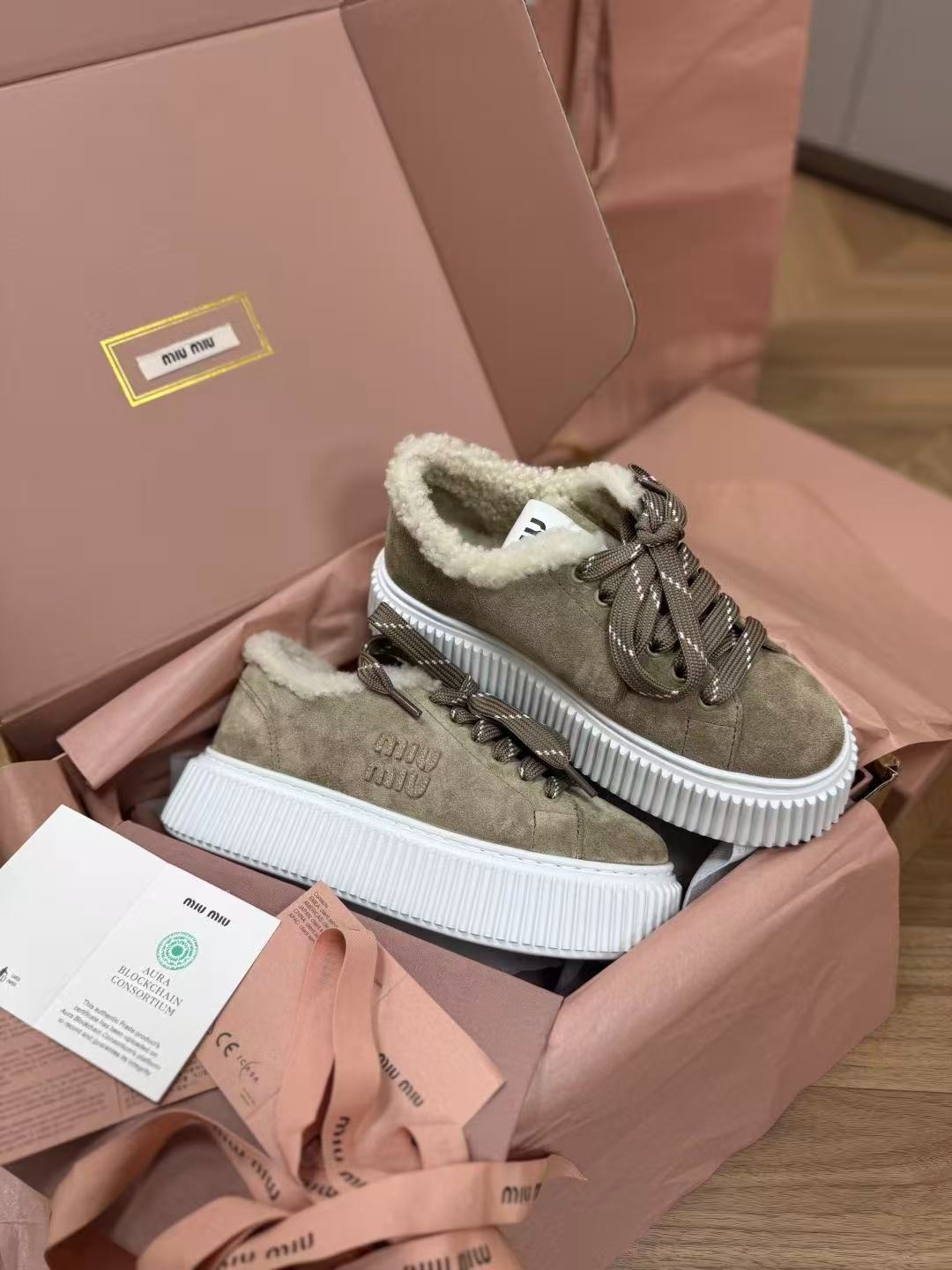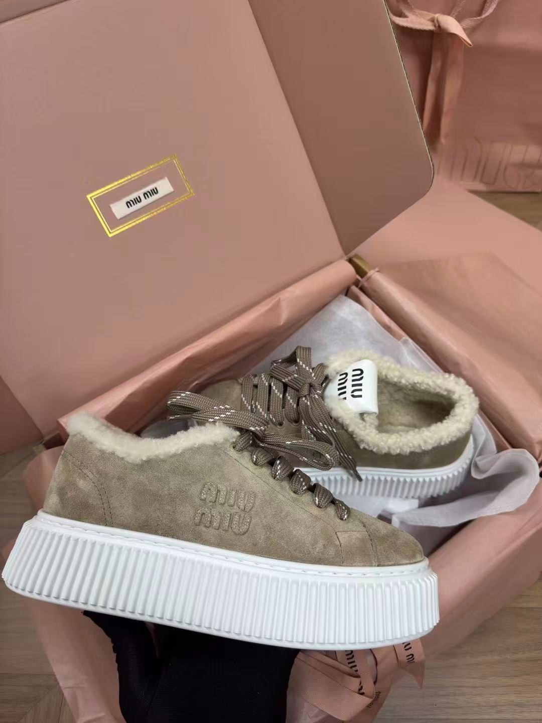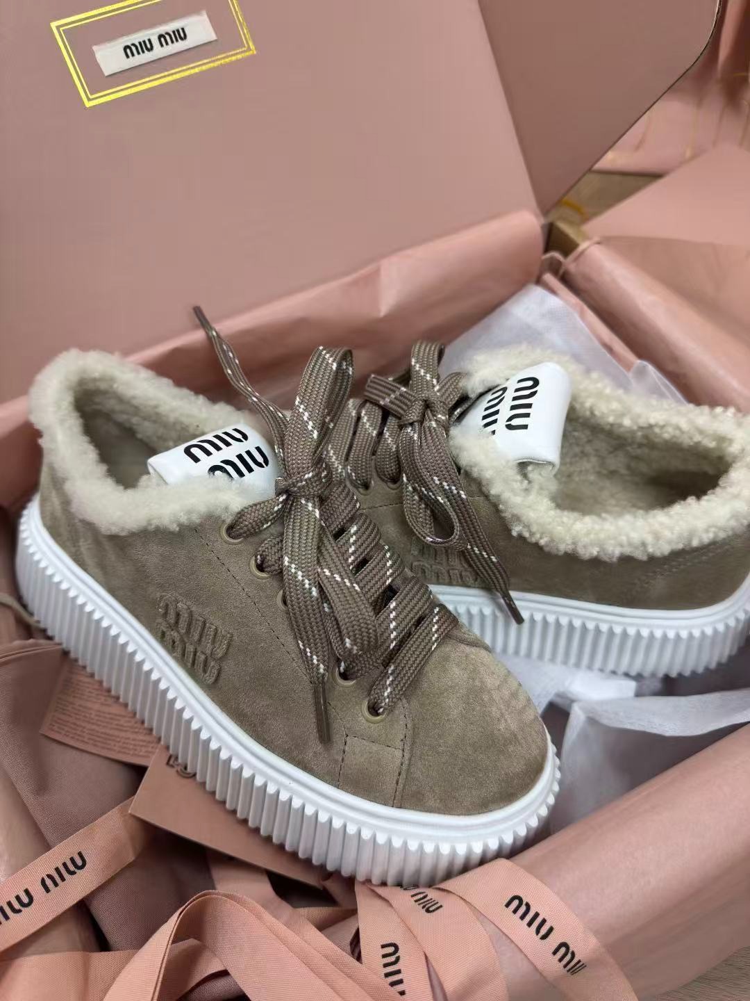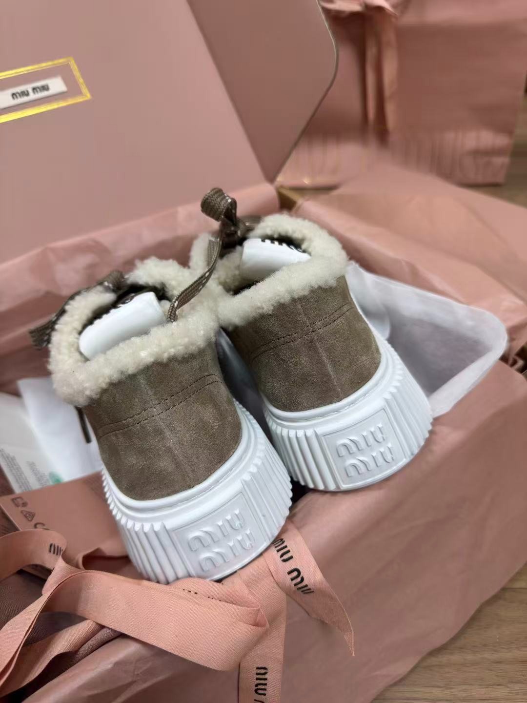 Miu Miu 麂皮羊羔毛厚底餅乾運動鞋