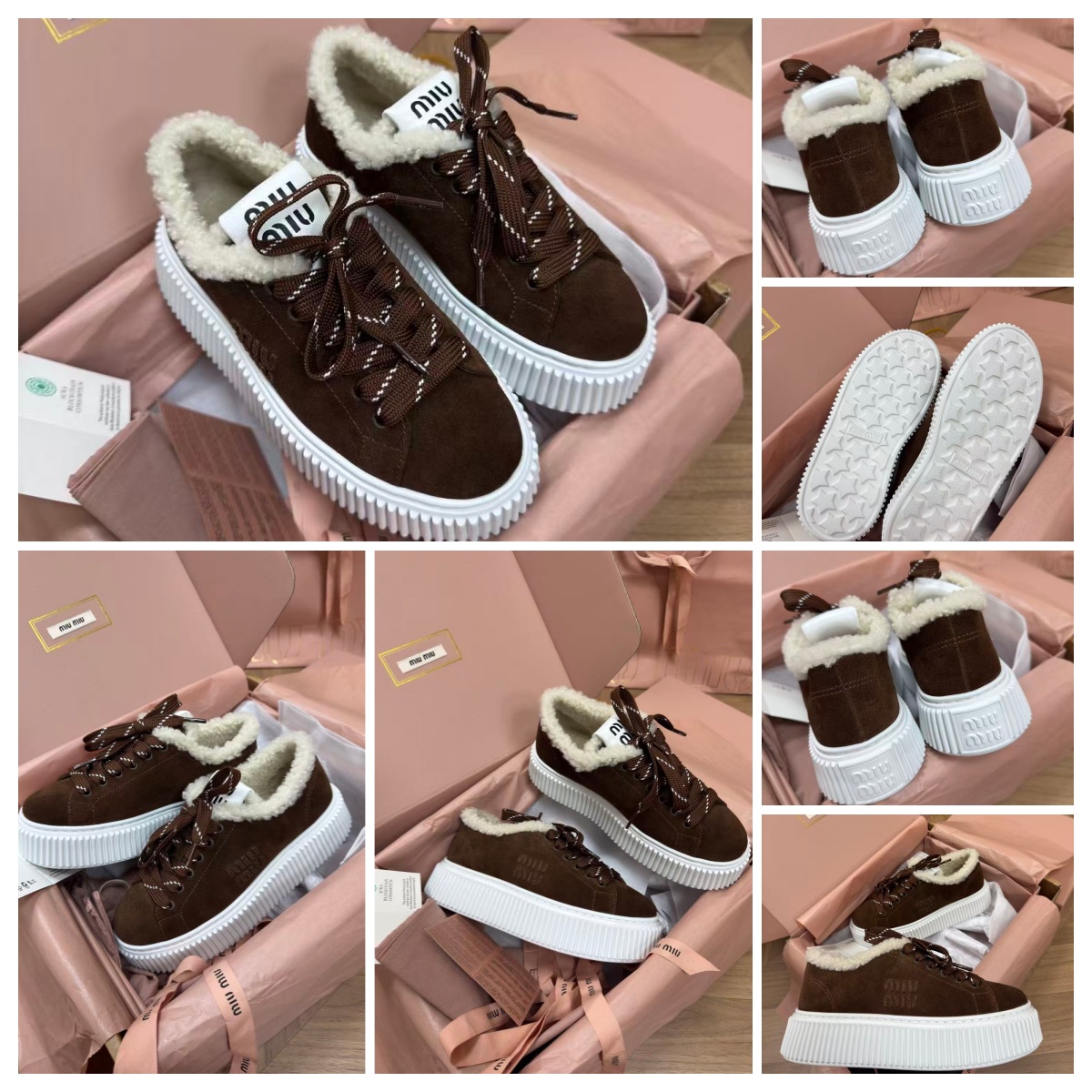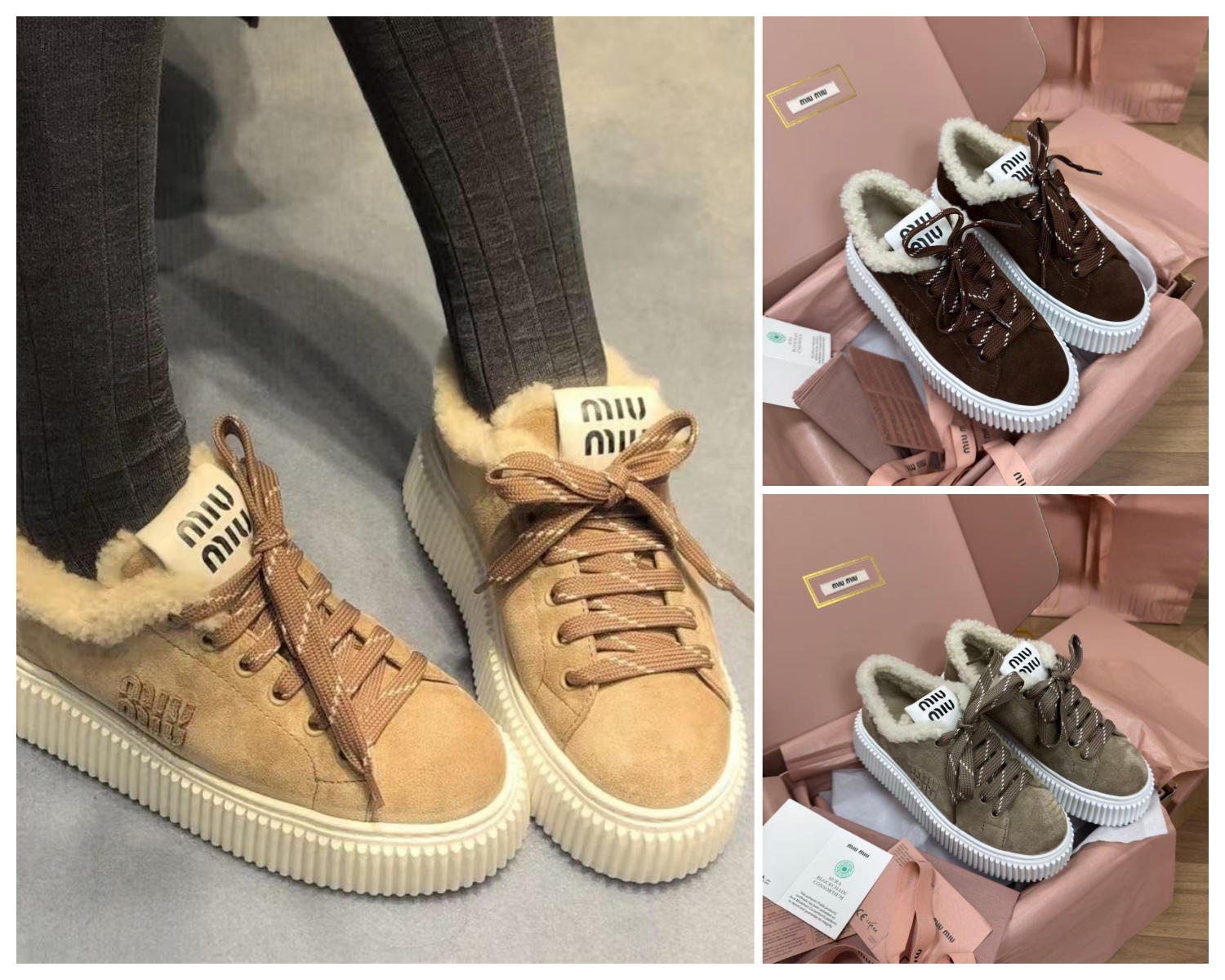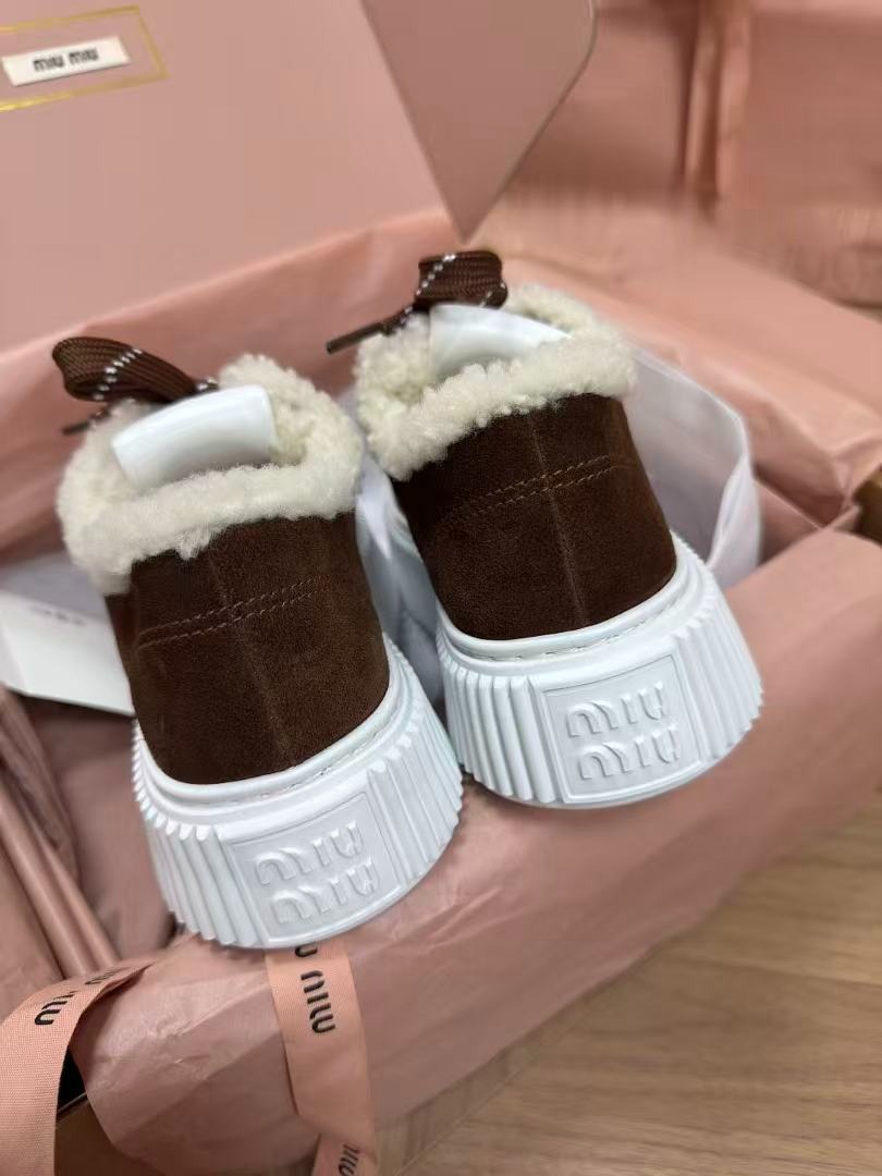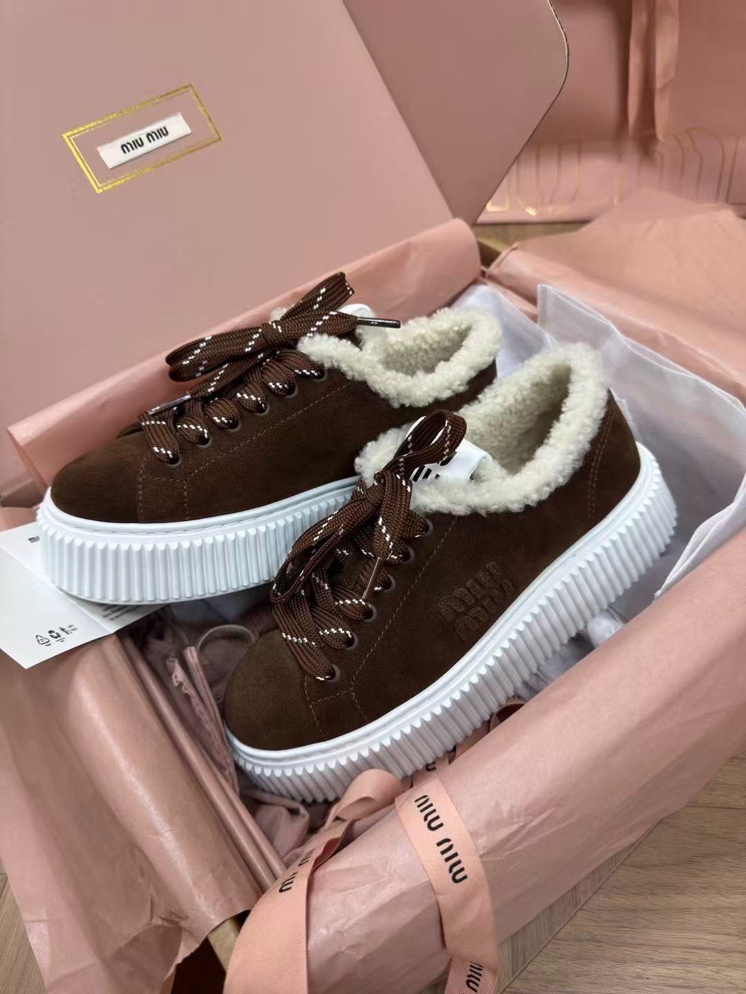 Miu Miu 麂皮羊羔毛厚底餅乾運動鞋