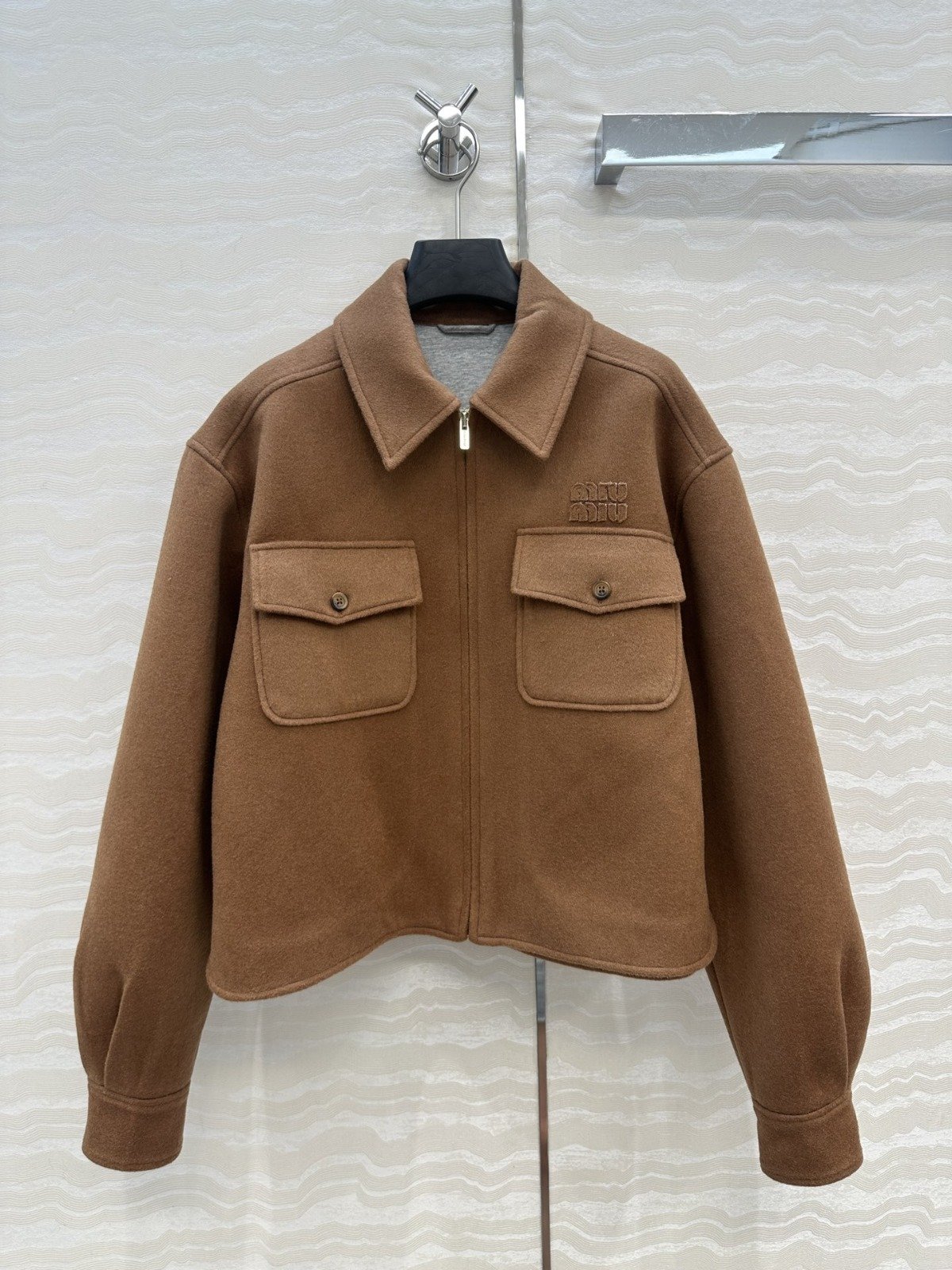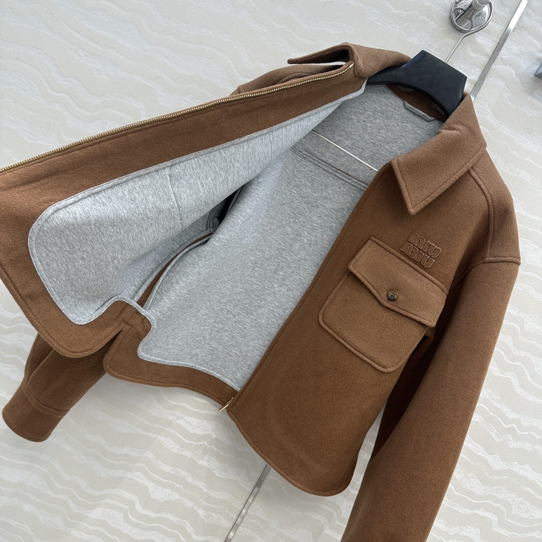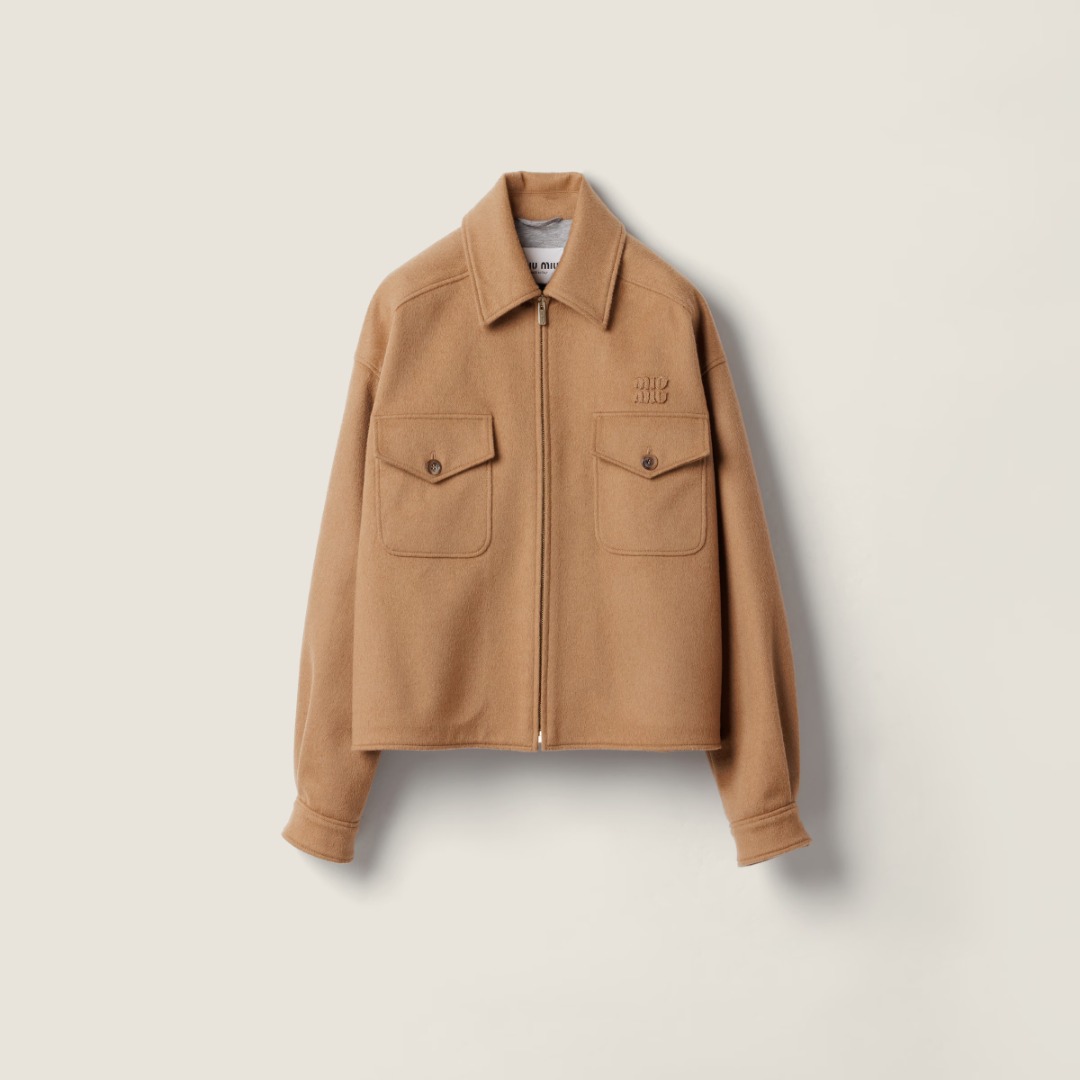 Miu Miu Bonded camel hair blouson jacket 貼布繡翻領拉鏈外套