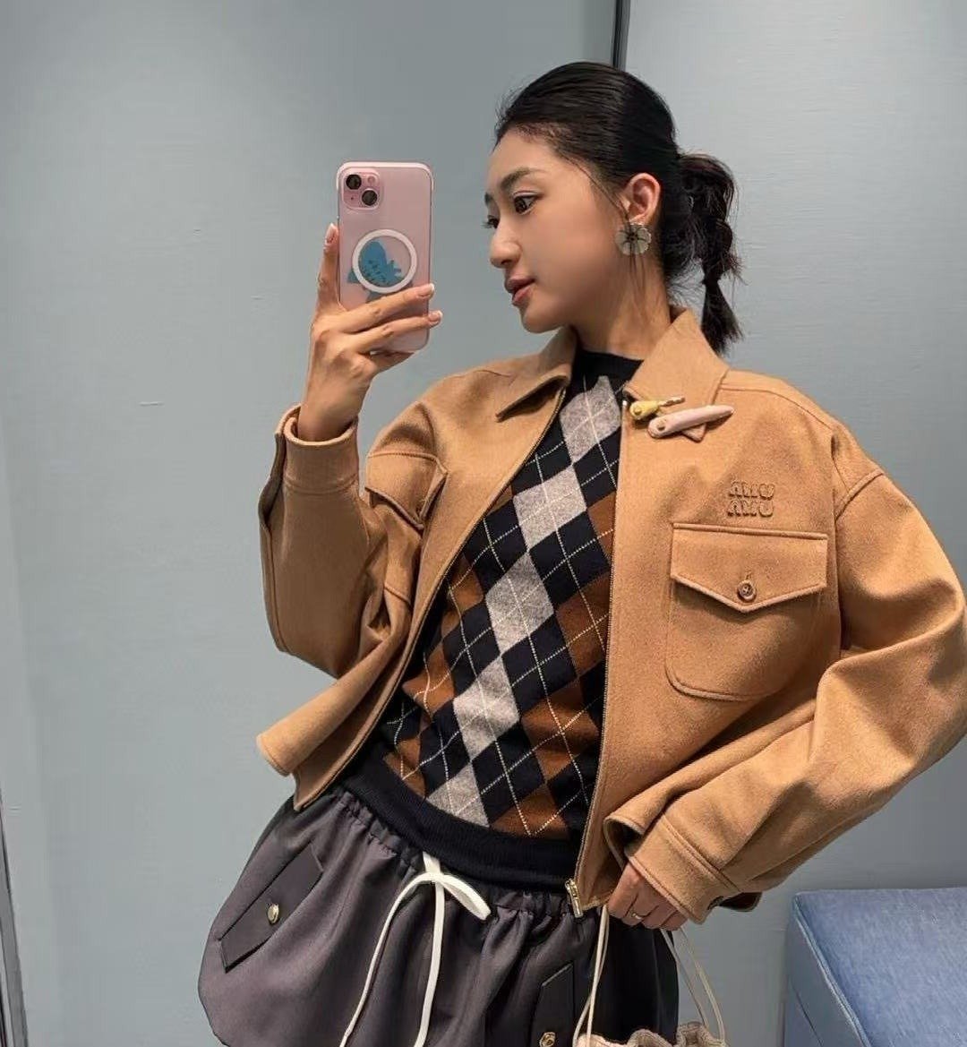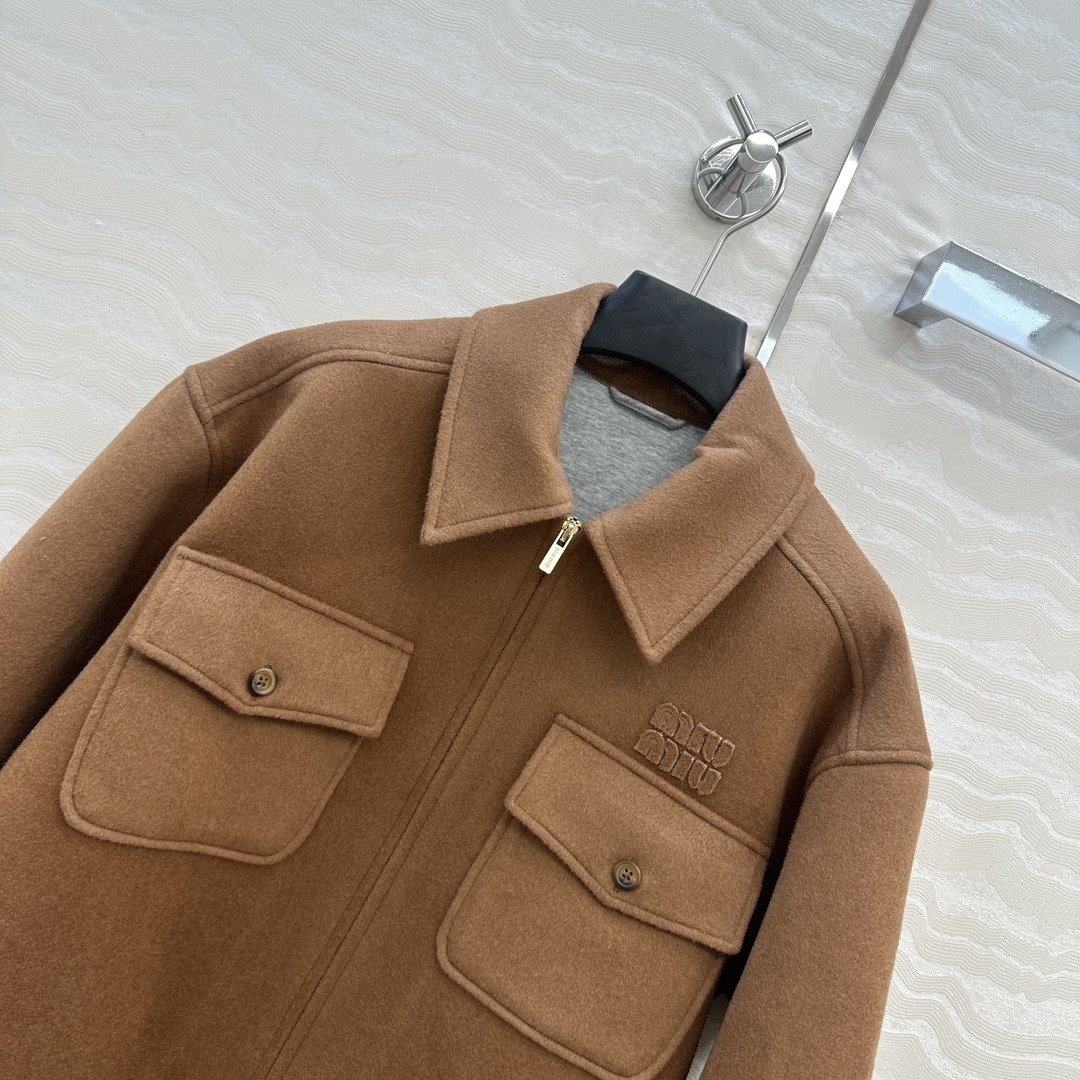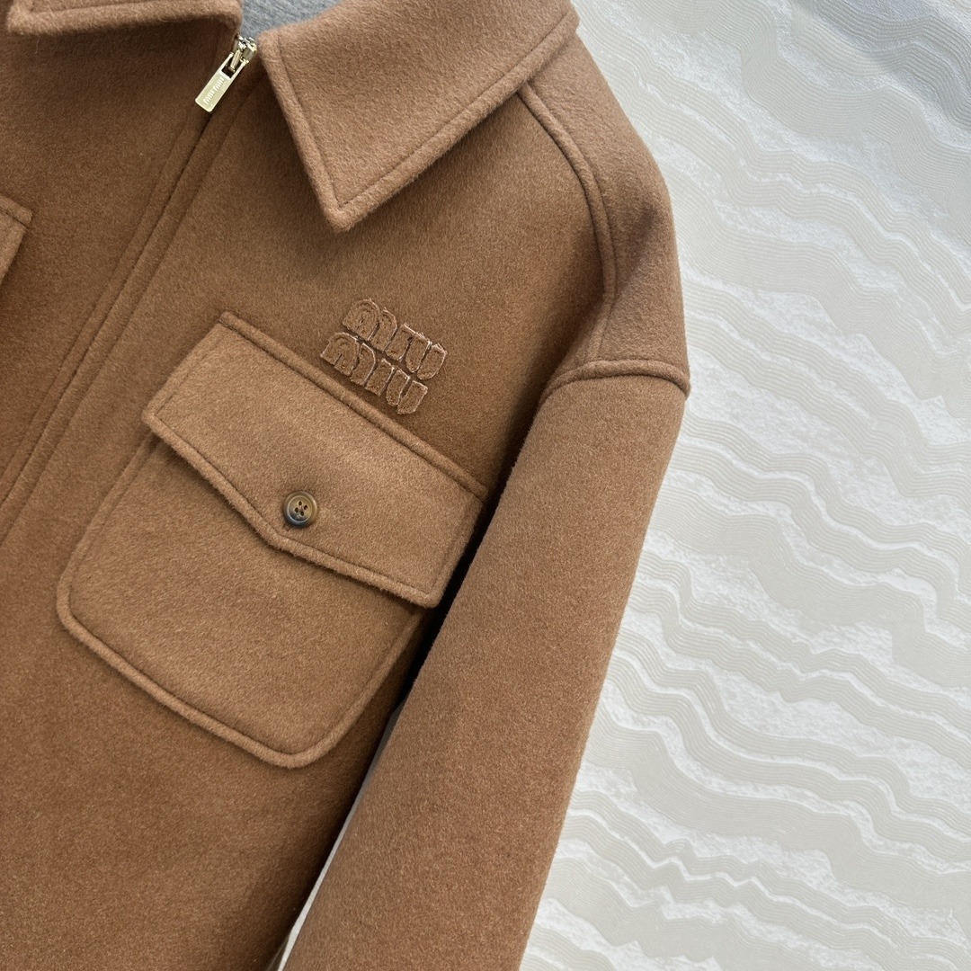 Miu Miu Bonded camel hair blouson jacket 貼布繡翻領拉鏈外套