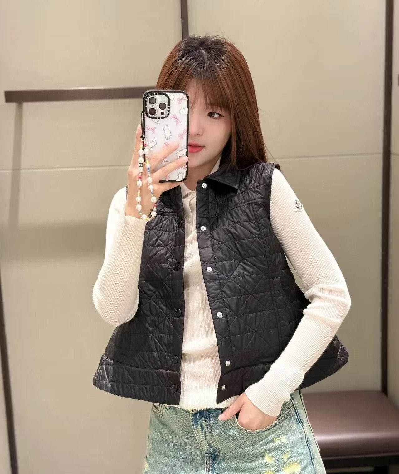 這款 A 👗 擺棉服背心延續品牌一貫的高級質感,藤格紋理低調又耐看,搭配 A 字外擴下擺剪裁,瞬間提升穿搭的時髦度 ✨