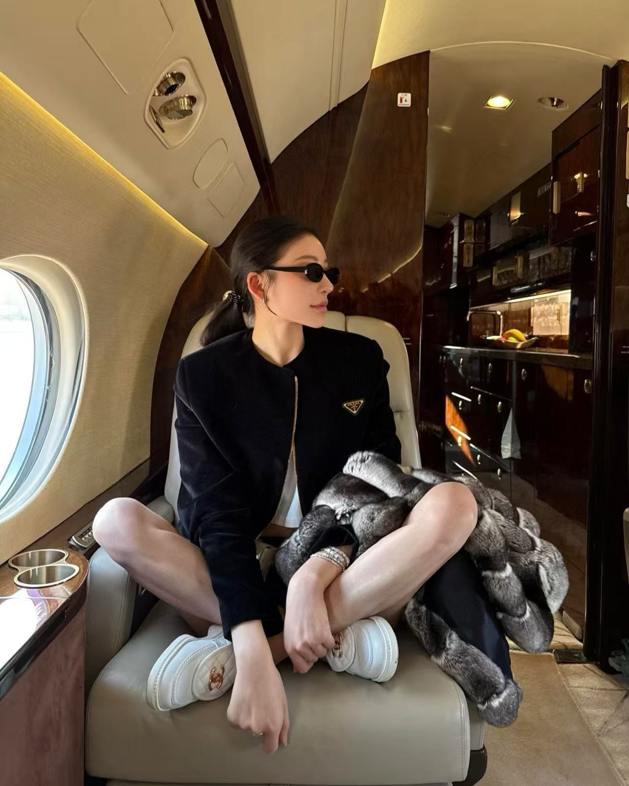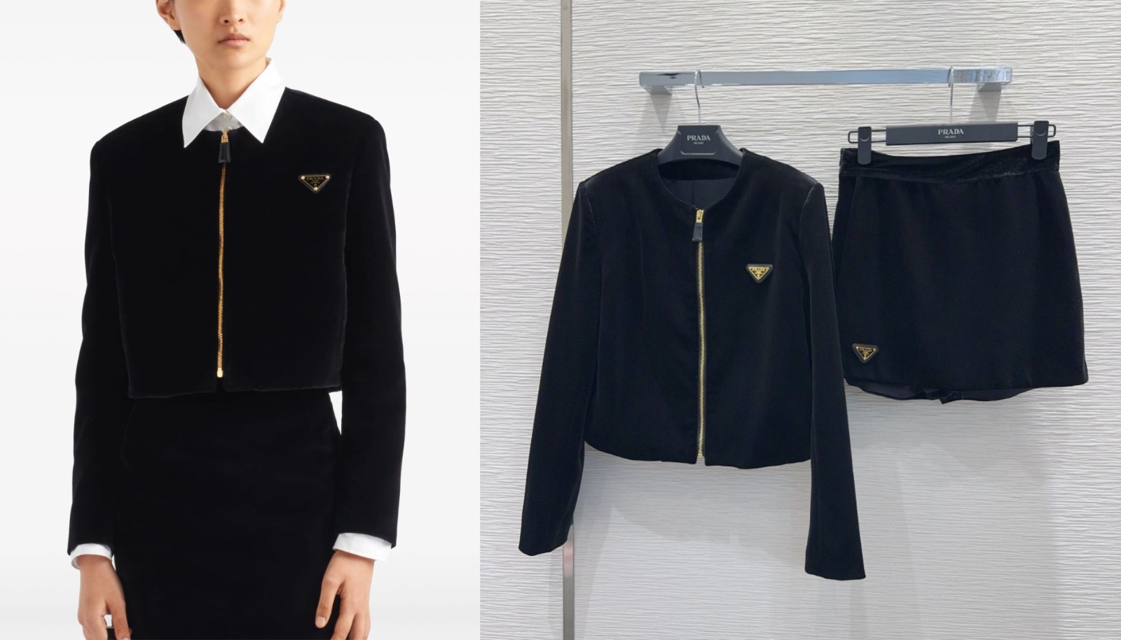 PRADA 三角標絲絨外套褲裙套裝