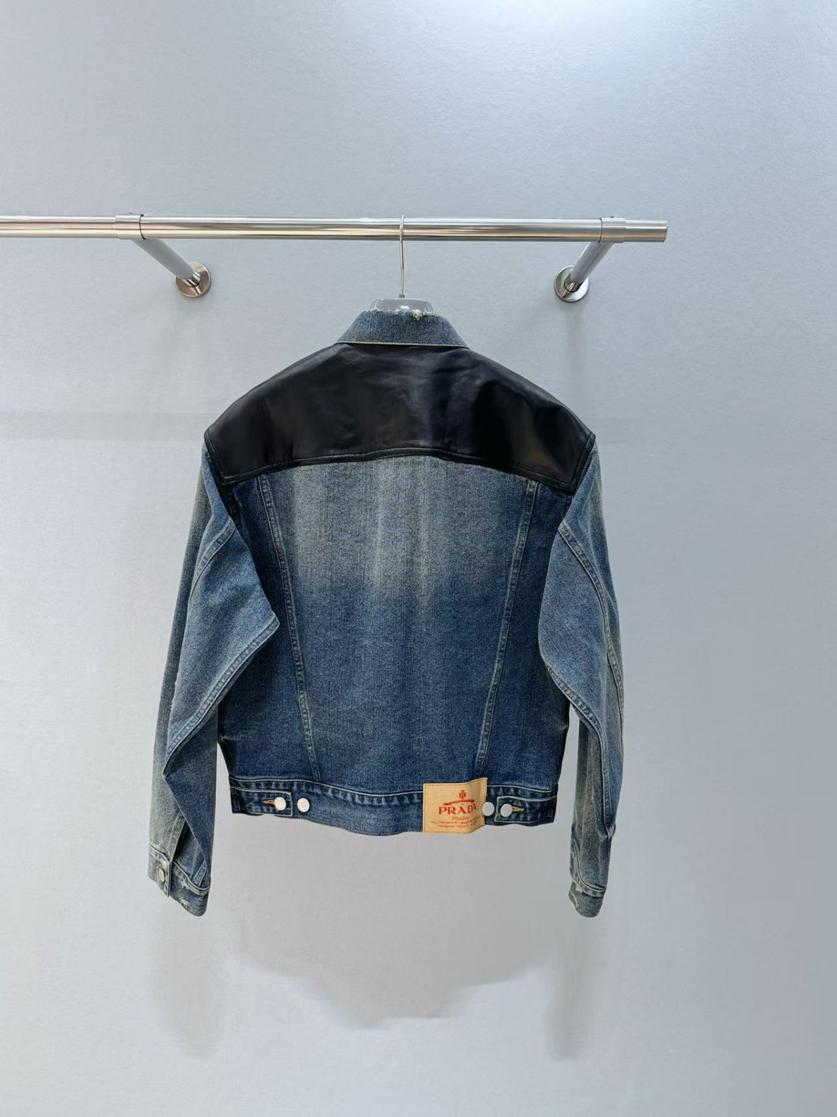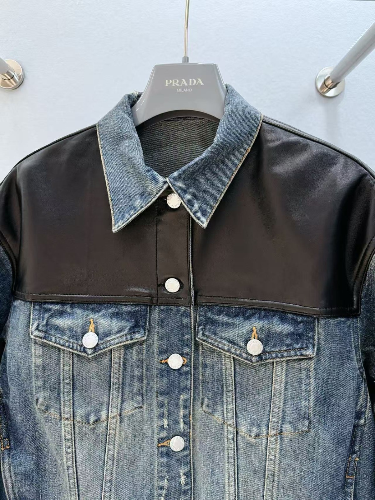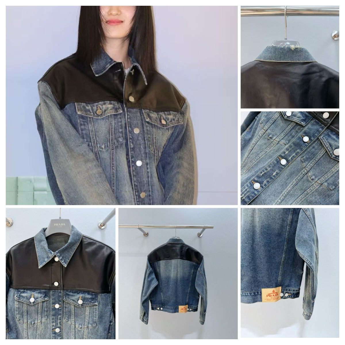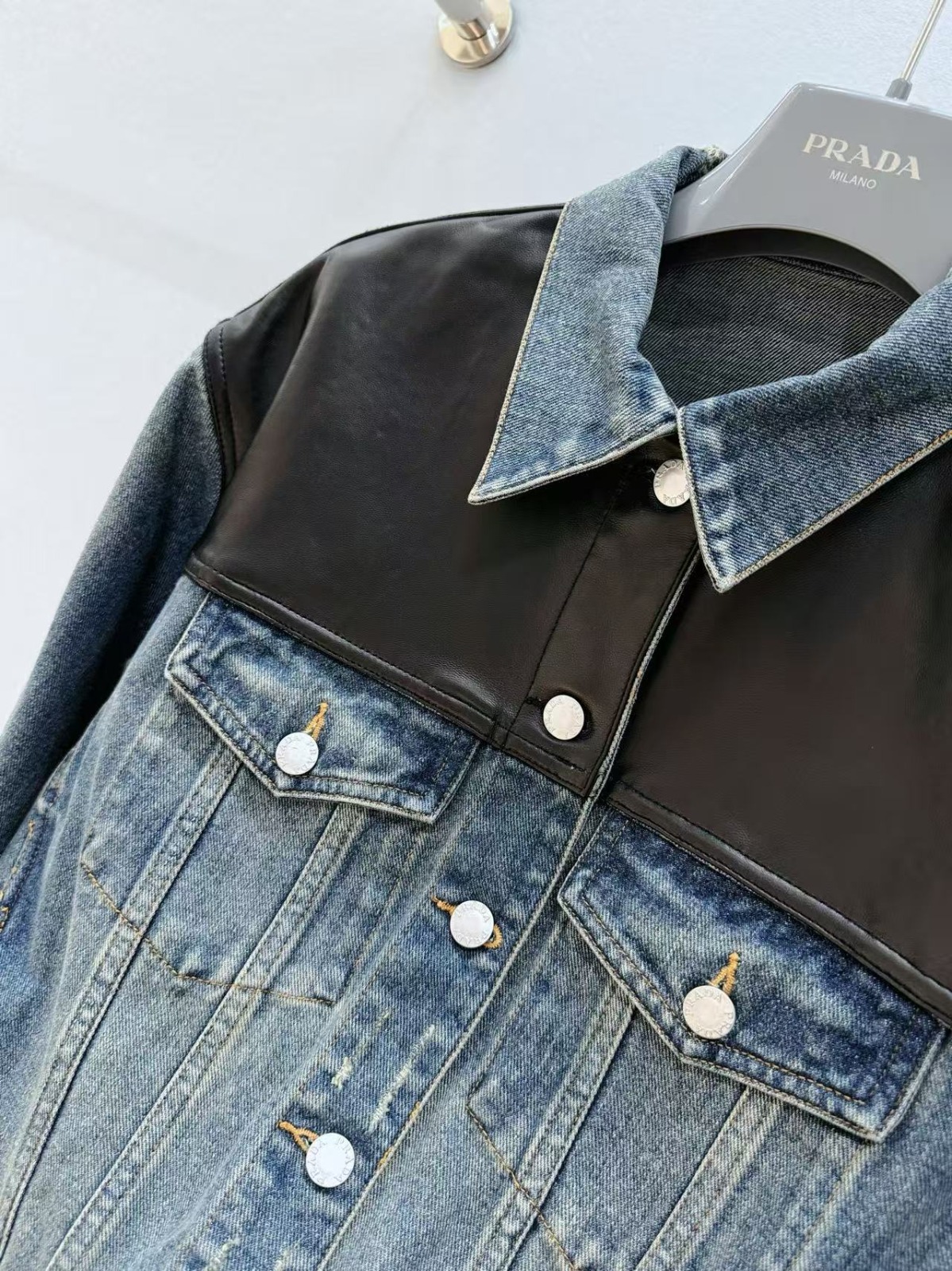 PRADA 皮革拼接牛仔夾克外套