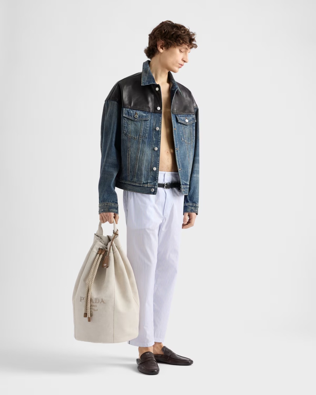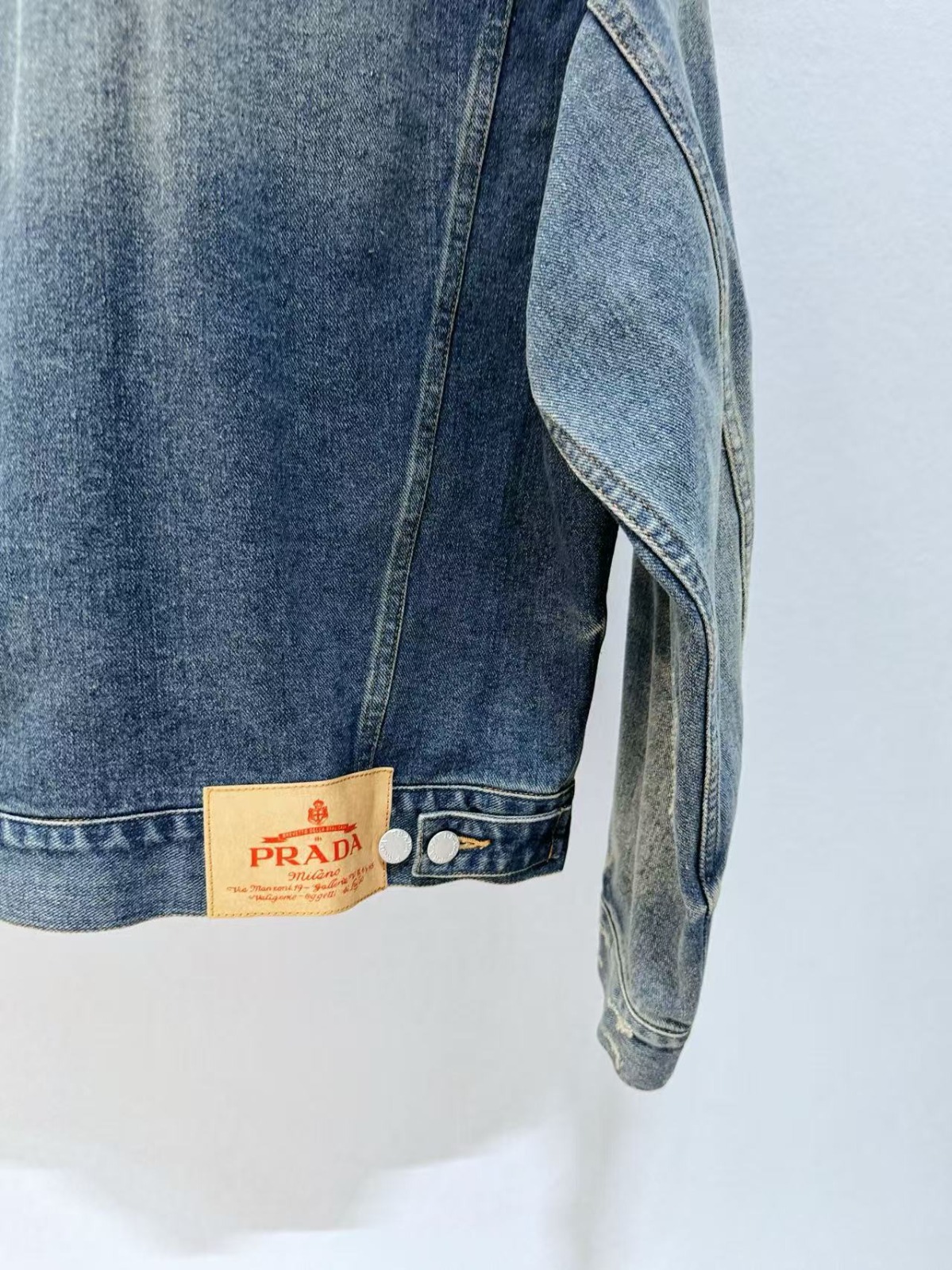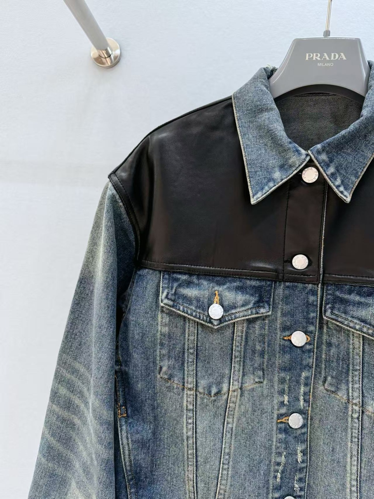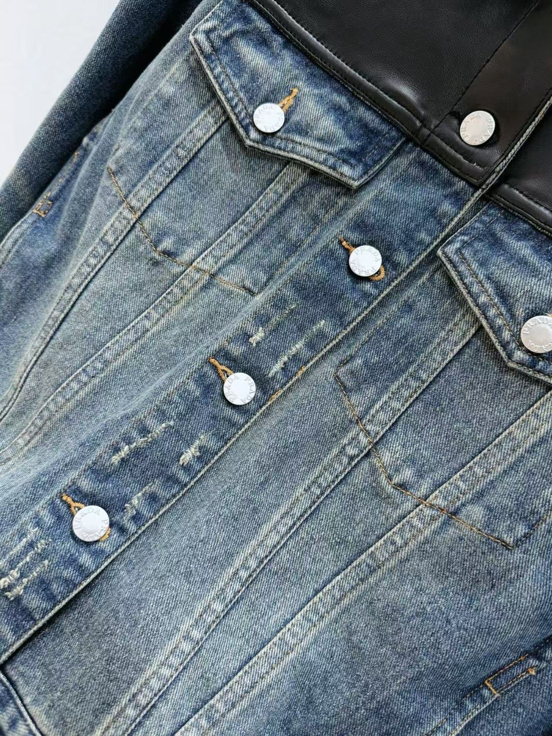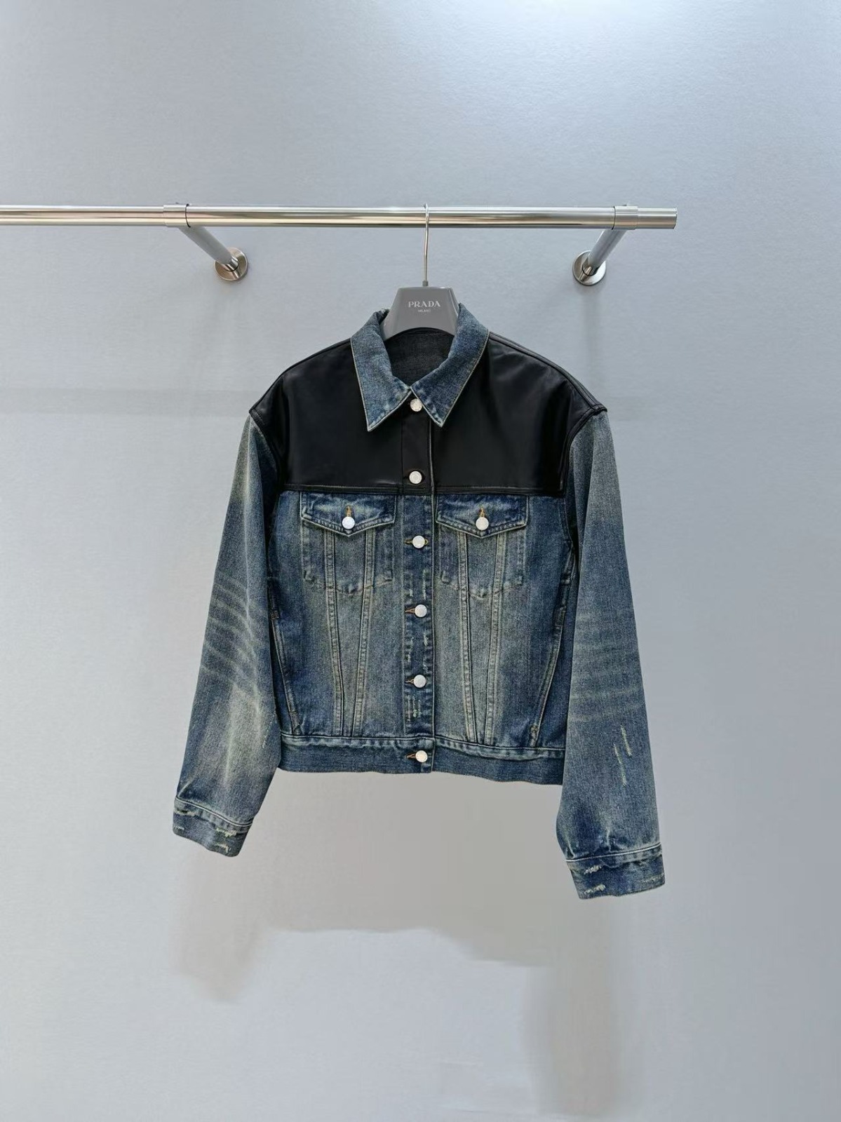 PRADA 皮革拼接牛仔夾克外套
