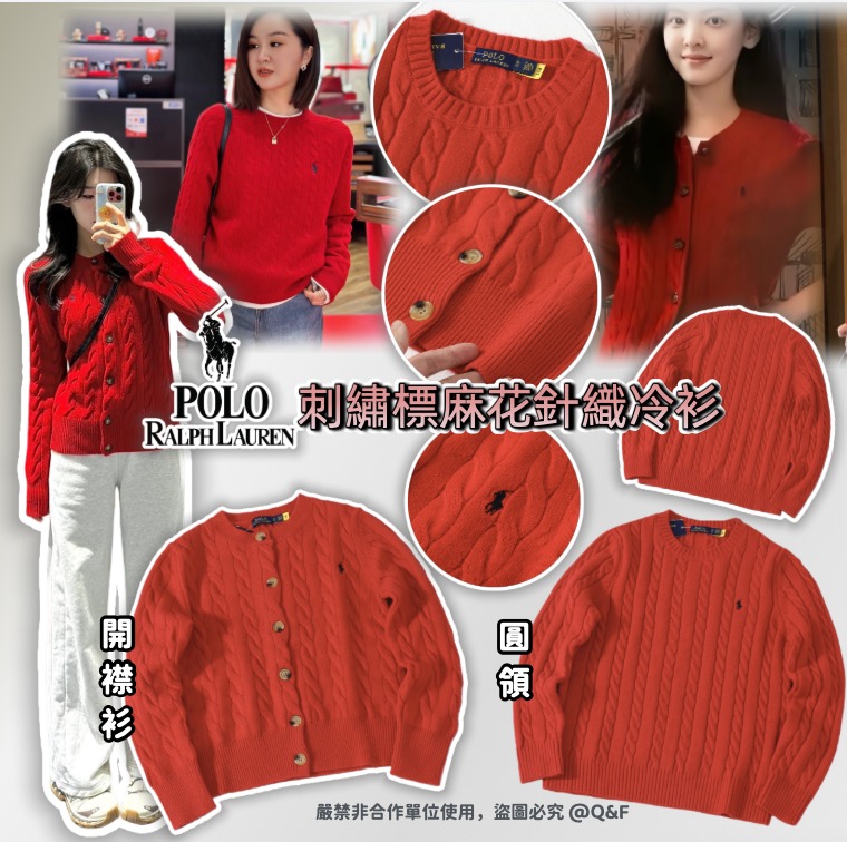 幸運紅色🌹Ralph Lauren Polo 刺繡標麻花針織冷衫