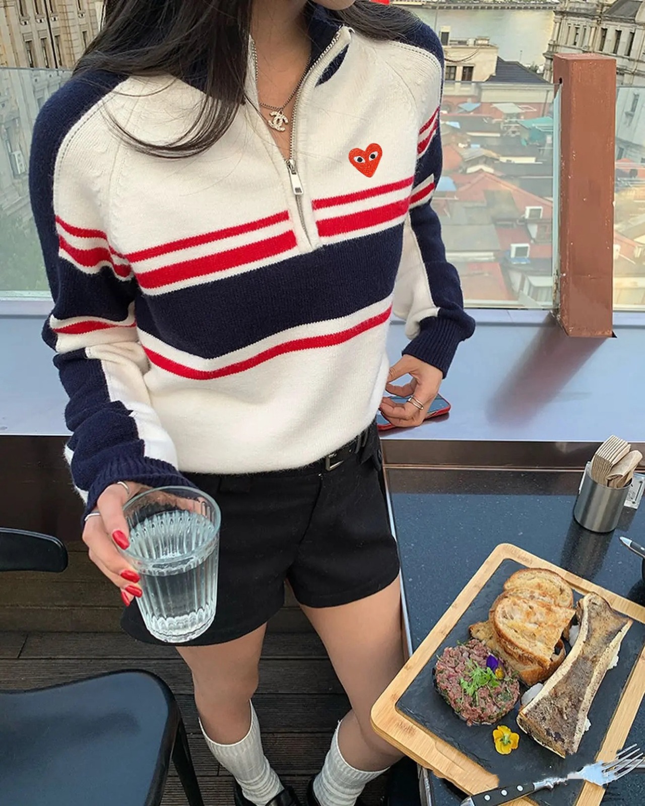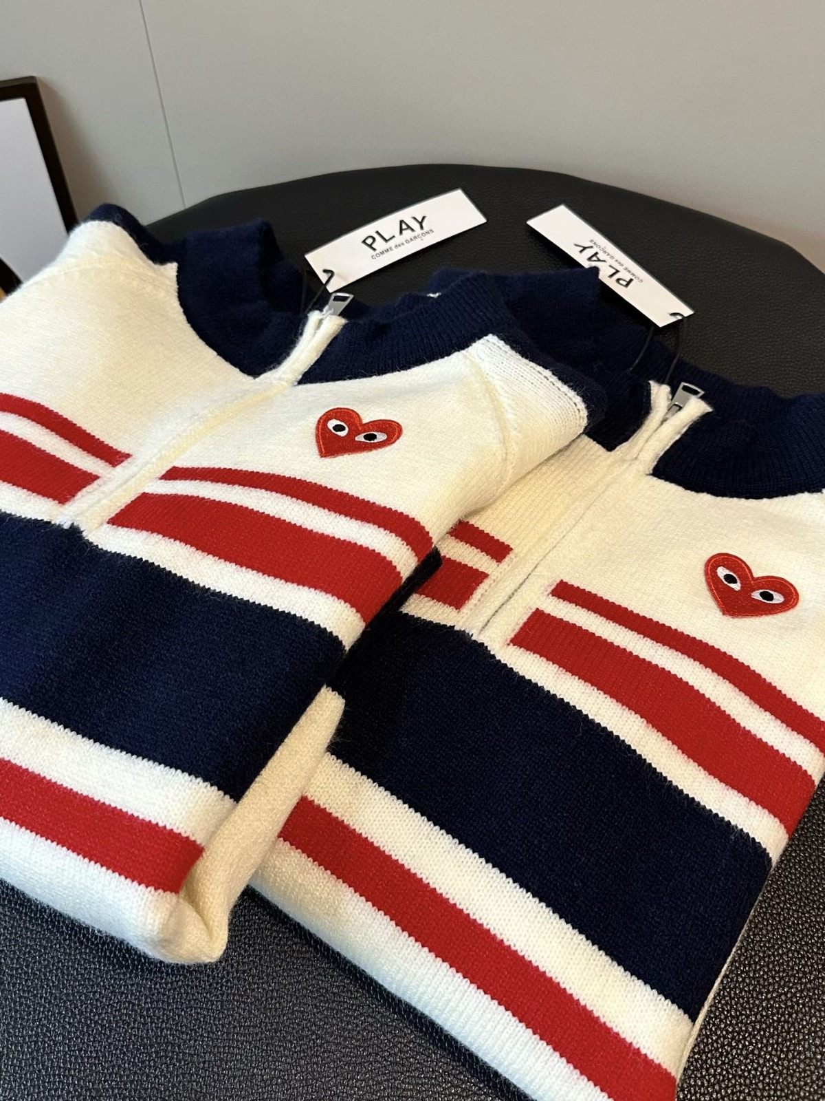 日本🇯🇵 CDG PLAY 愛心刺繡半拉鍊條紋冷衫