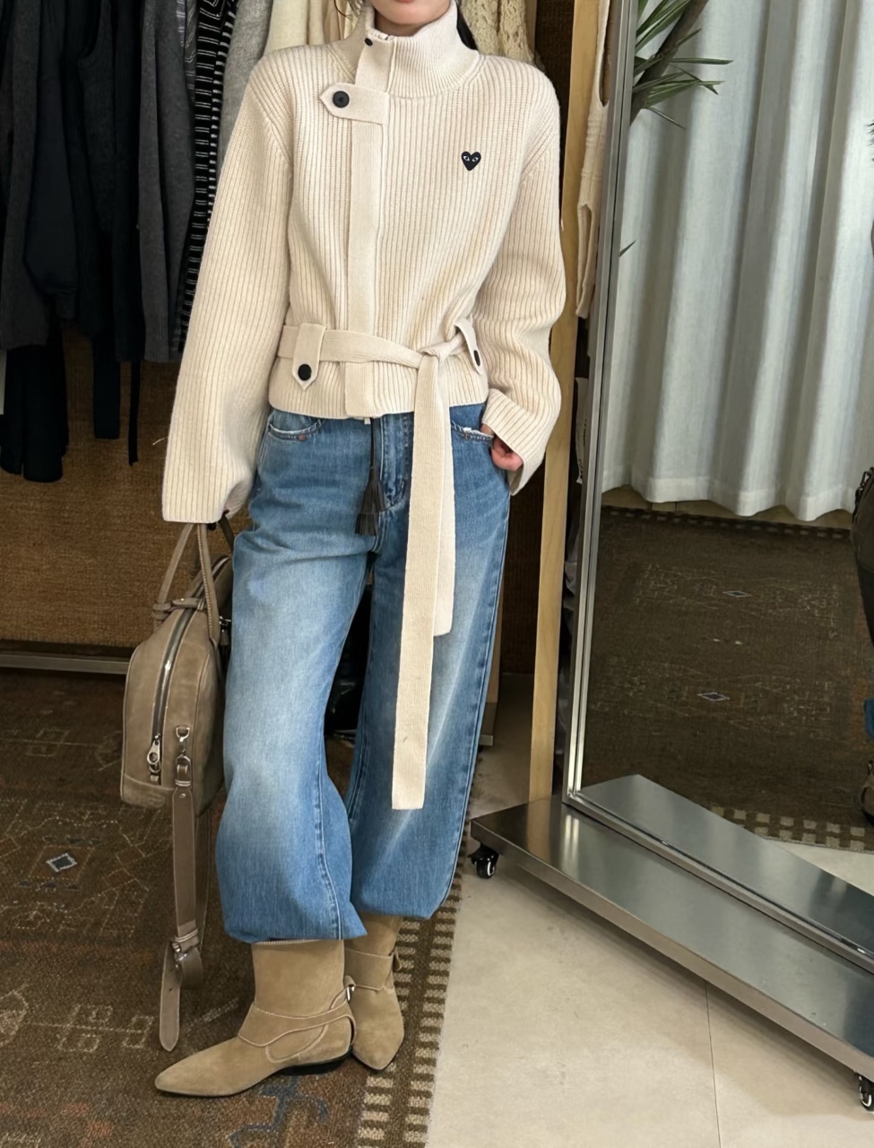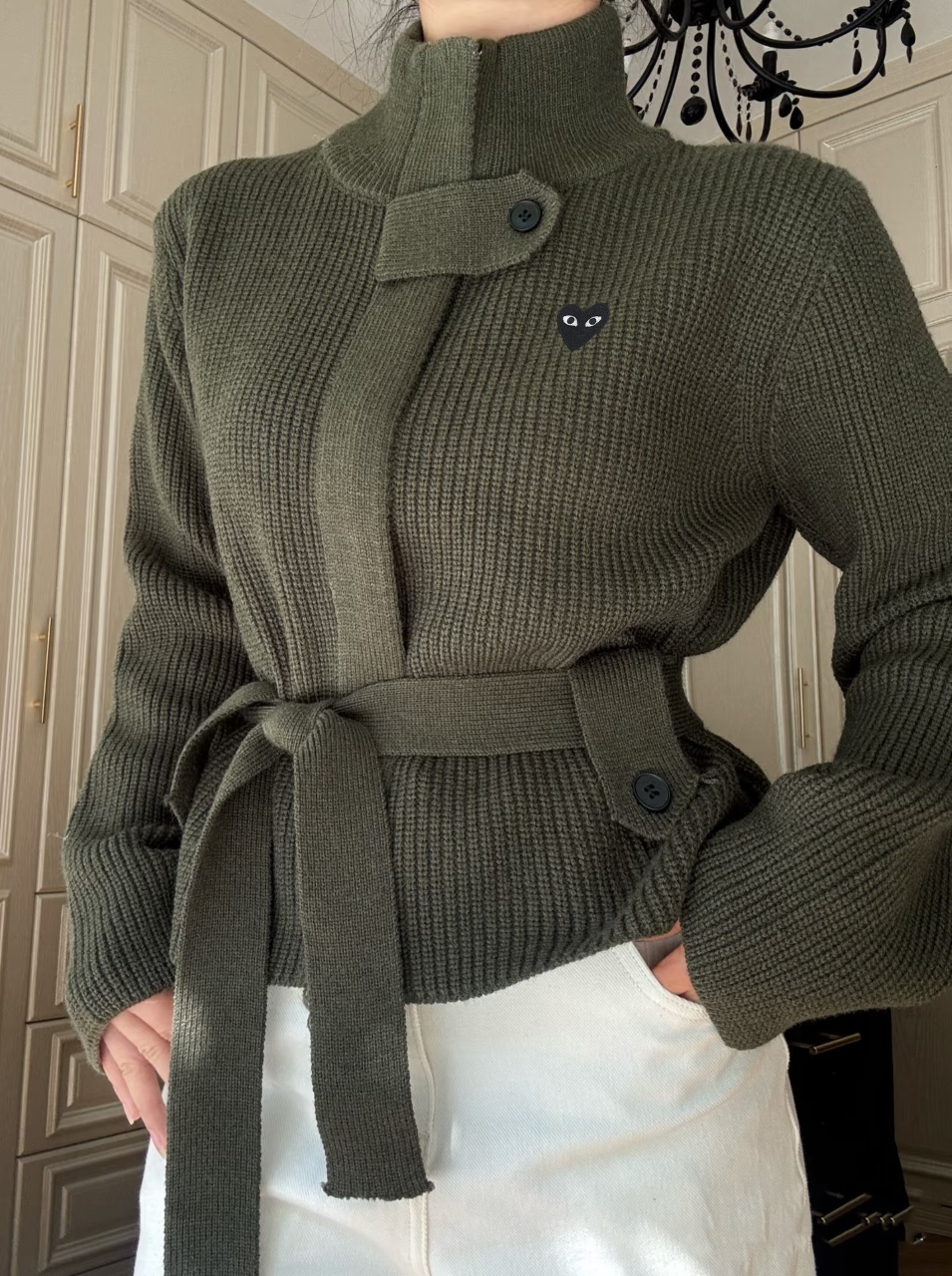 日本🇯🇵 CDG PLAY 立領系扣 + 腰帶拉鍊冷衫