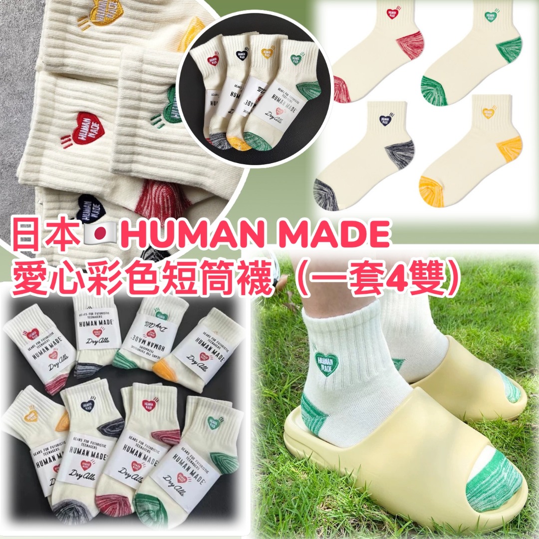 日本🇯🇵HUMAN MADE 愛心彩色短筒襪(一套4雙)