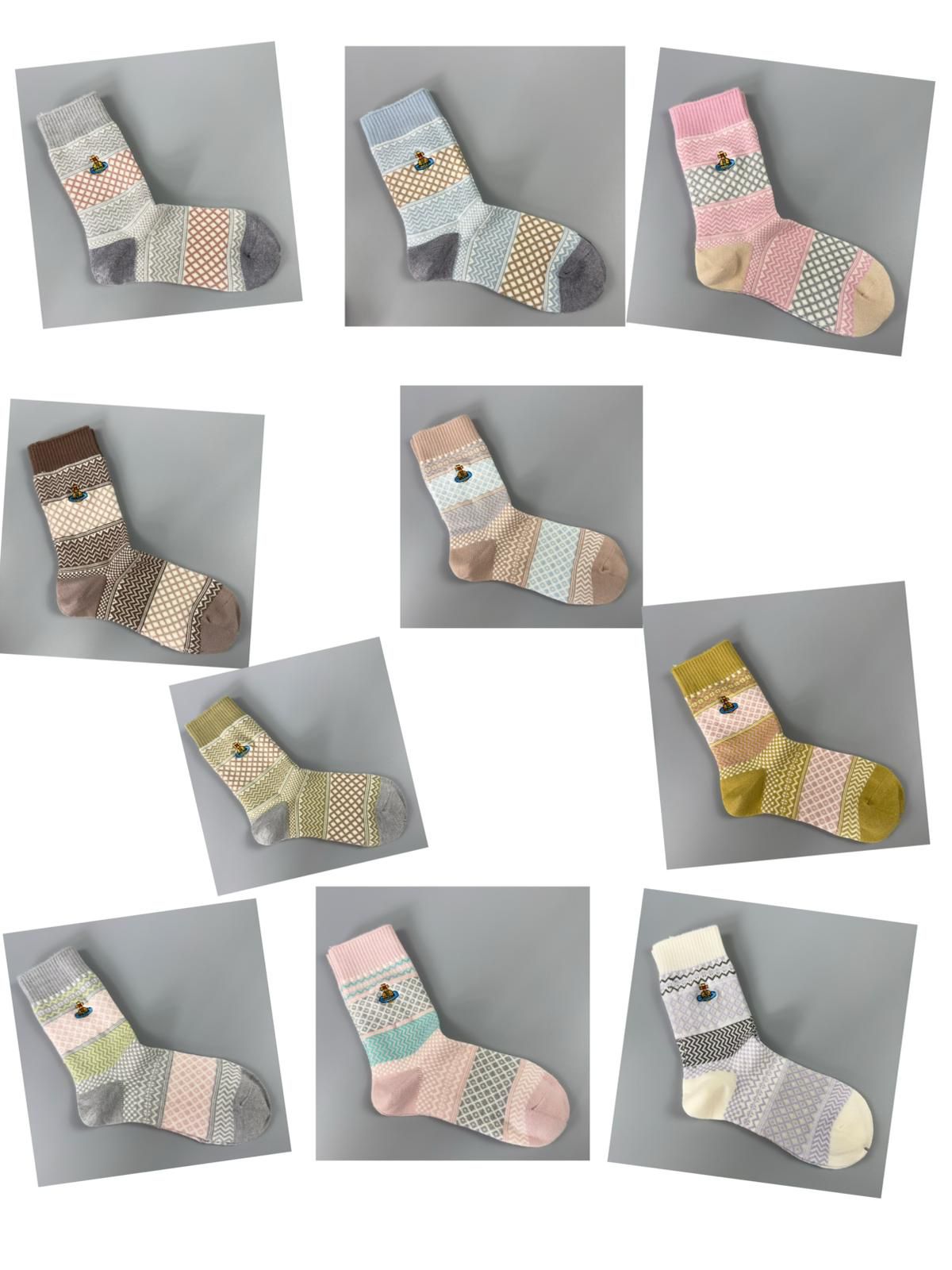 秋冬季Vivienne Westwood土星刺繡民族風保暖羊毛襪(1套3對、可揀款)