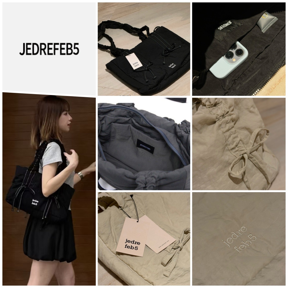 韓國🇰🇷 Jedrefeb5 蝴蝶結褶皺肩單肩包