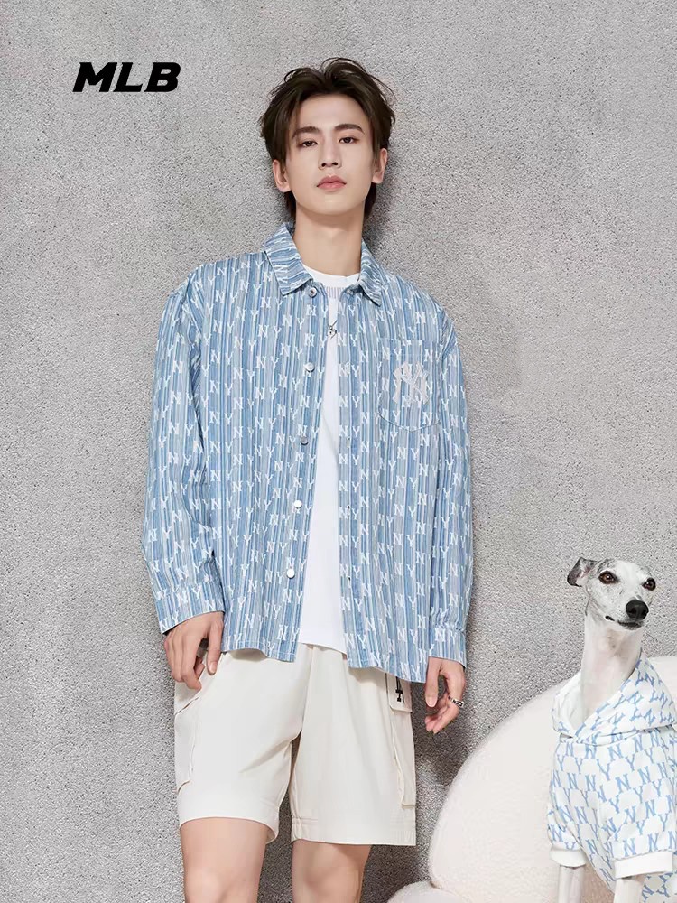 韓國🇰🇷 MLB 滿印 logo 牛仔恤衫外套