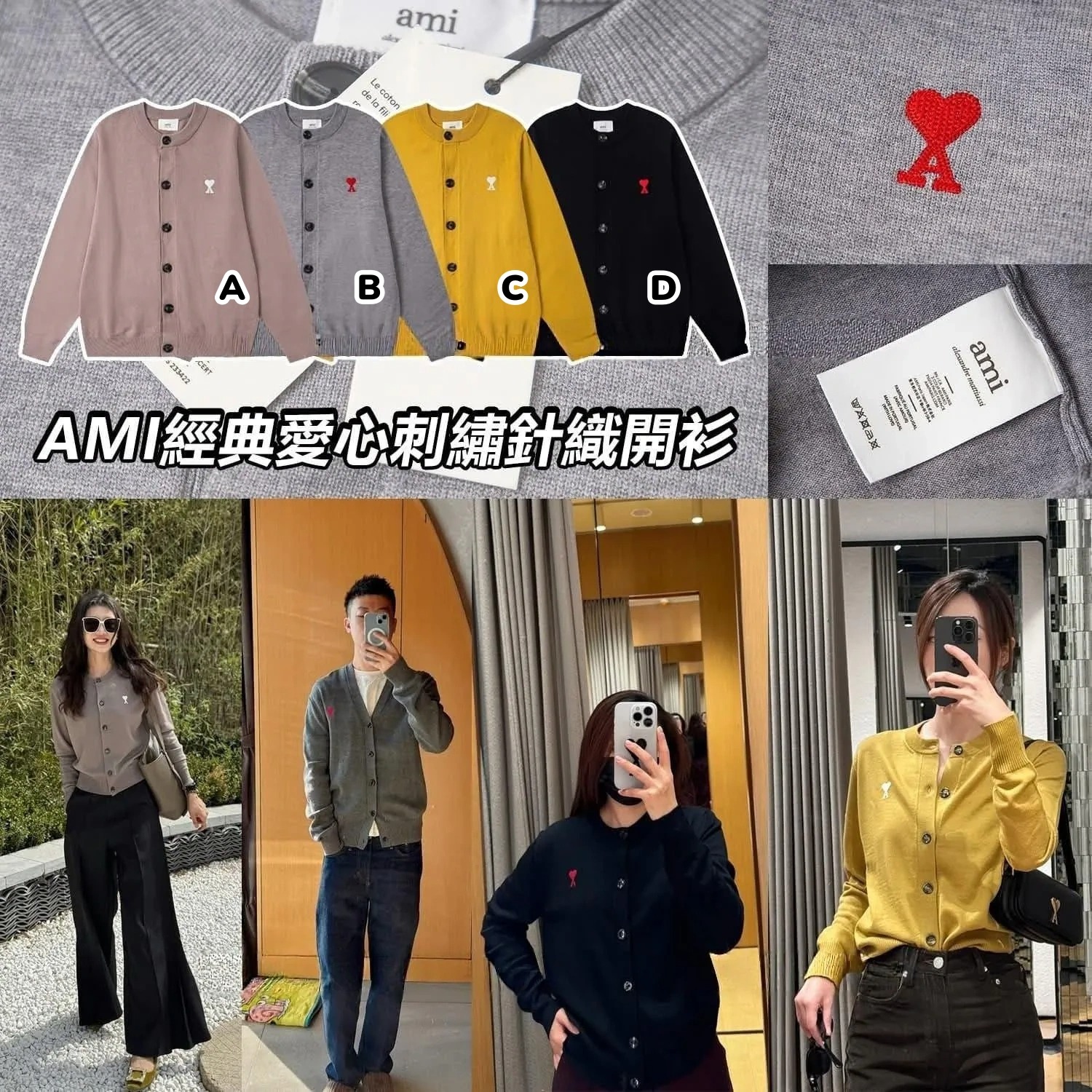 AMI 經典愛心刺繡針織開衫