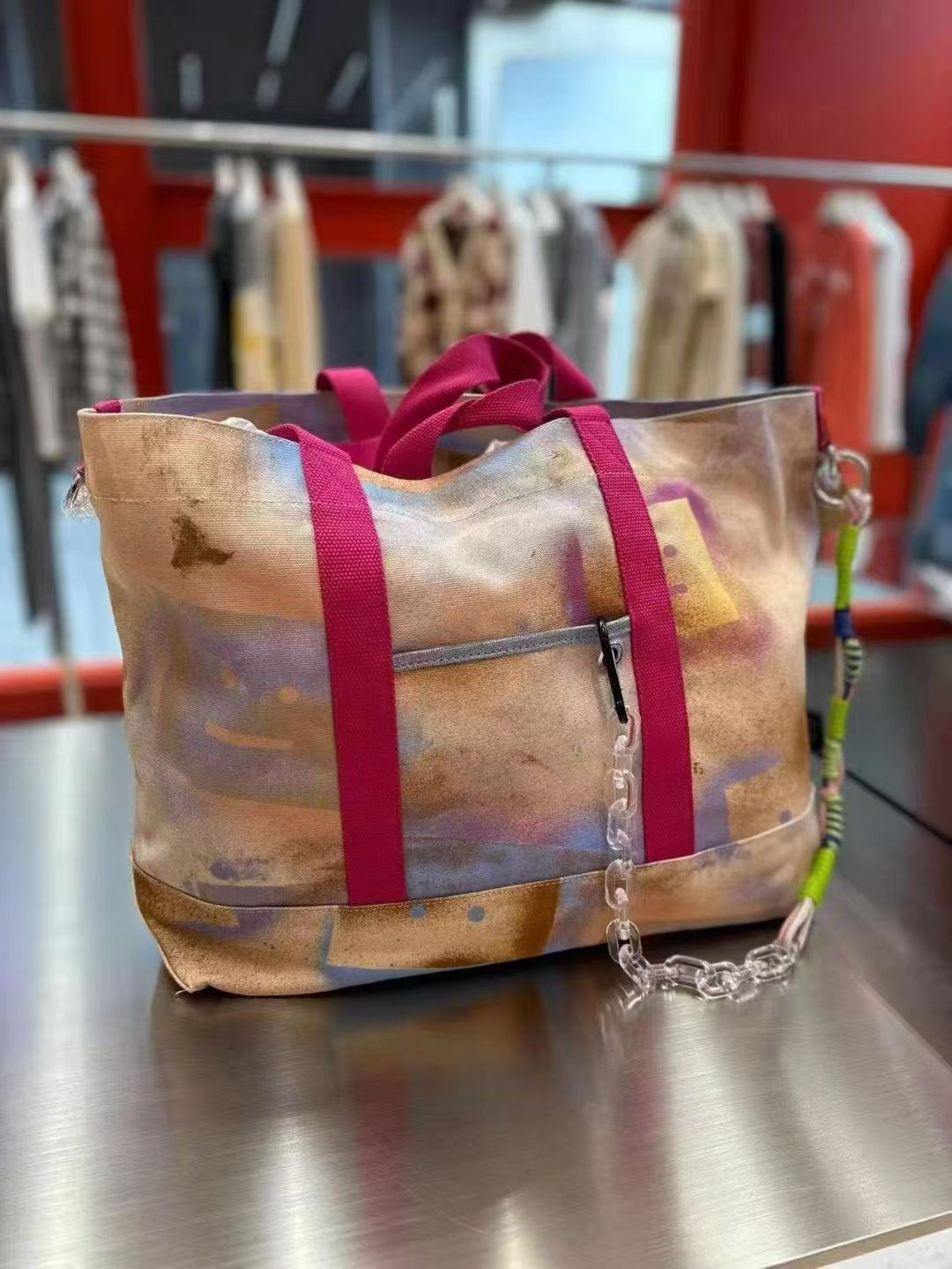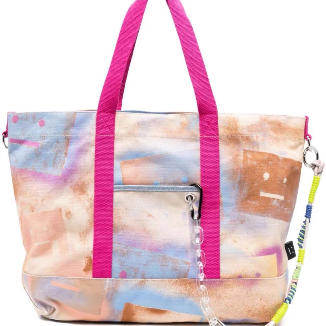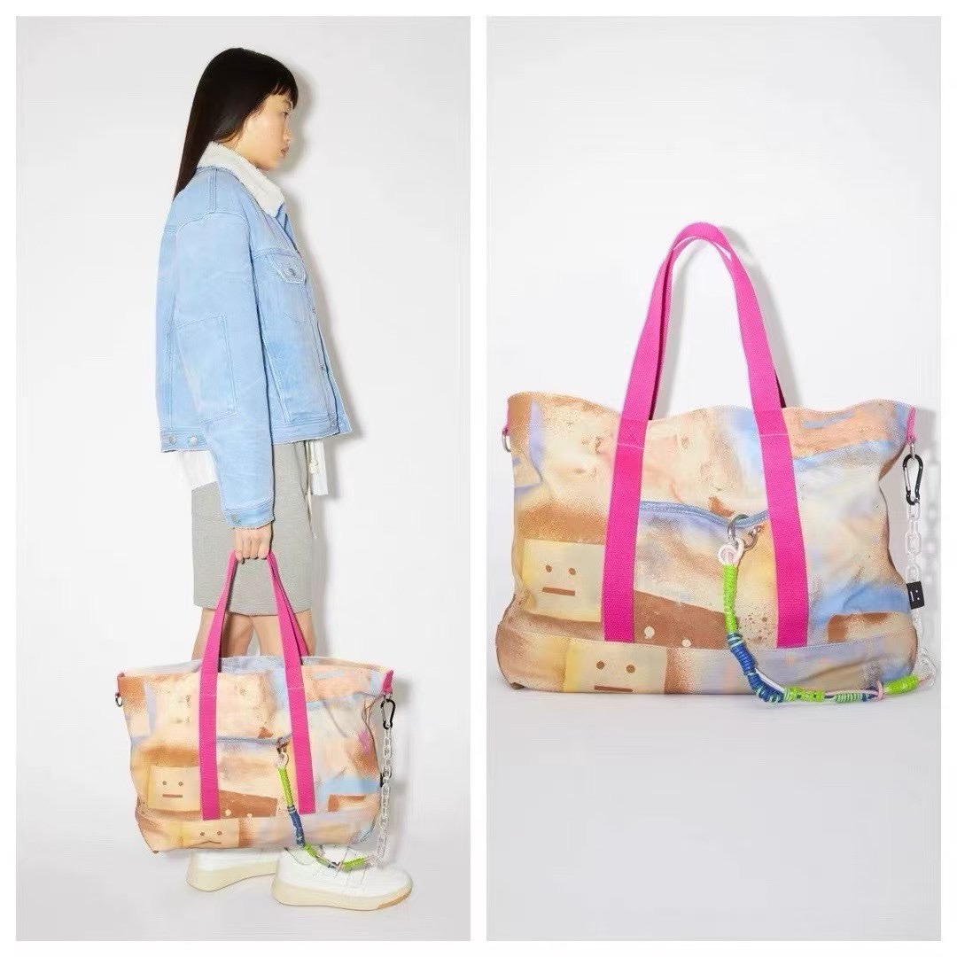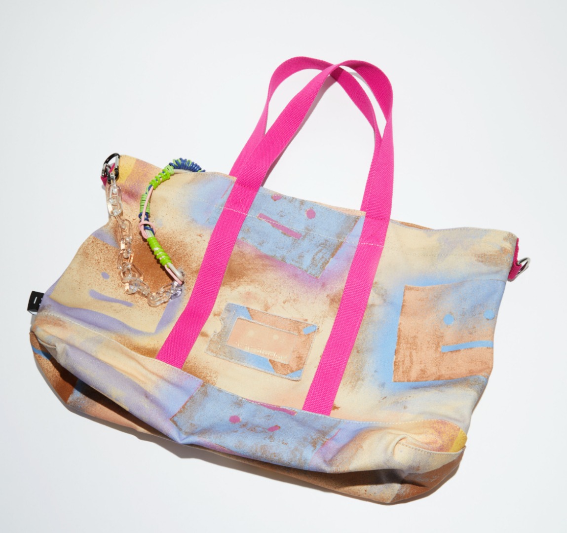 這款帆布托特包飾有滿幅表情徽標印花,側面飾有可拆卸裝飾性混合鏈條和人臉標誌標籤。內袋配有按扣,背面有地址標籤