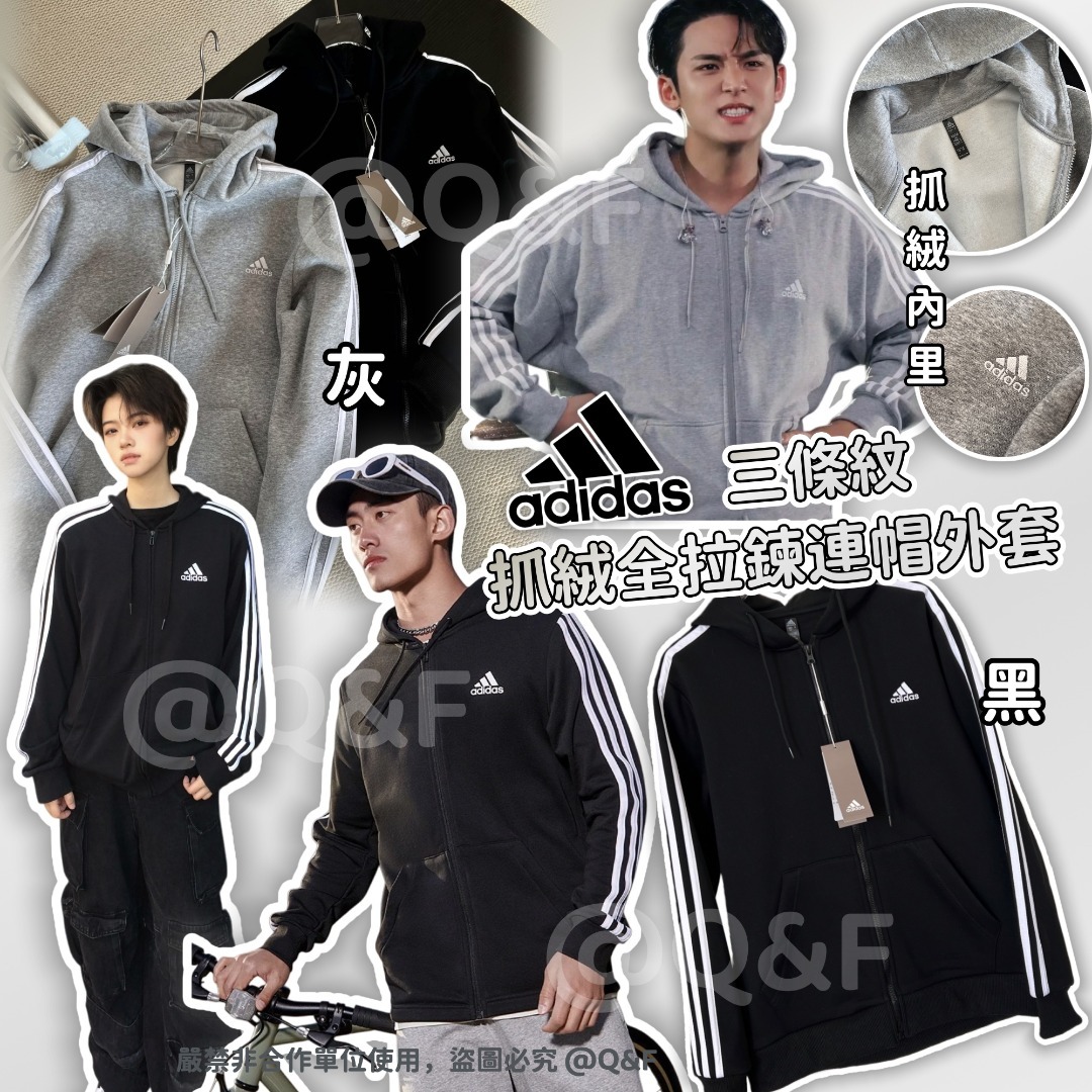 Adidas 三條紋抓絨全拉鍊連帽外套