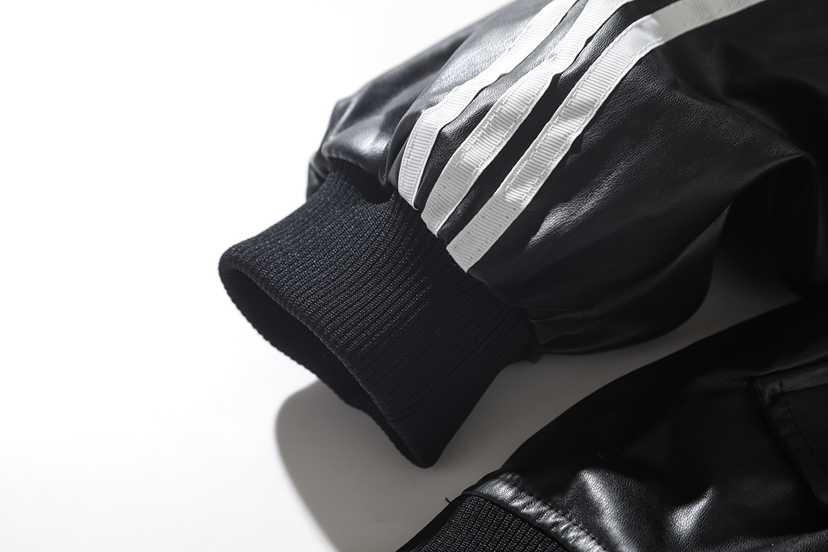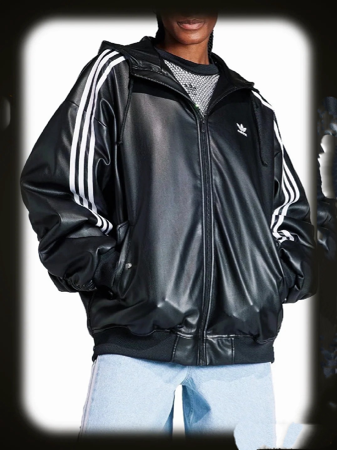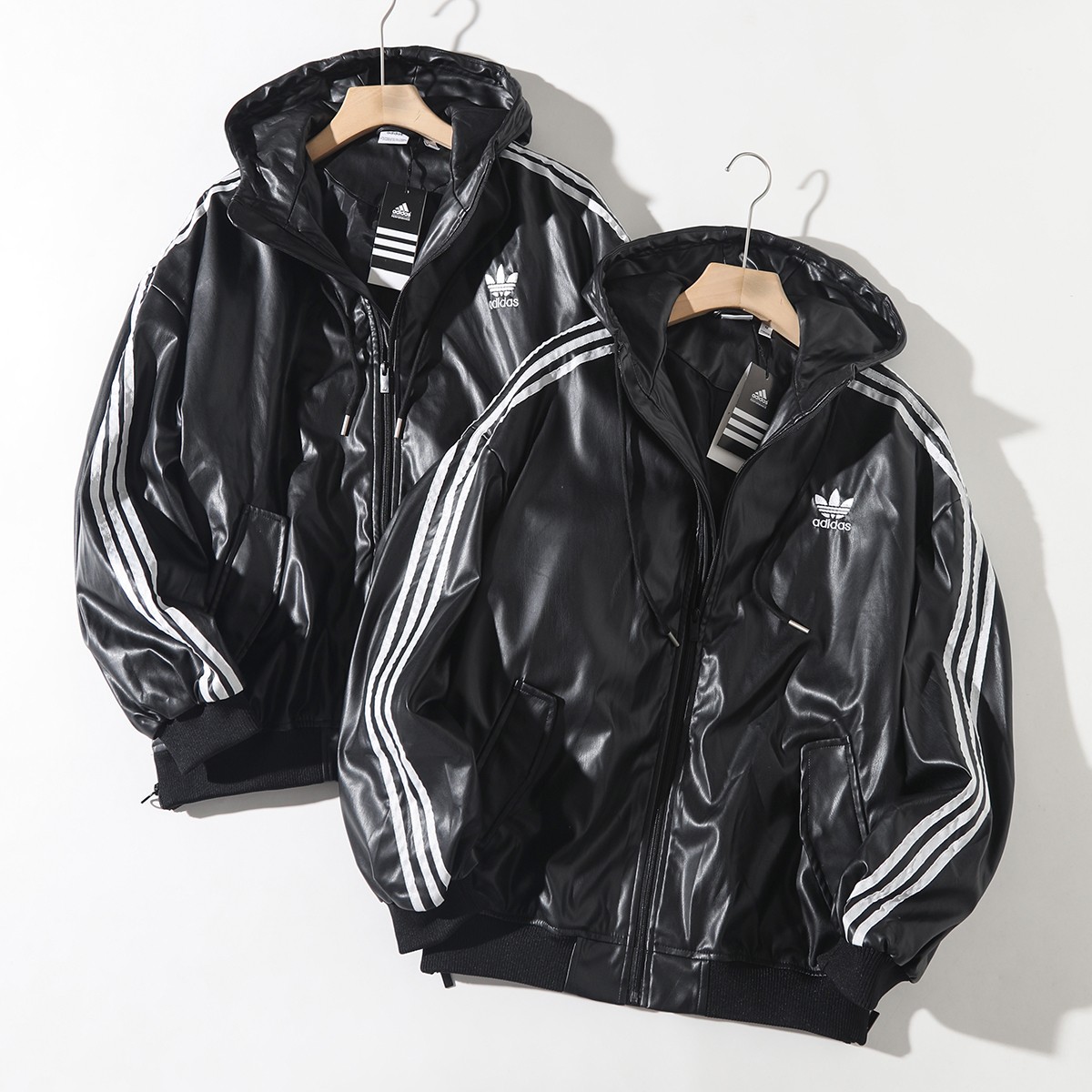 Adidas 復古刺繡logo連帽拉鍊皮衣外套