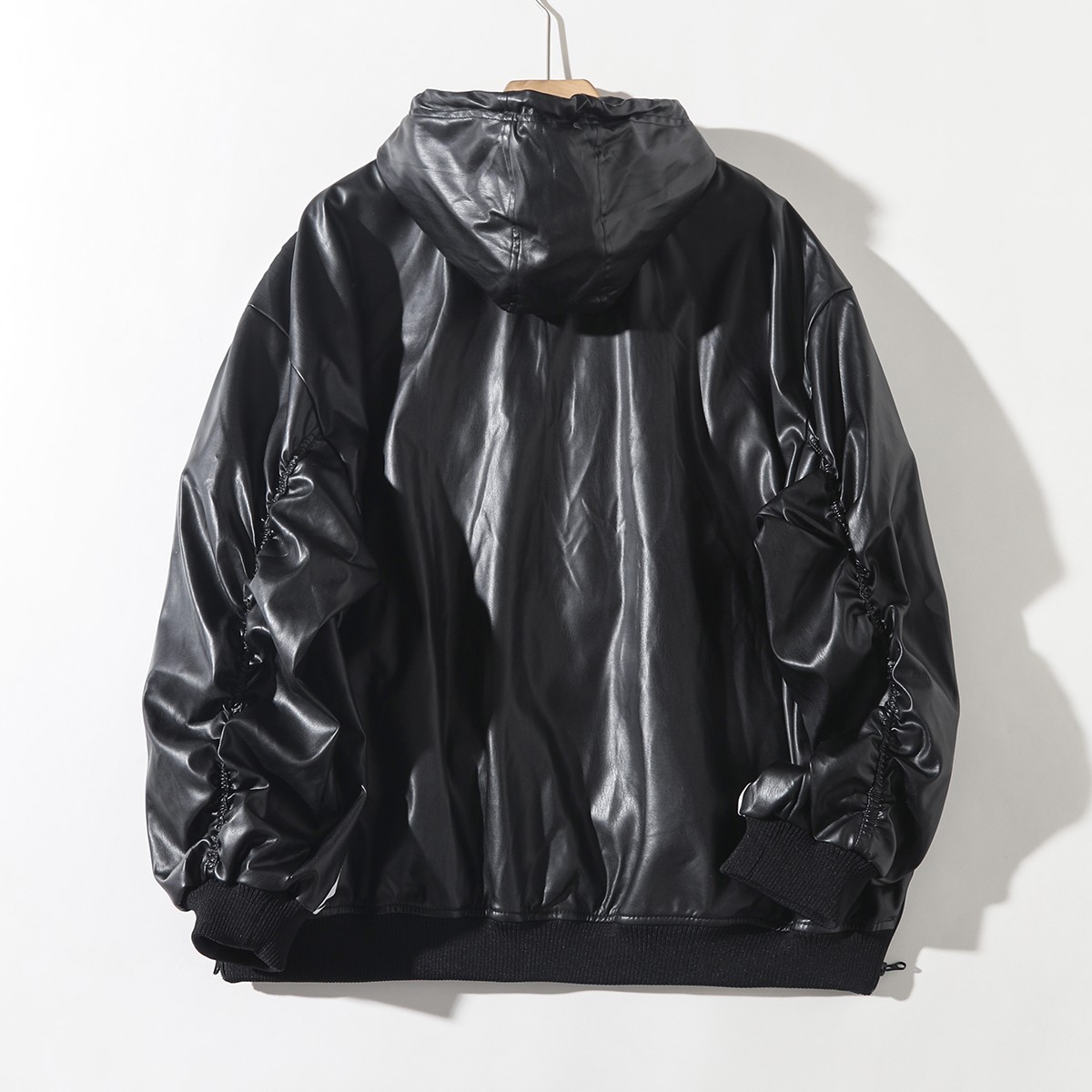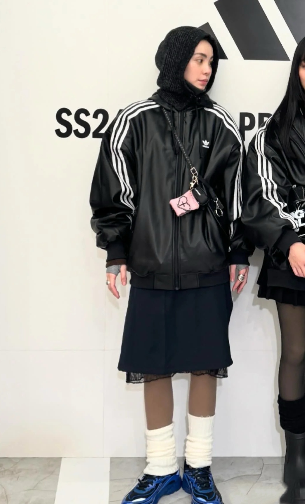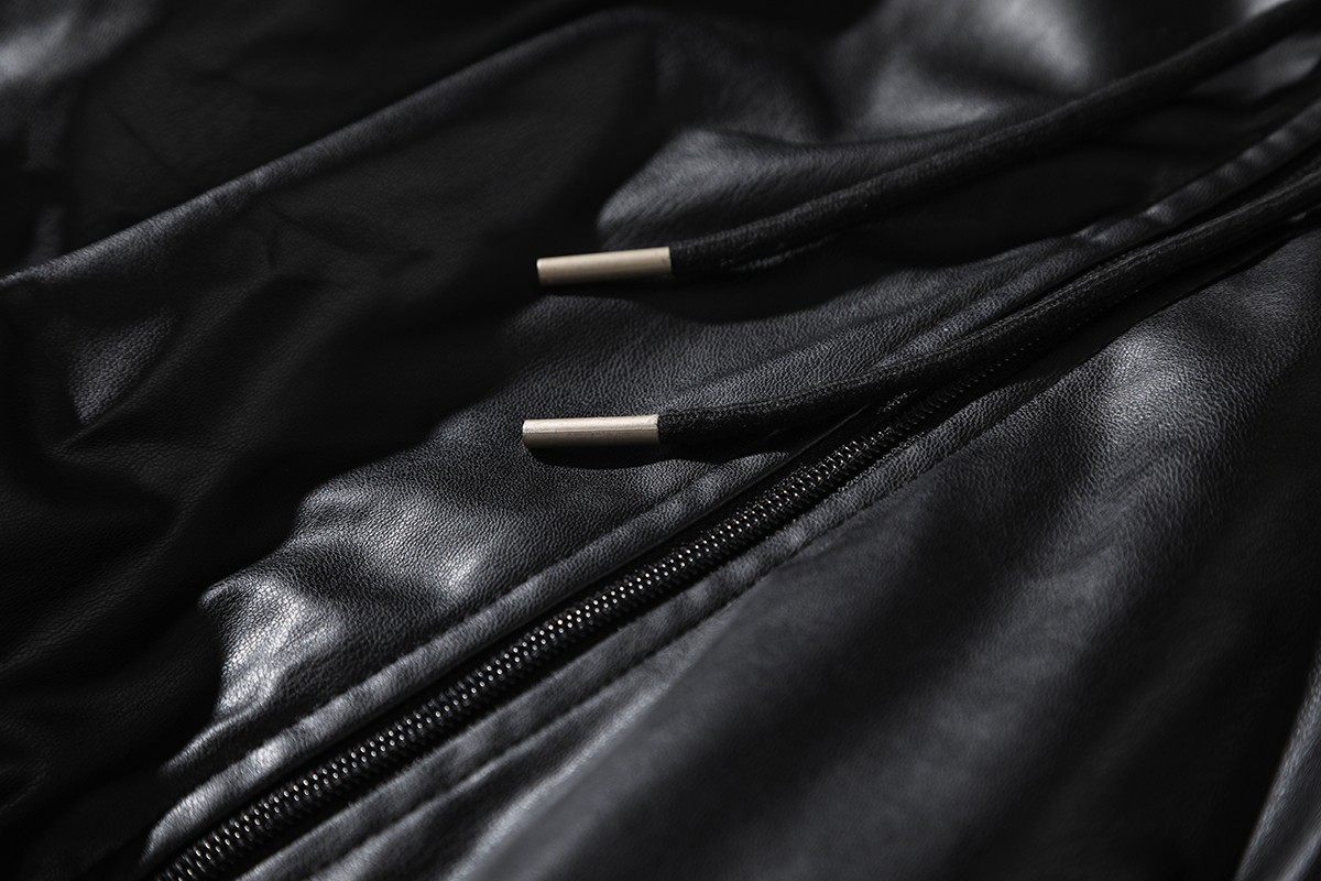Adidas 復古刺繡logo連帽拉鍊皮衣外套