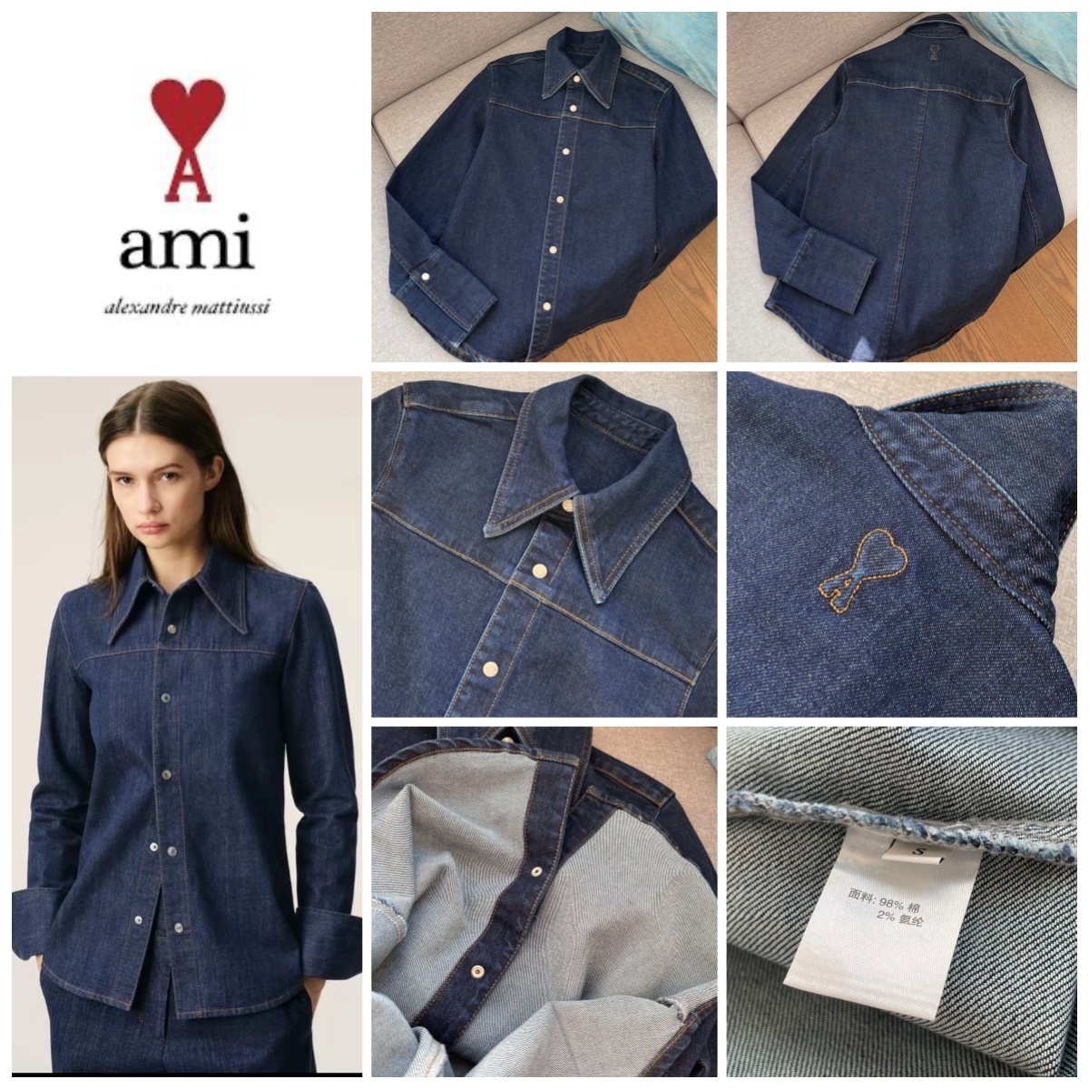Ami 愛心刺繡牛仔恤衫