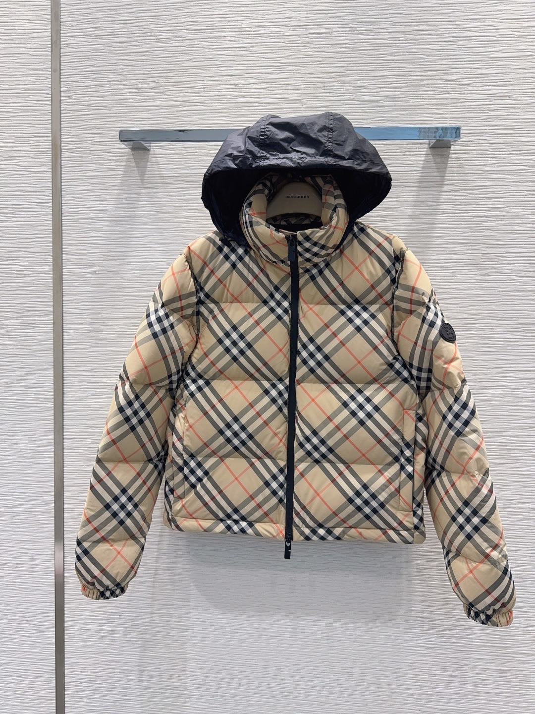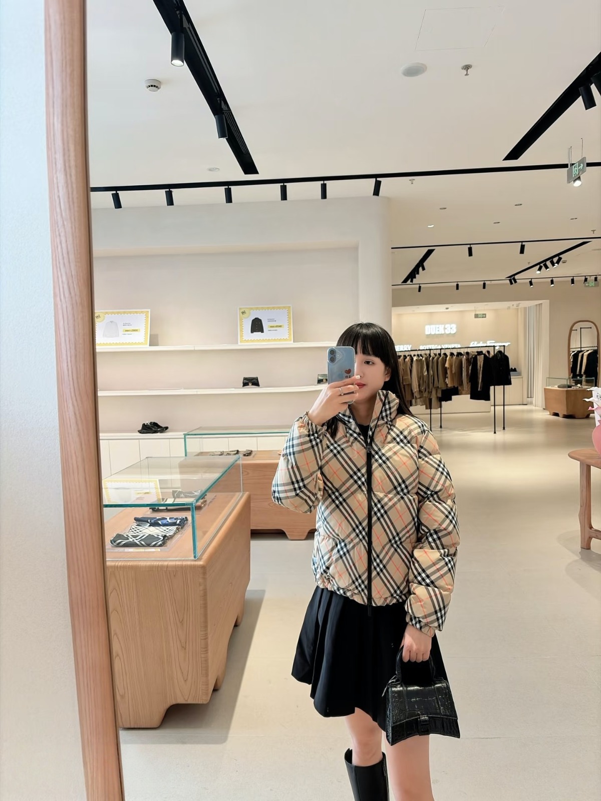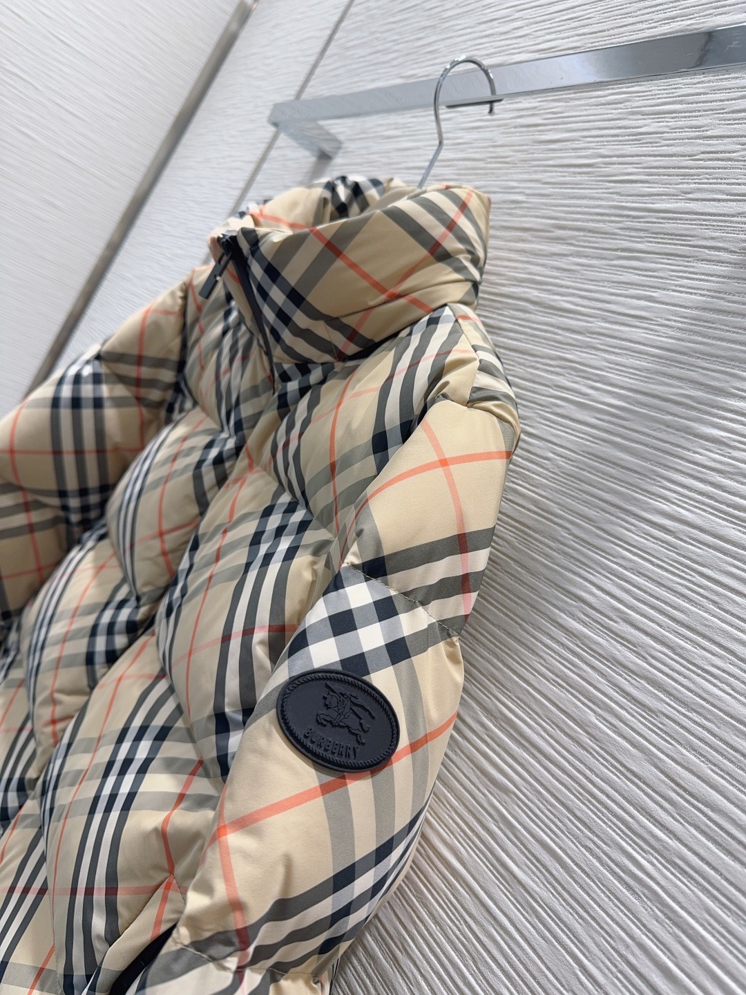標準剪裁羽絨外套🧥✨精紡 Burberry 經典格紋 打造,設有B 字形拉鍊頭🔗收納式連帽設計,綴飾戰馬騎士貼花,此為源自 1980 年代的典藏圖案🤍無論日常通勤還是假日出遊,都能輕鬆穿出優雅比例,絕對是冬季短款羽絨外套的經典之作❄️🌟
