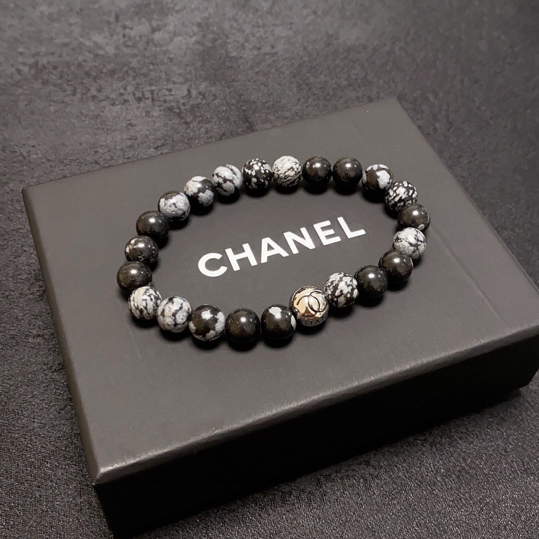 CHANEL 字母CC 天然雪花紋瑪瑙珠子手鍊