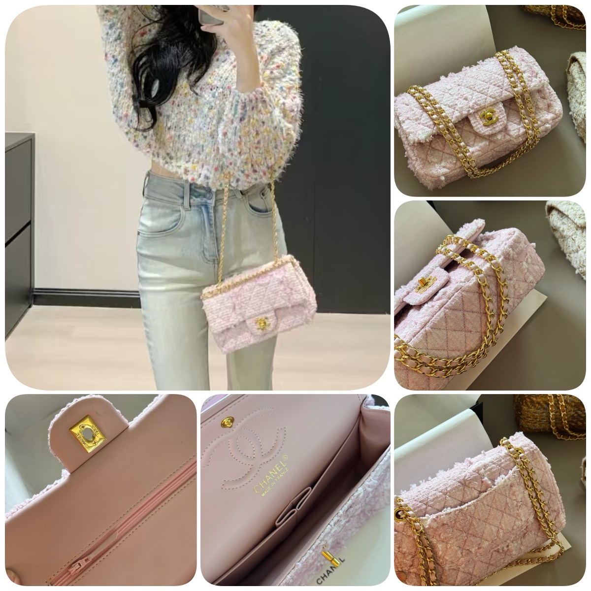 CHANEL 粗線毛呢手袋 連禮盒