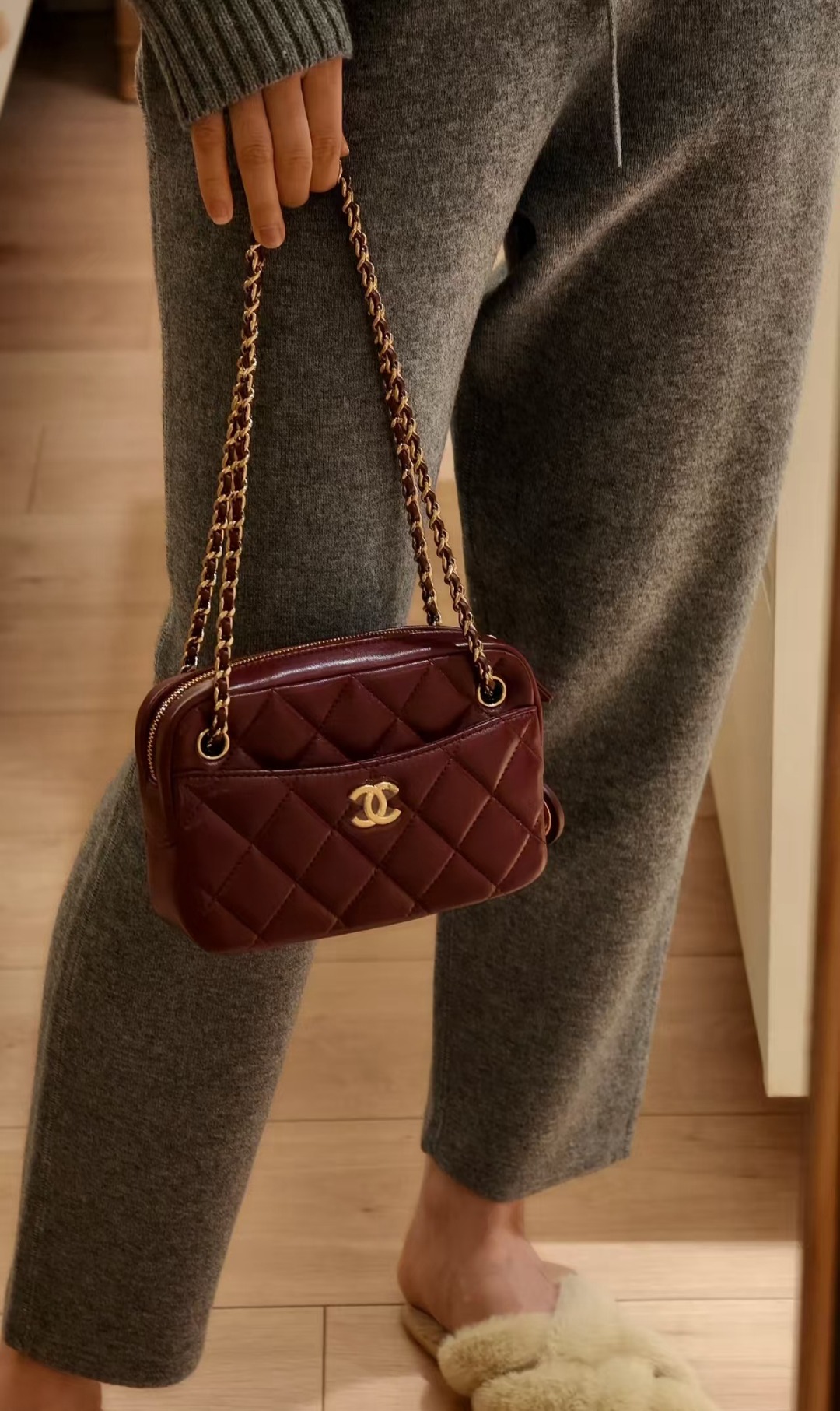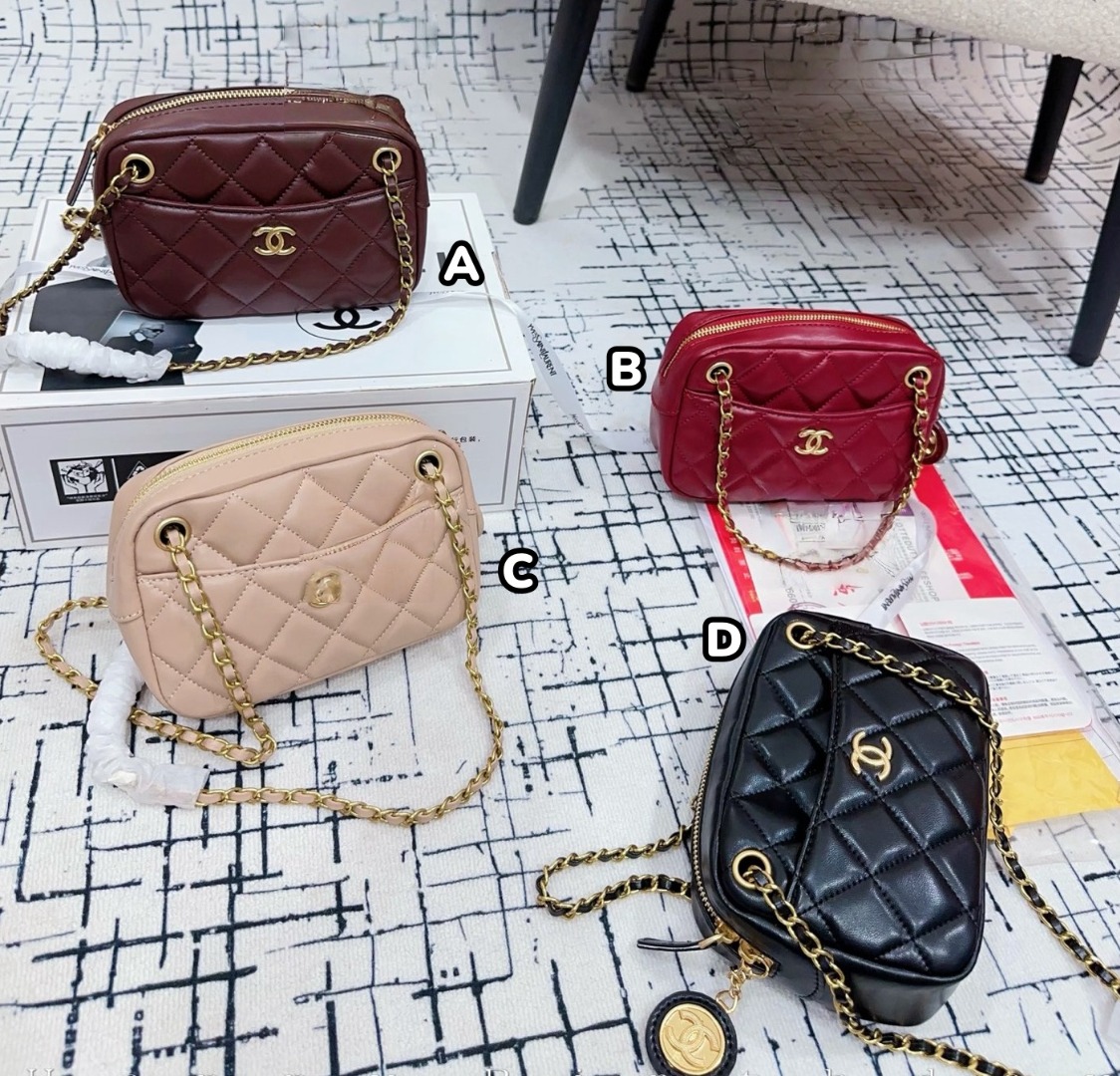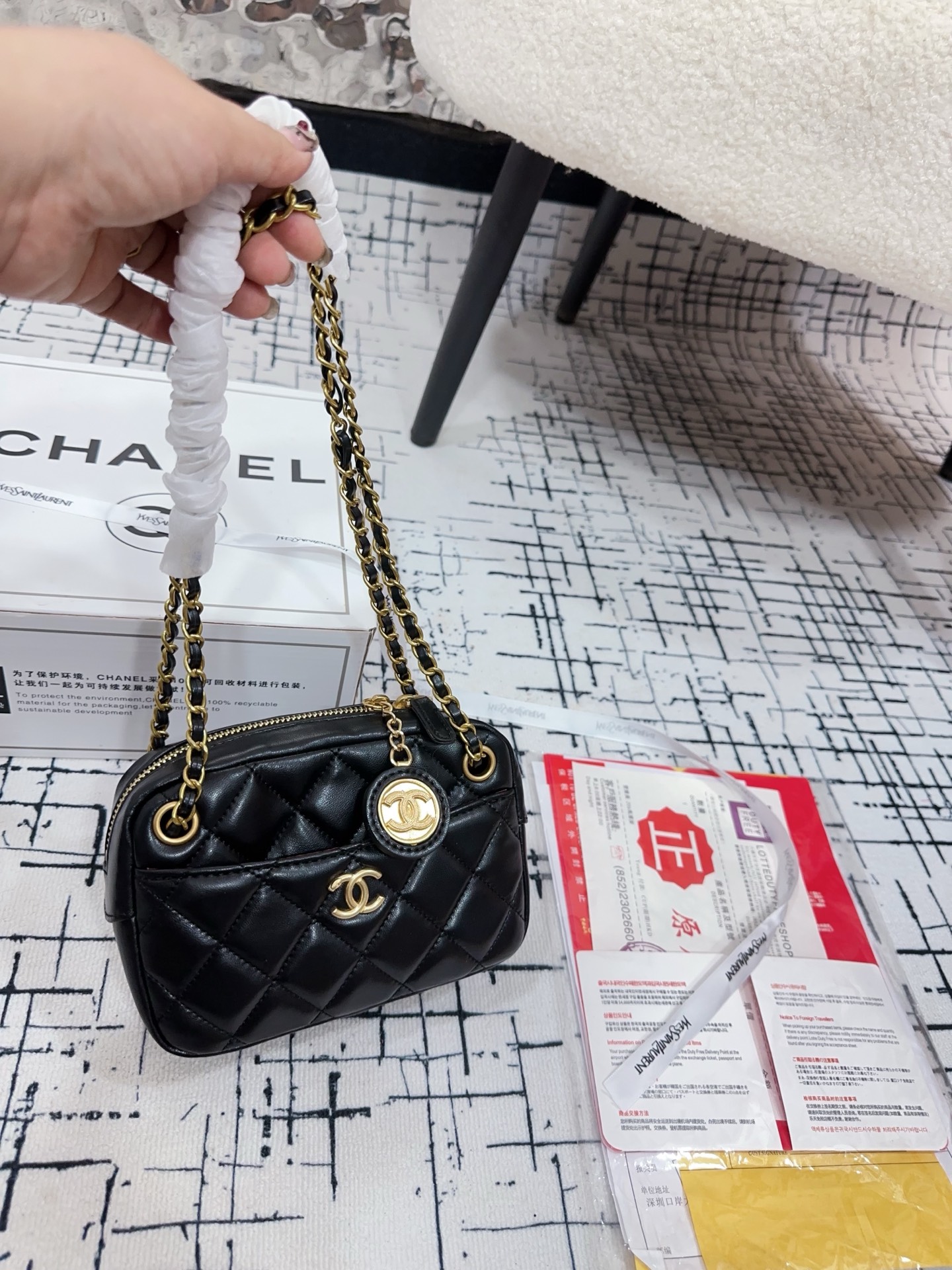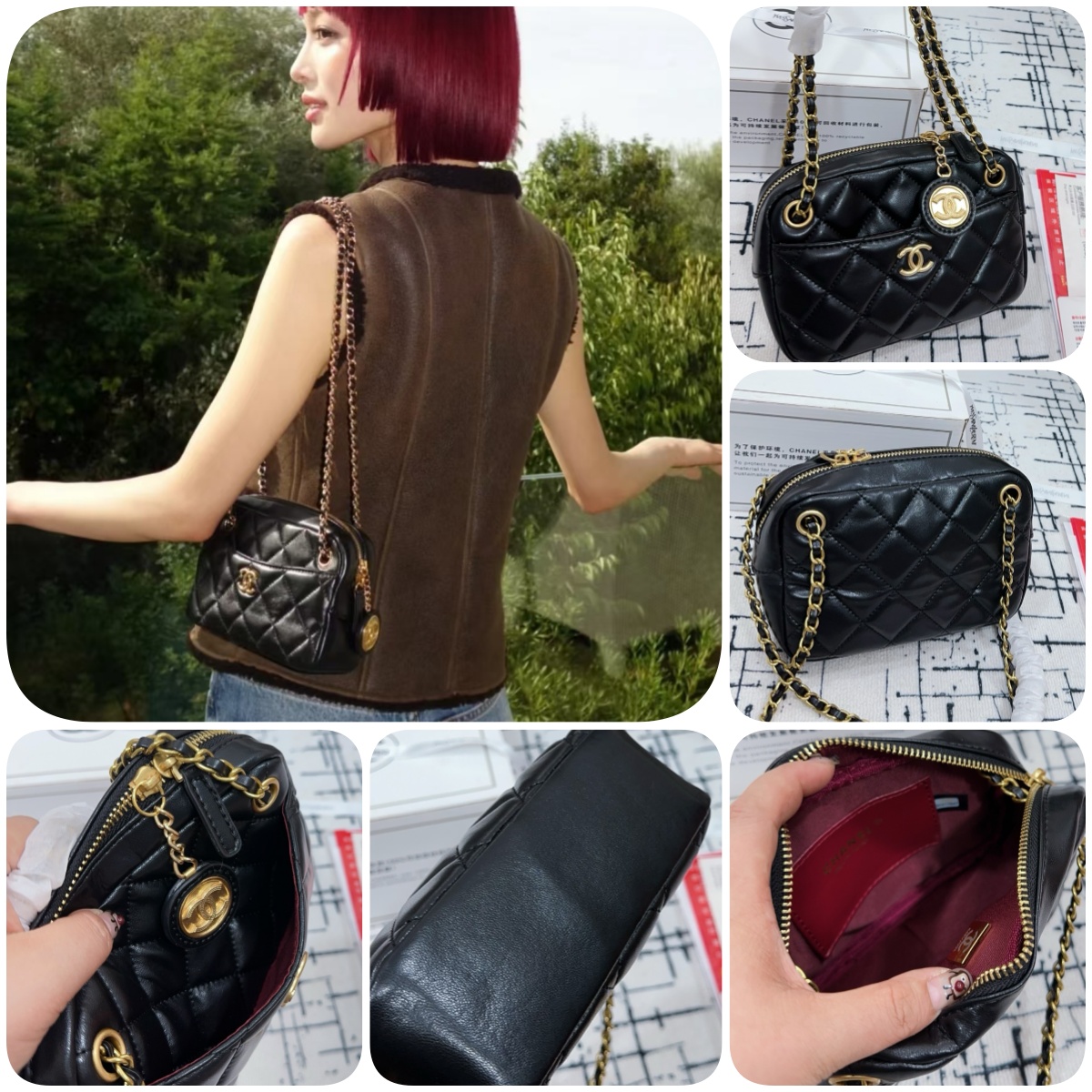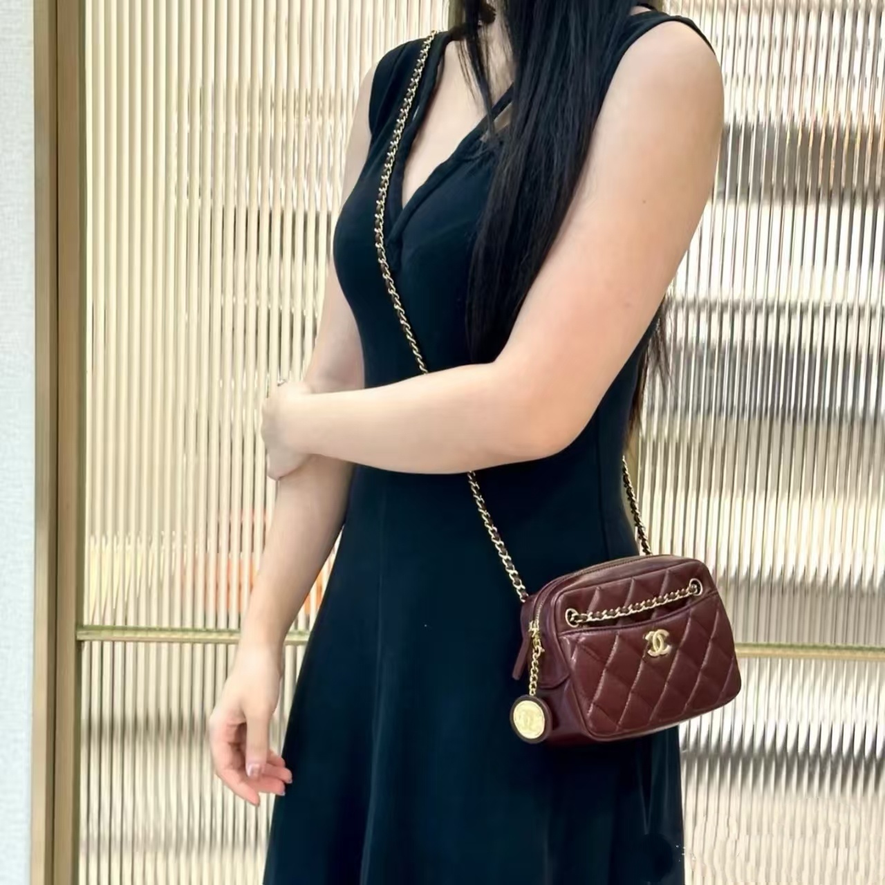 誰能拒絕這顆金幣相機包啊😆經典菱格紋,  永不過時的優雅,鏈條長度可調節。斜背單肩都好看,日常出街完全夠用