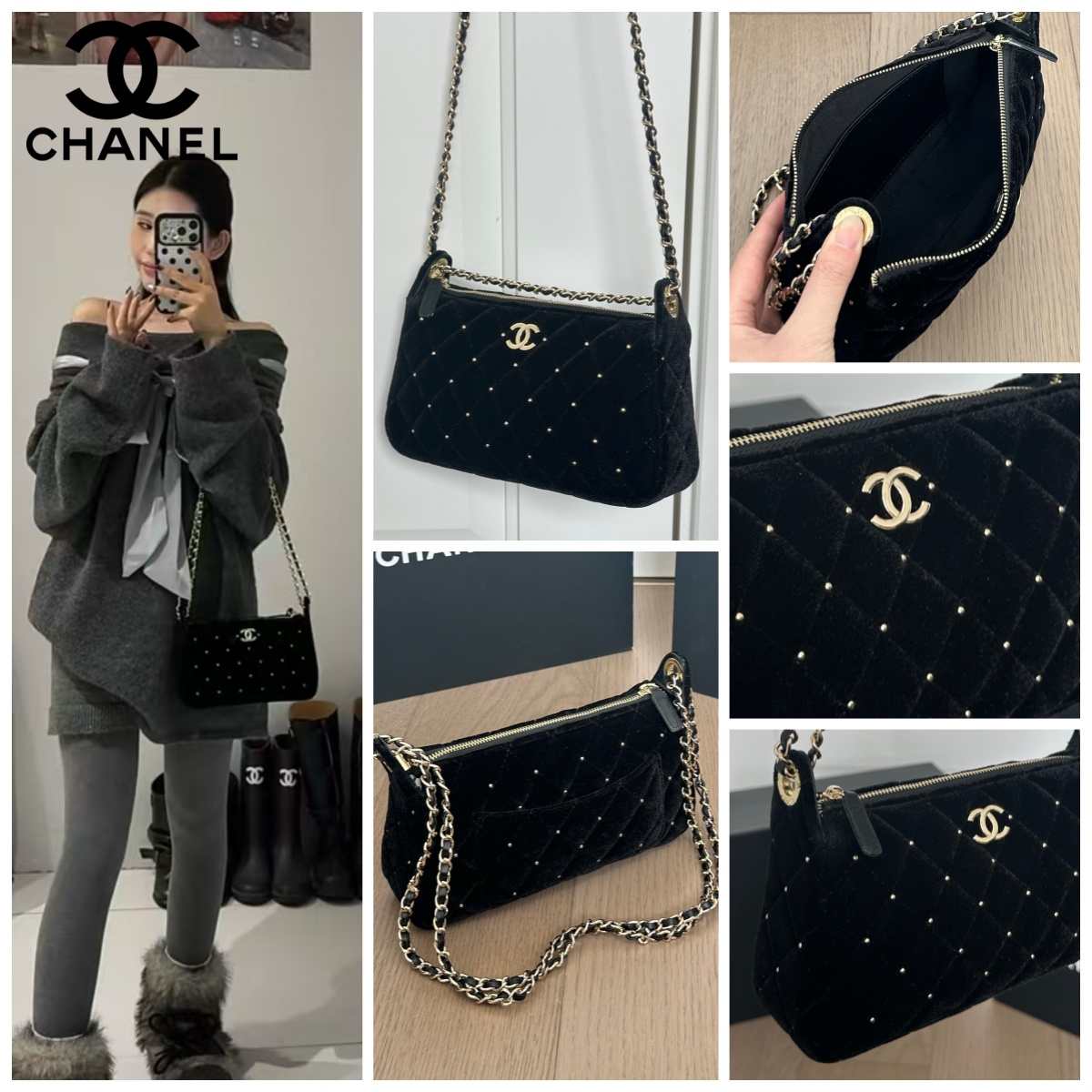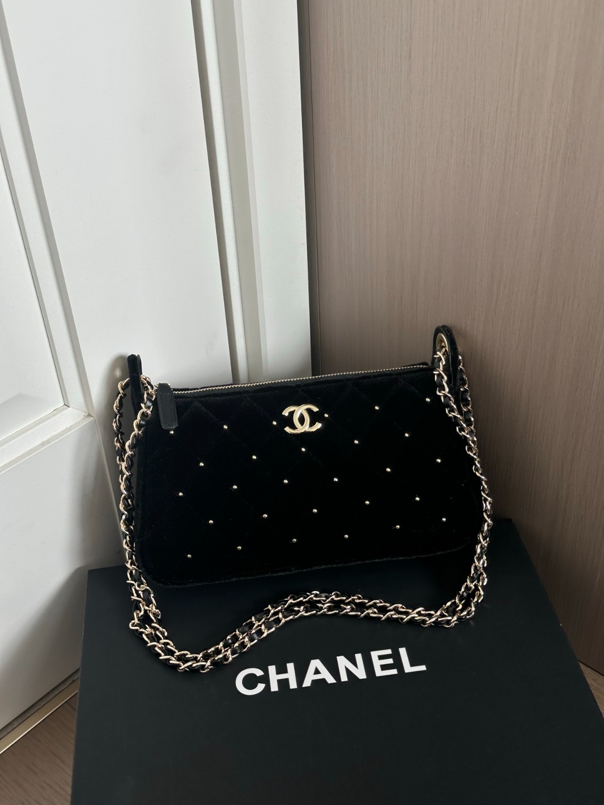 CHANEL 25𝙆 黑絲絨麻將包 - 禮盒包裝