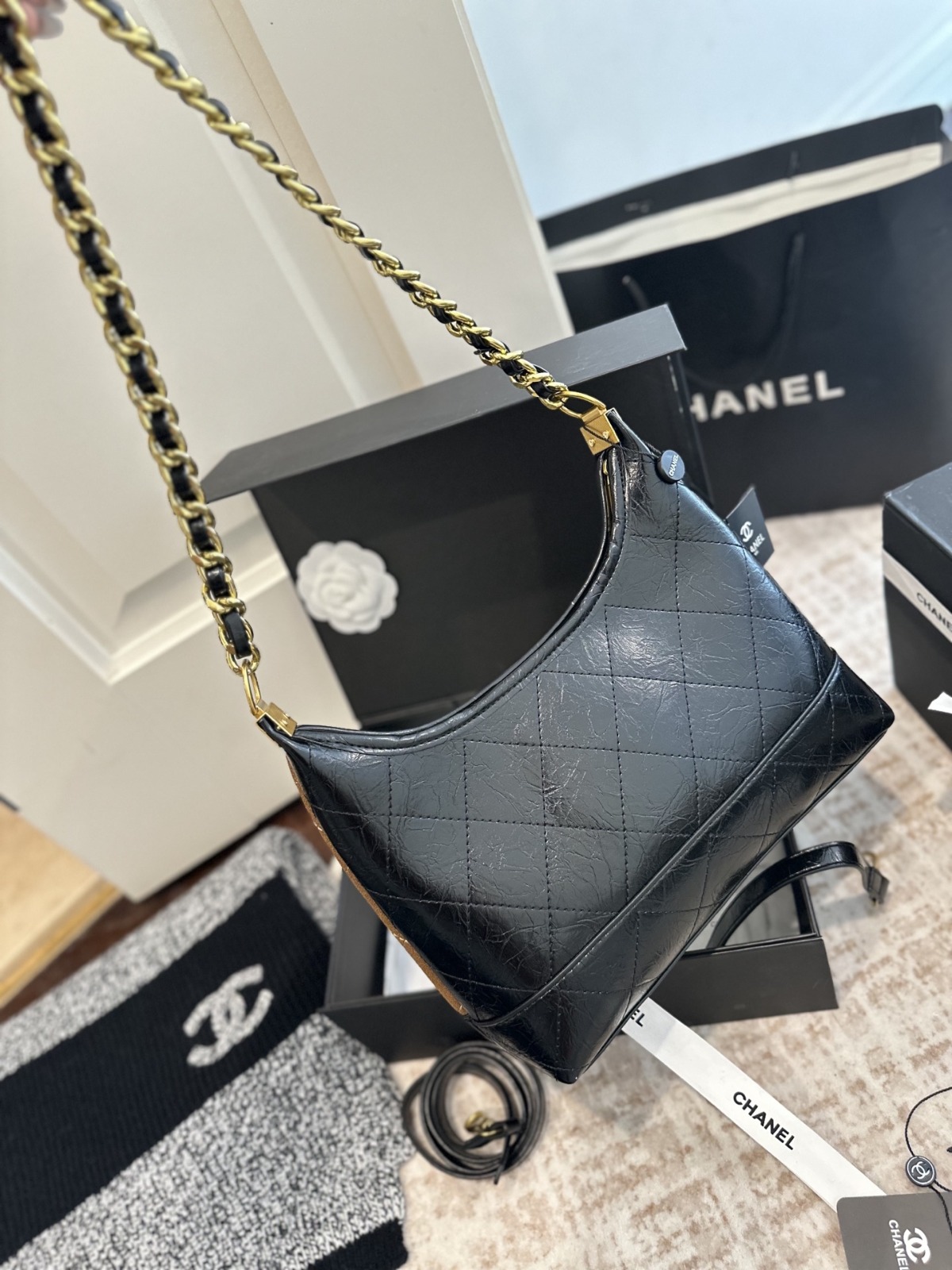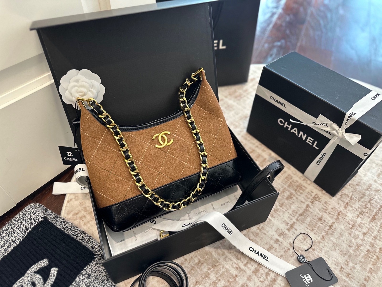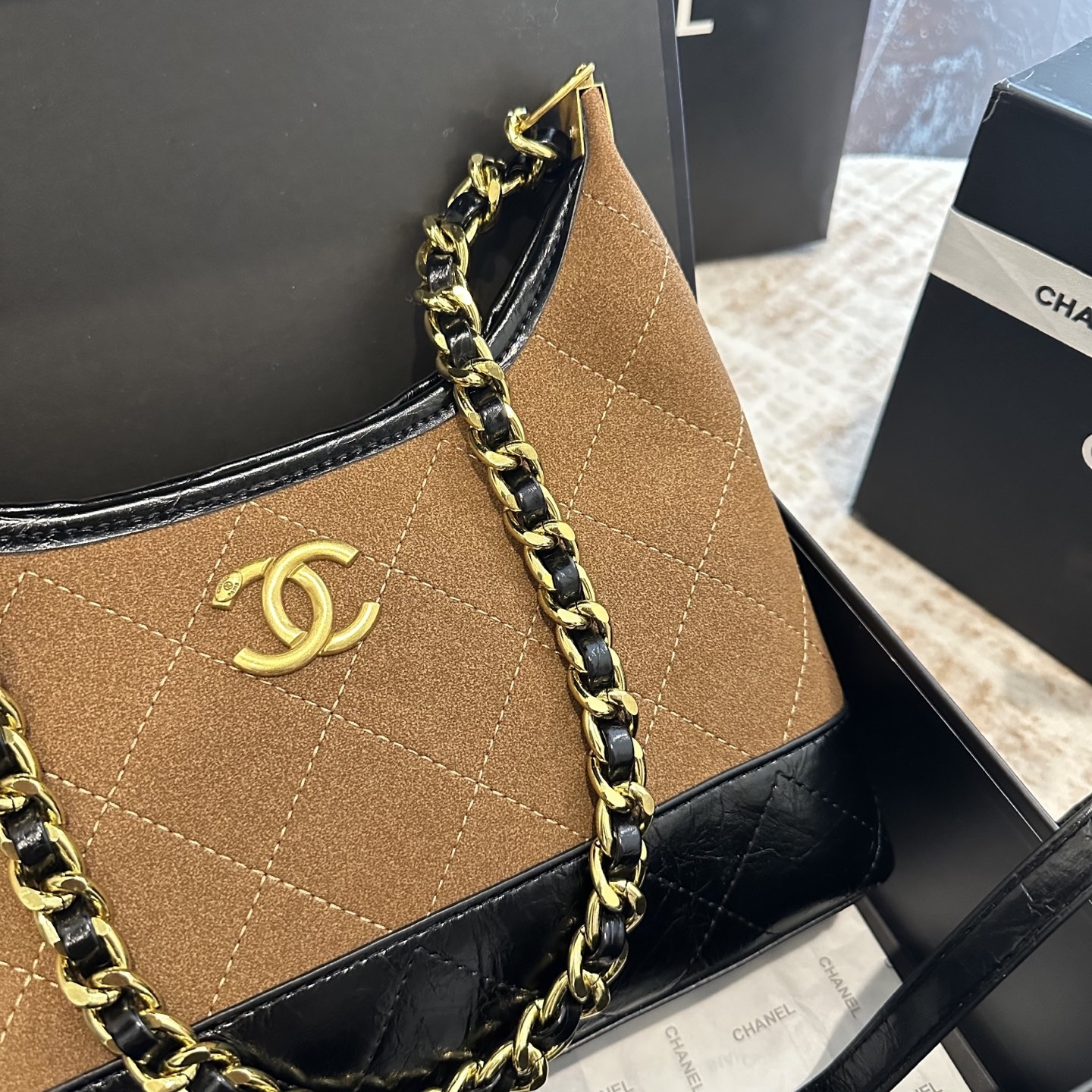 CHANEL Hobo 粗鏈條腋下包 連禮盒