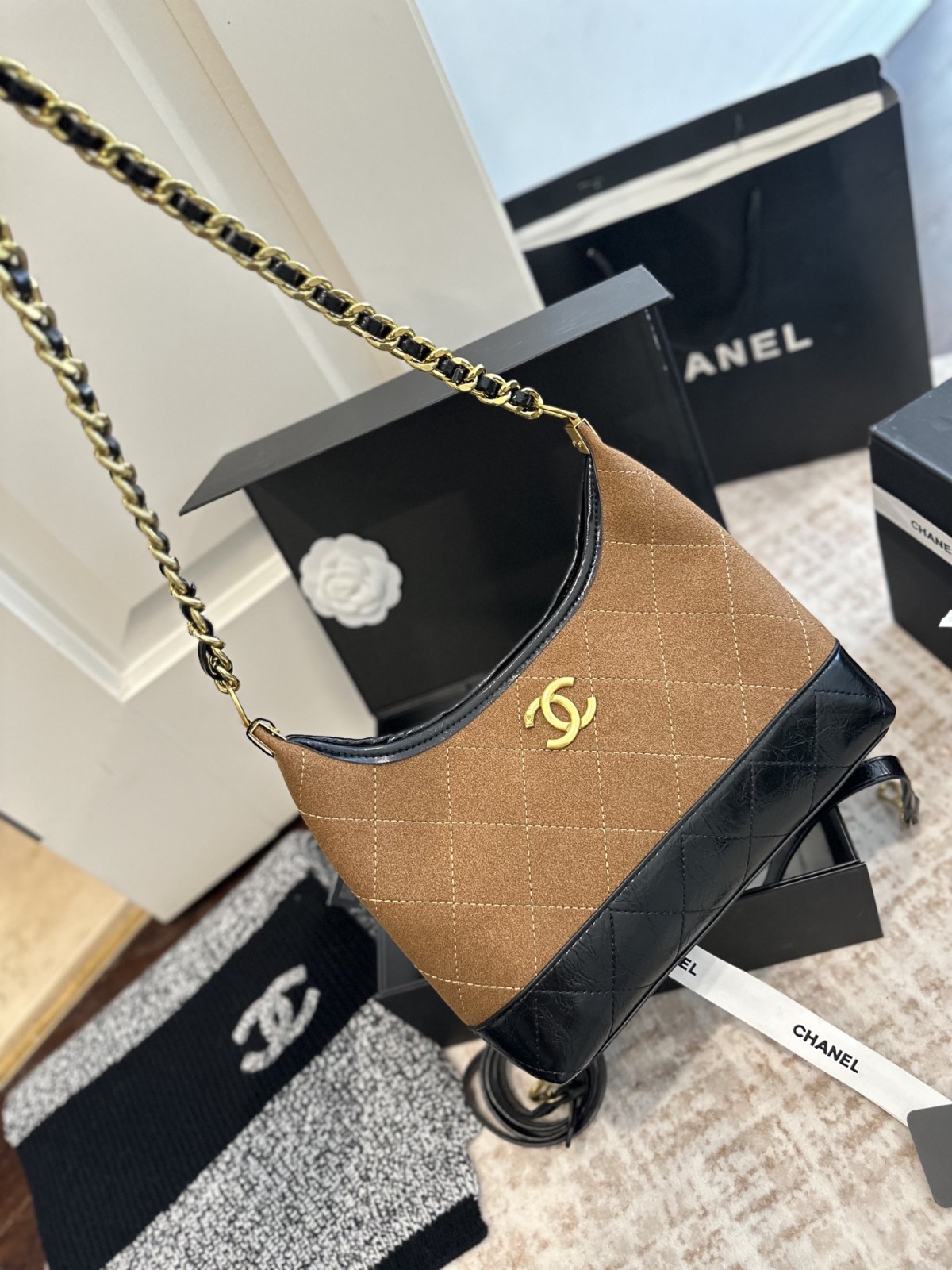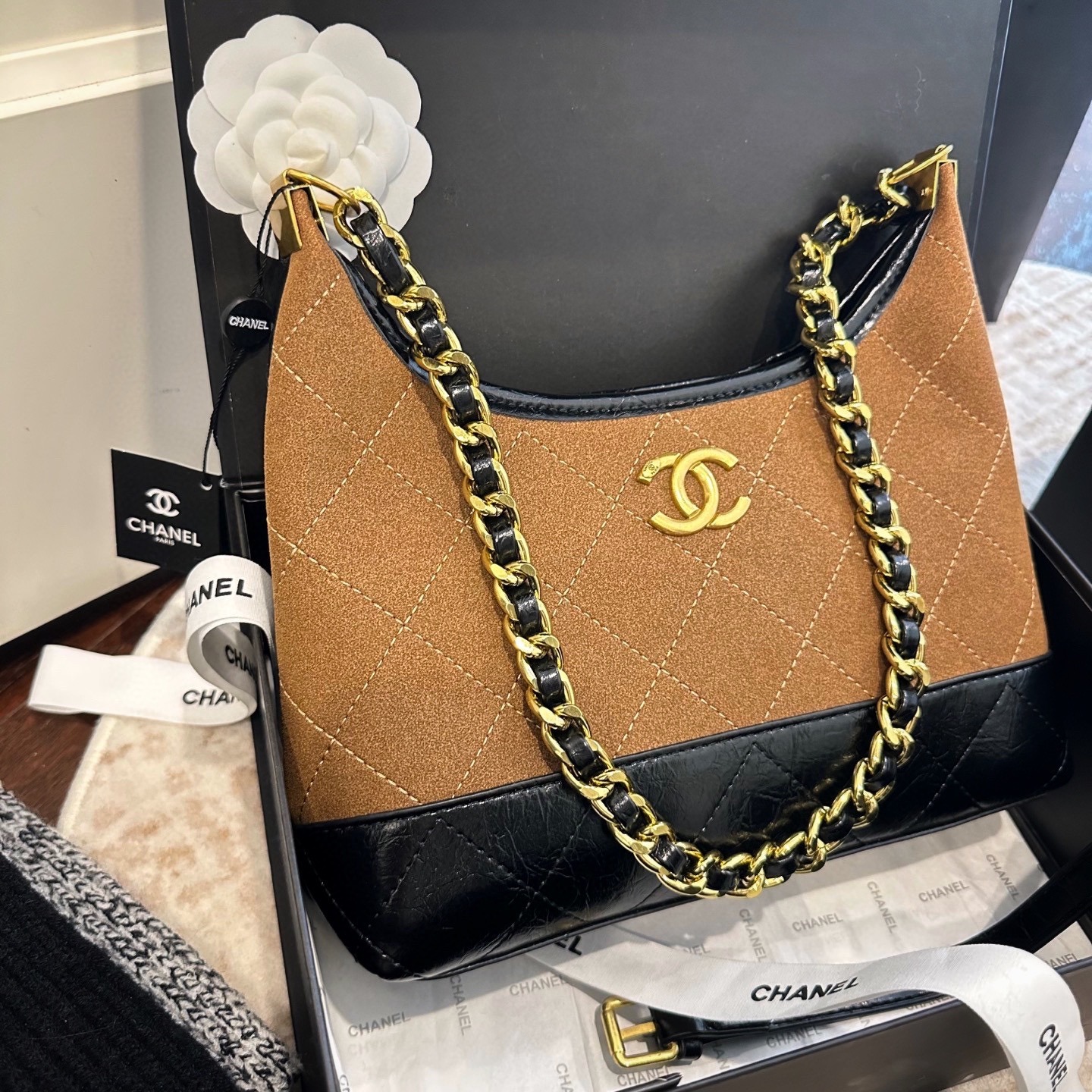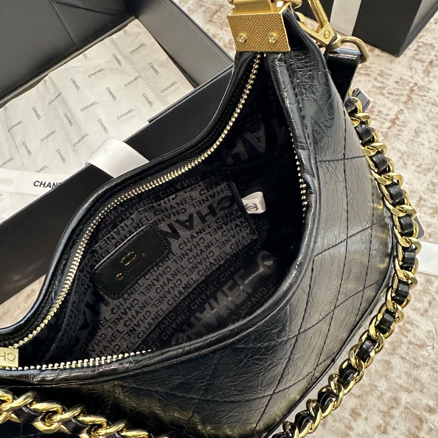 CHANEL Hobo 粗鏈條腋下包 連禮盒