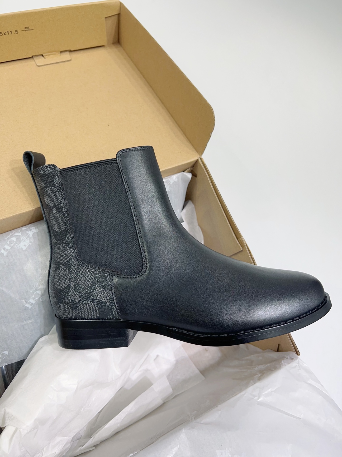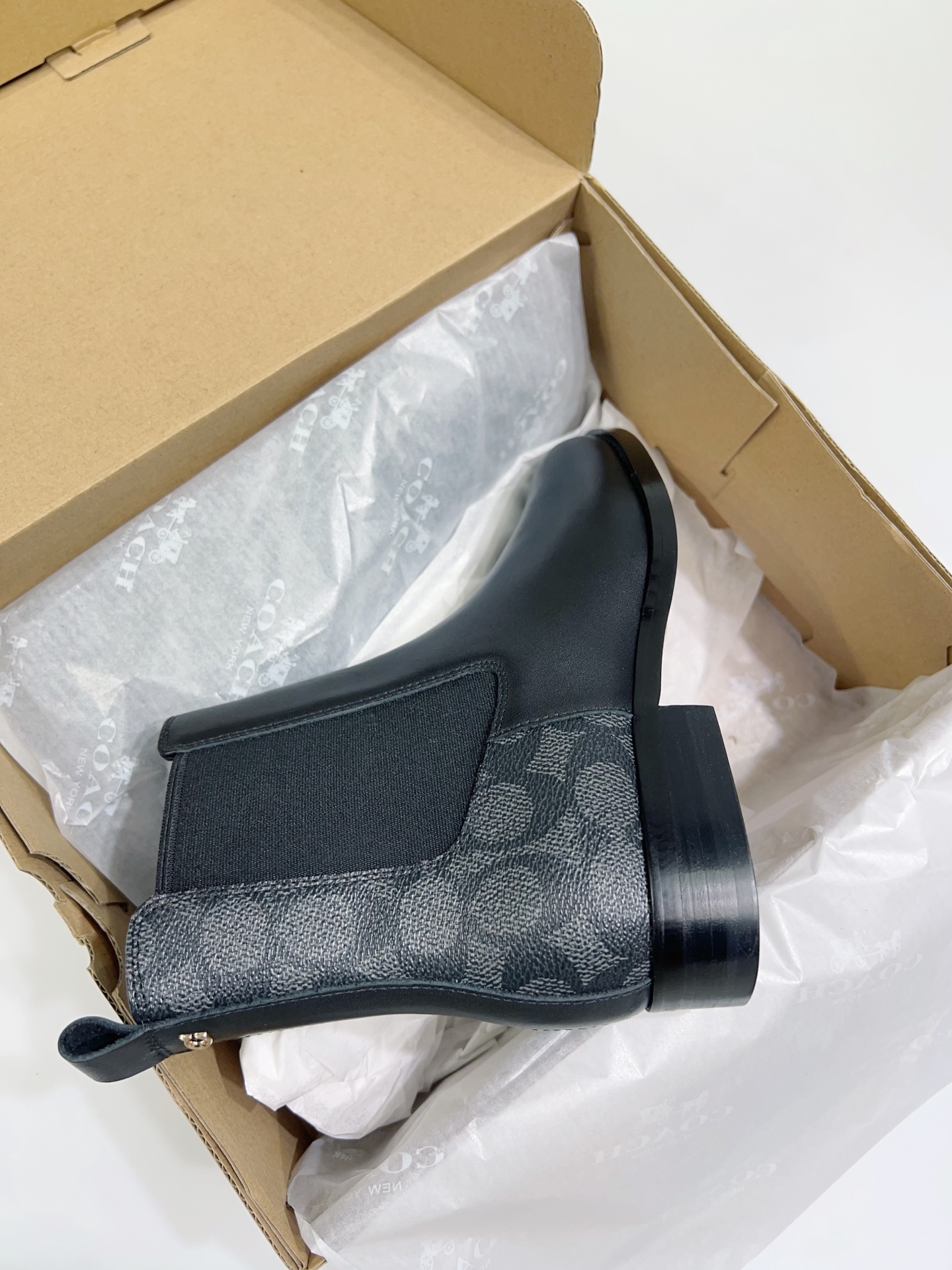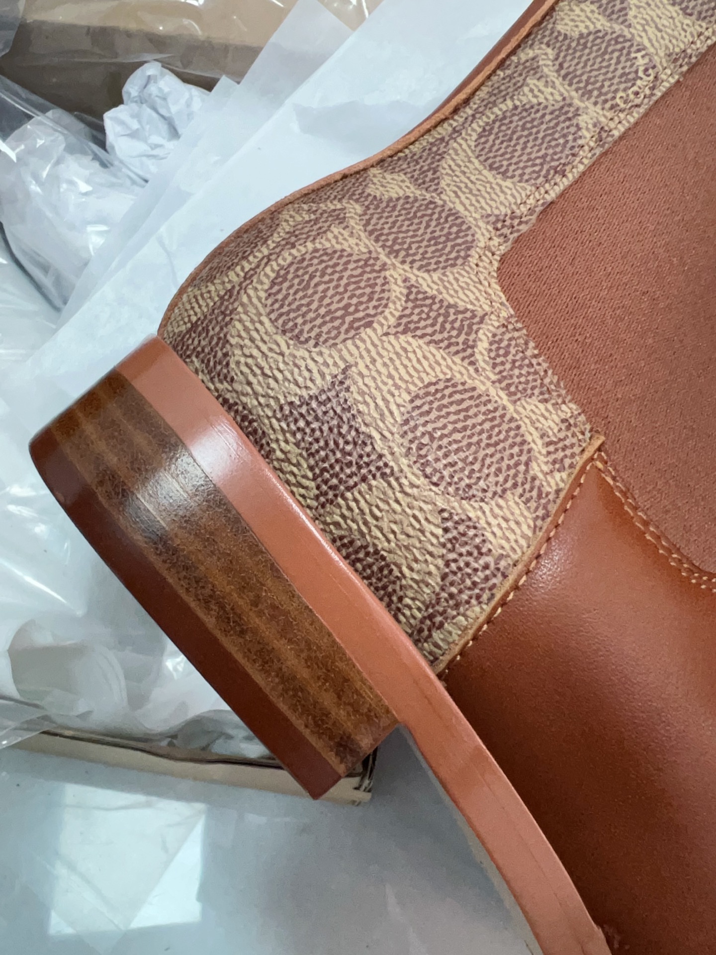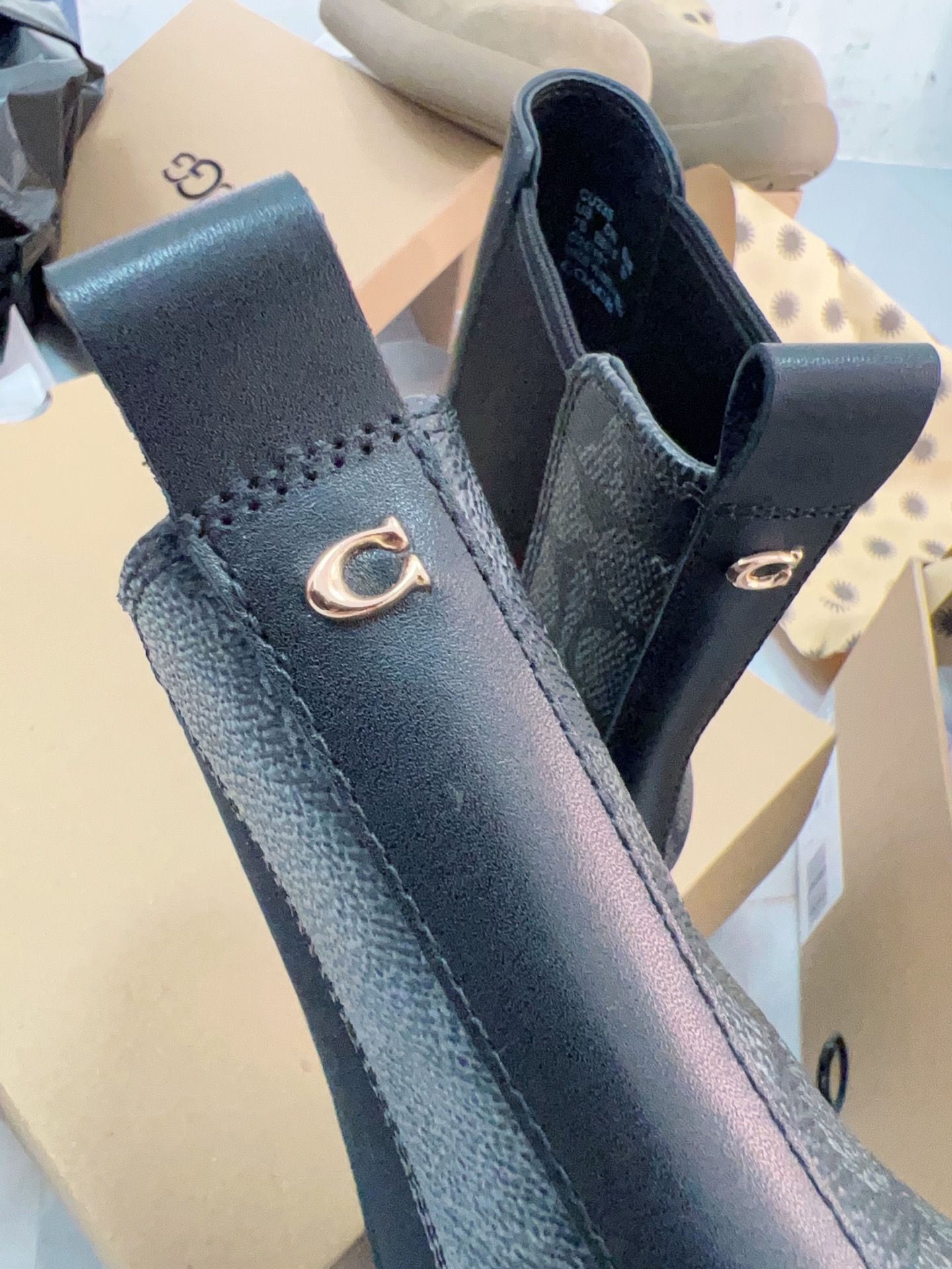 C字PVC面料拼頭層牛皮面經典獨特,高端定制橡膠大底,大底成本非常貴,粗跟厚底舒適.上腳有一種高級的輕奢感覺,可搭配各種風格。時尚必備款