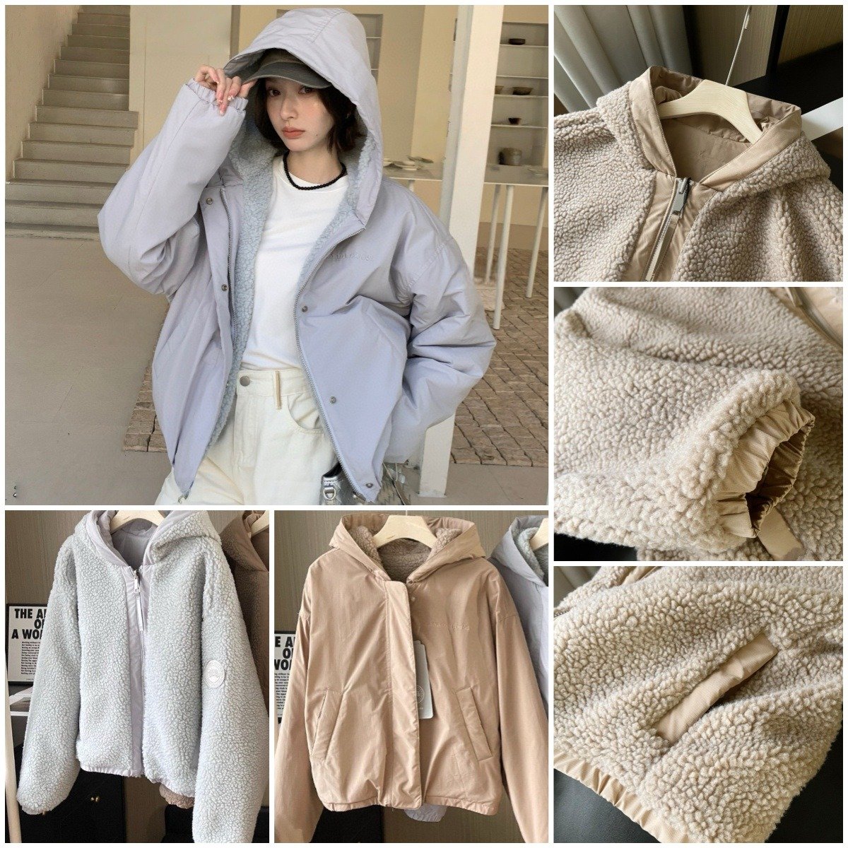 Canada Goose 短款雙面穿羊羔毛連帽拉鍊外套 一件兩用