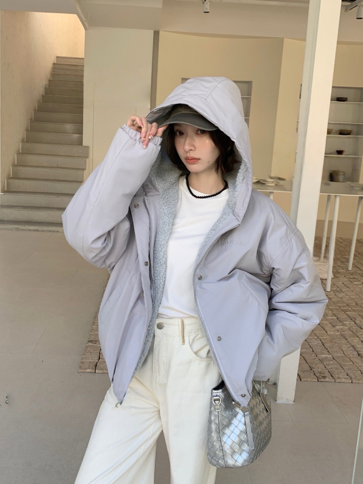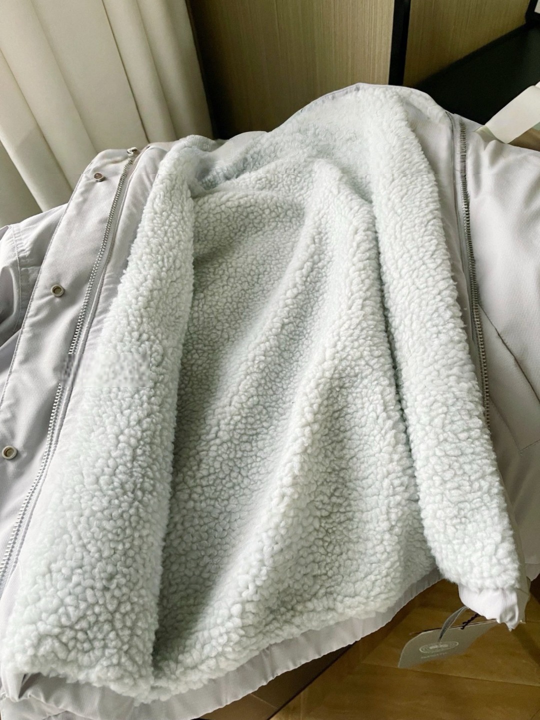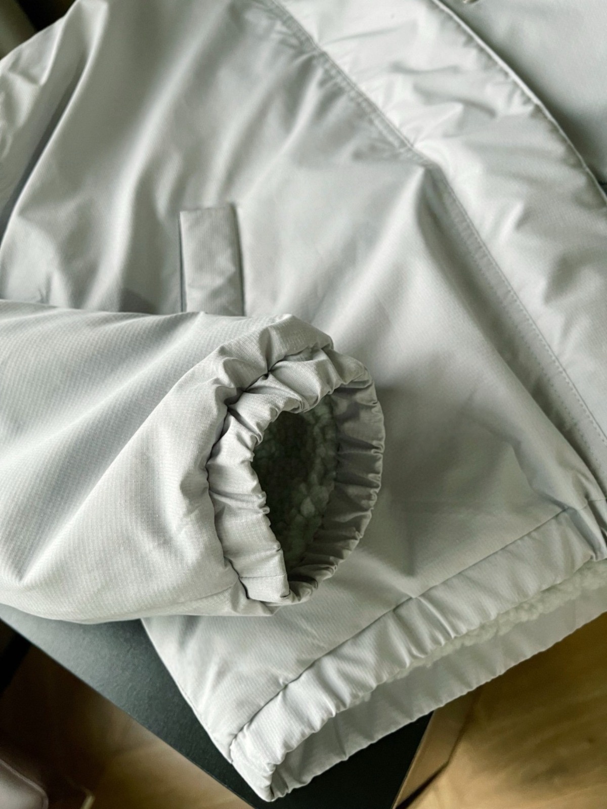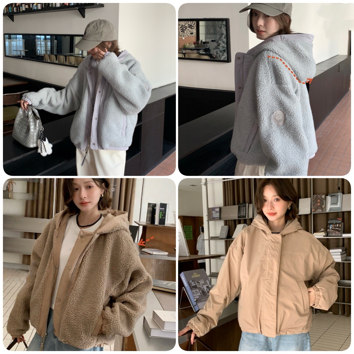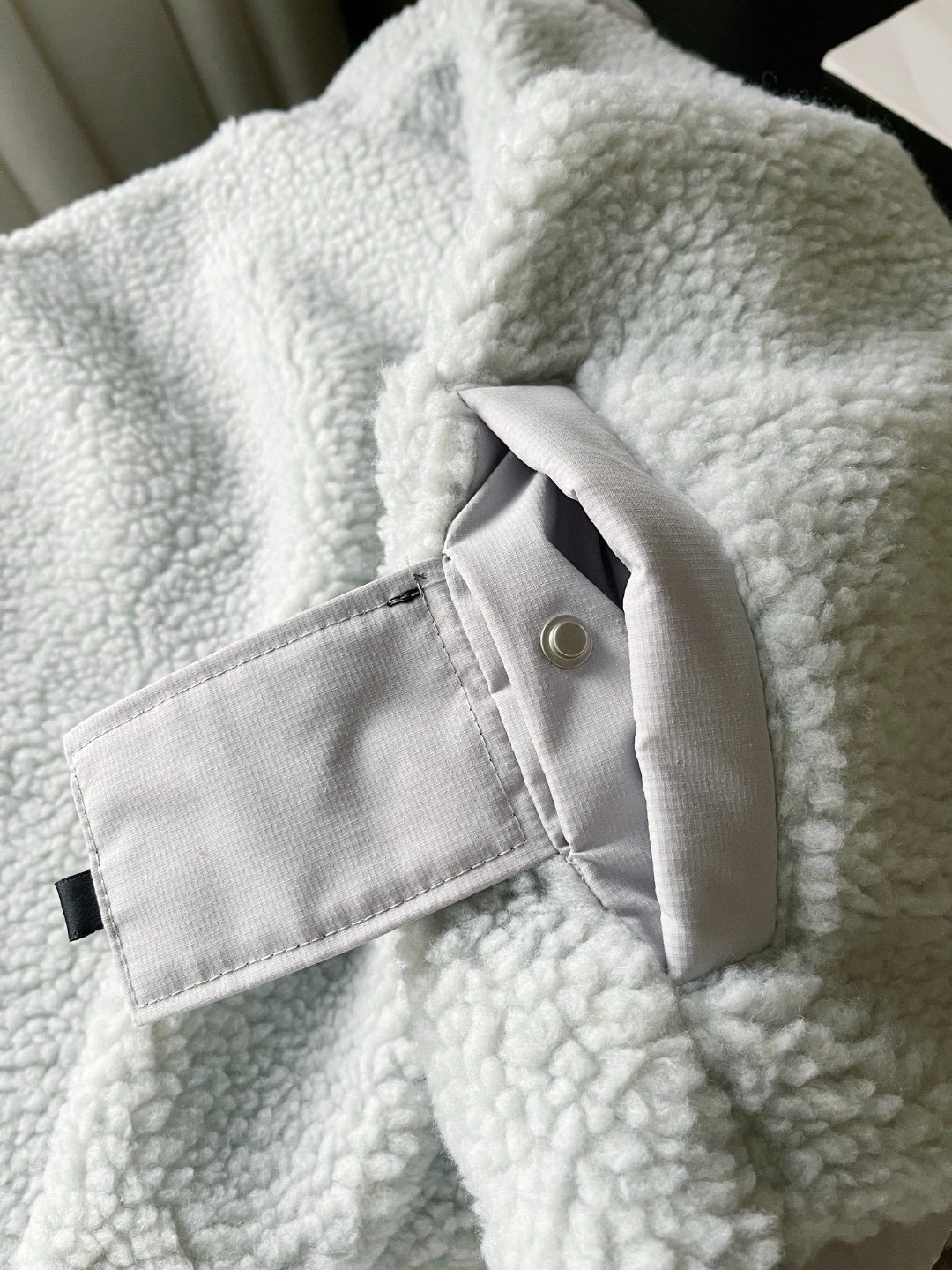 這款夾克具備雙面穿功能,正面為防風梭織面料,內里則為加厚綿密的羊羔毛,提供卓越的保暖性和防風效果