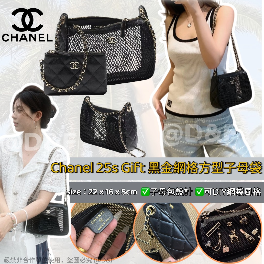 🏷️經典CC淺金色鏈條⛓️ 非常有氣質,漁網🕸️肌理令時尚度🚀up🆙
