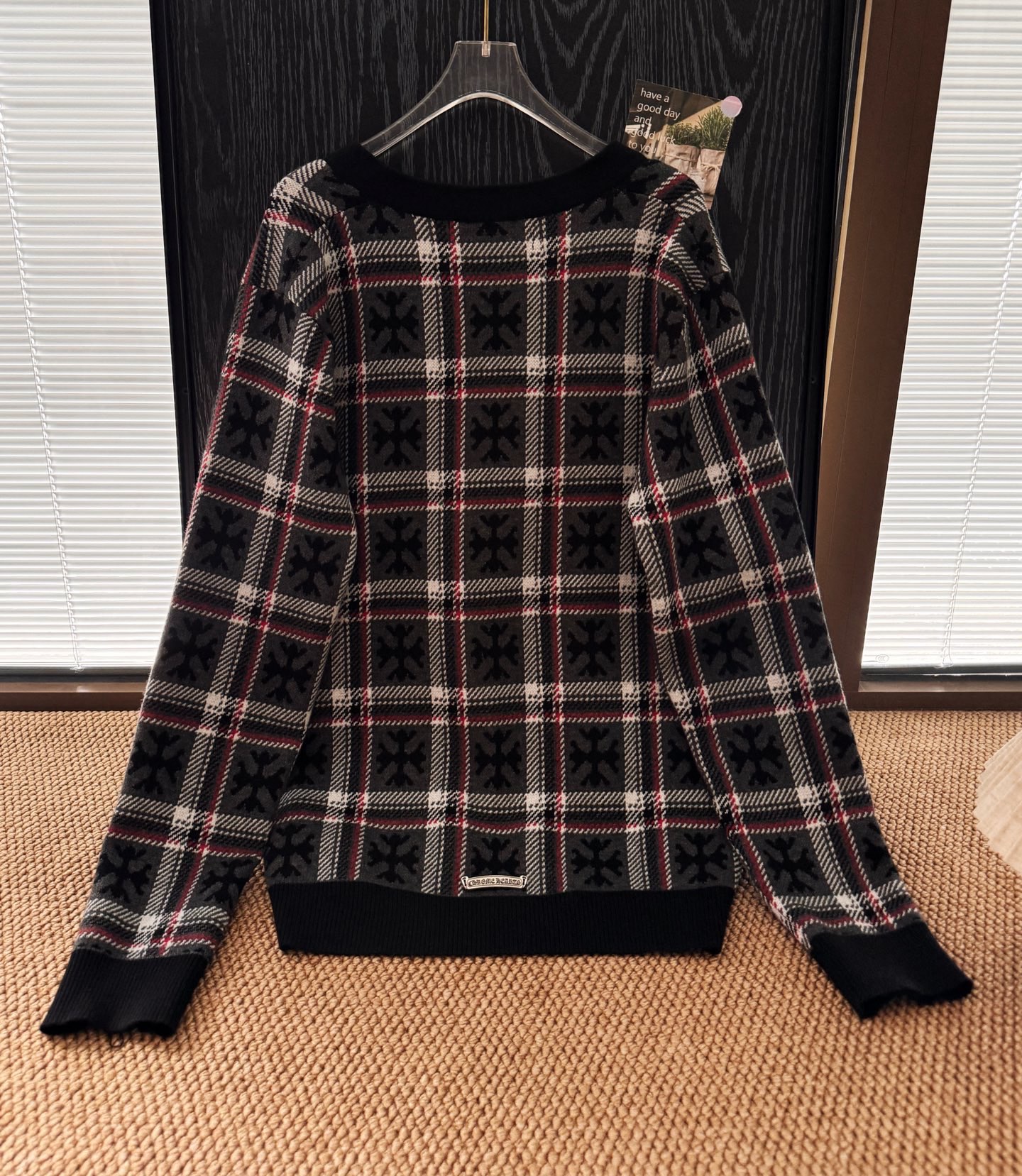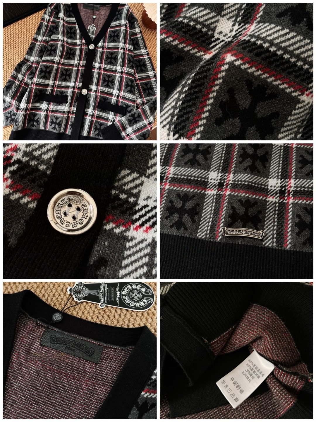 Chrome Hearts 十字架格紋皮牌羊毛開襟冷衫