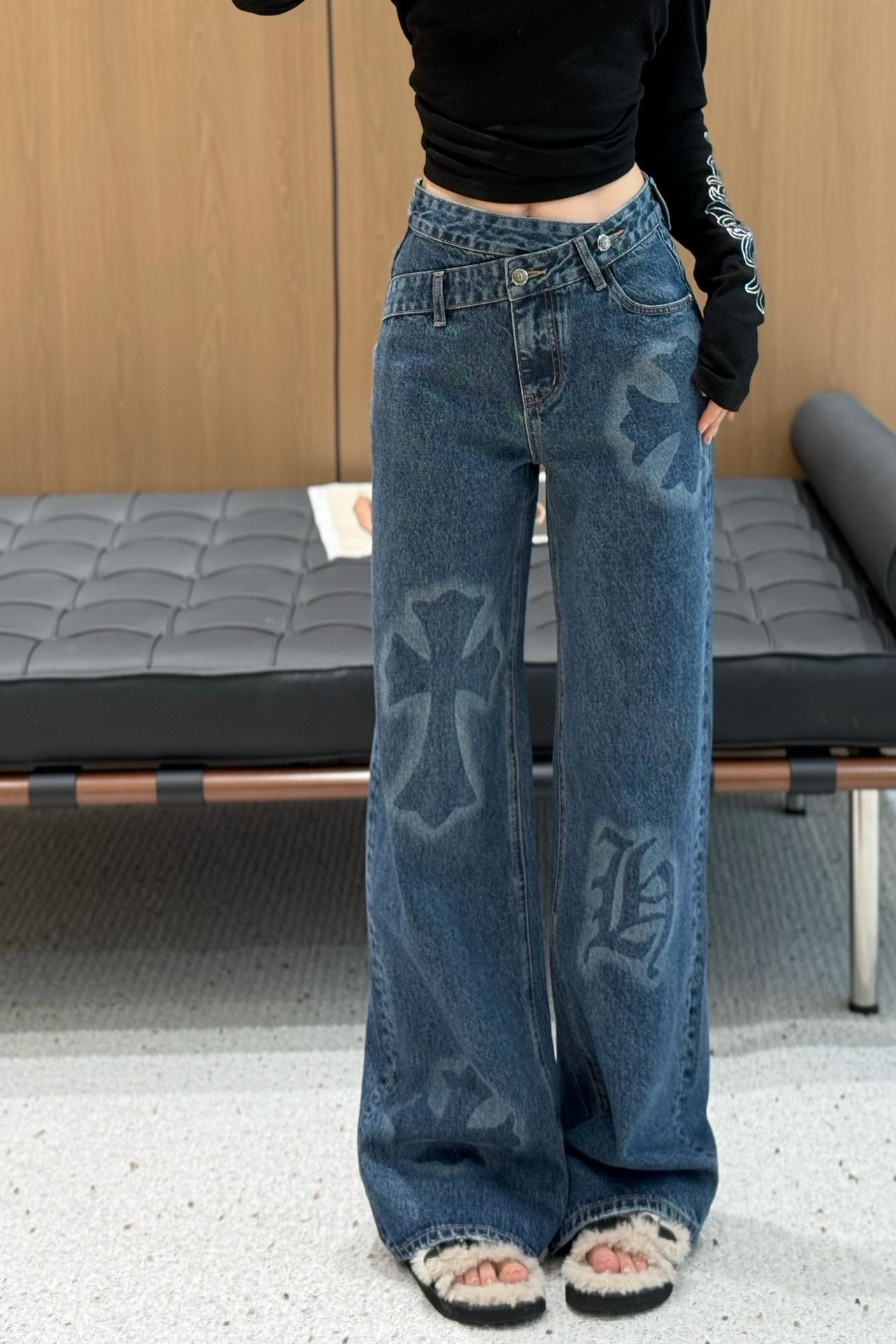 Chrome Hearts 扎染十字架梵文印花闊腿牛仔褲
